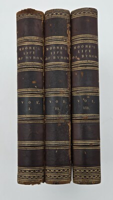 "The Life of Lord Byron" by Thomas Moore 1854 - Vols I, II, and III - Leather