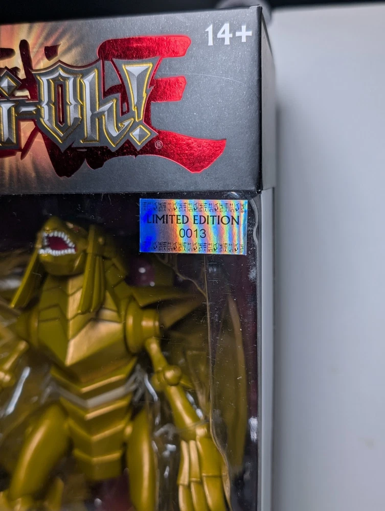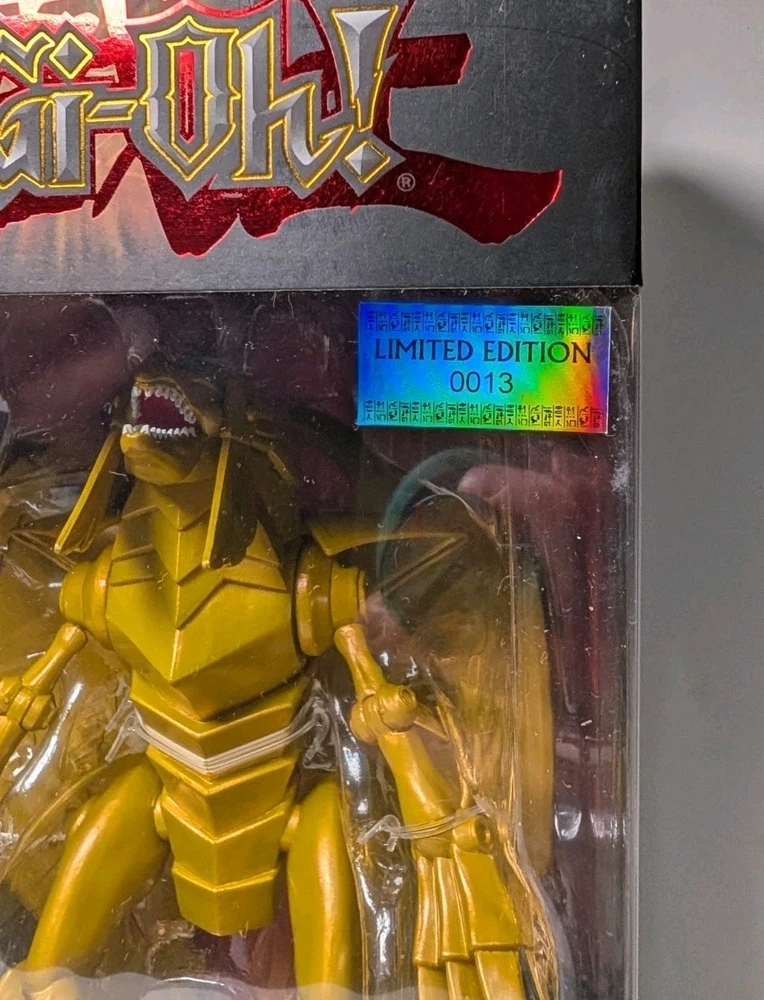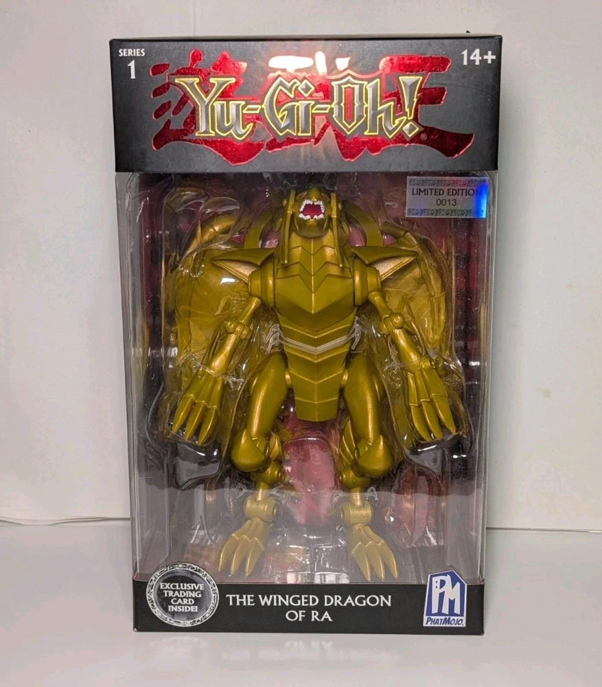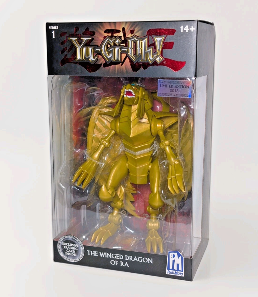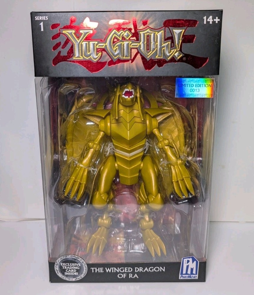 Here your chance to own not only an extremely awesome LIMITED EDITION vinyl collectable Winged Dragon of Ra figure You can get an Extremely Low Series Number #00013 Lucky Number 13!! These figures are limited to a 10,000 You can own #00013 which is one of the first 20 to ever be produced! Also the Winged Dragon of Ra has the most Metal artwork ever. It looks like it belongs on a heavy metal album, super sick! Bid now! A must have for any Yu-Gi-Oh collection!! New in Box Box has some scratches and light wear.