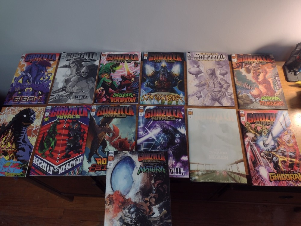 1 LOT OF 13 GODZILLA RIVALS IDW COMICS : RI VARIANT COVERS . MOTHRA GIGAN GHIDORAH DESTOROYAH RODAN MECHAGODZILLA SPACEGODZILLA +++ . RANGE FROM FN/VF TO NM- . YOU GET ALL AS SHOWN . ACTUAL PHOTOS ABOVE. PLEASE CHECK MY OTHER LISTINGS FOR MANY MORE COMIC BOOKS. THANK YOU!