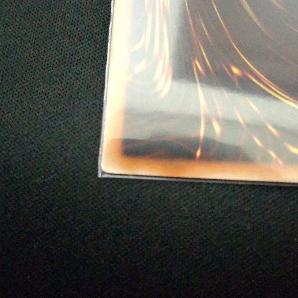 Overall very good card condition, however, it really looks as though a lot of the small bits of damage were hidden by the pictures, which is a shame, because I would've bought it even if the damage was shown; more pictures would've made this more clear. Other than that the description was exactly as it arrived. Showed up in good time. It was very well packaged, and, from memory, some extra nice cards were thrown in there. So thank you very much :). Would buy from again if the pictures improved.