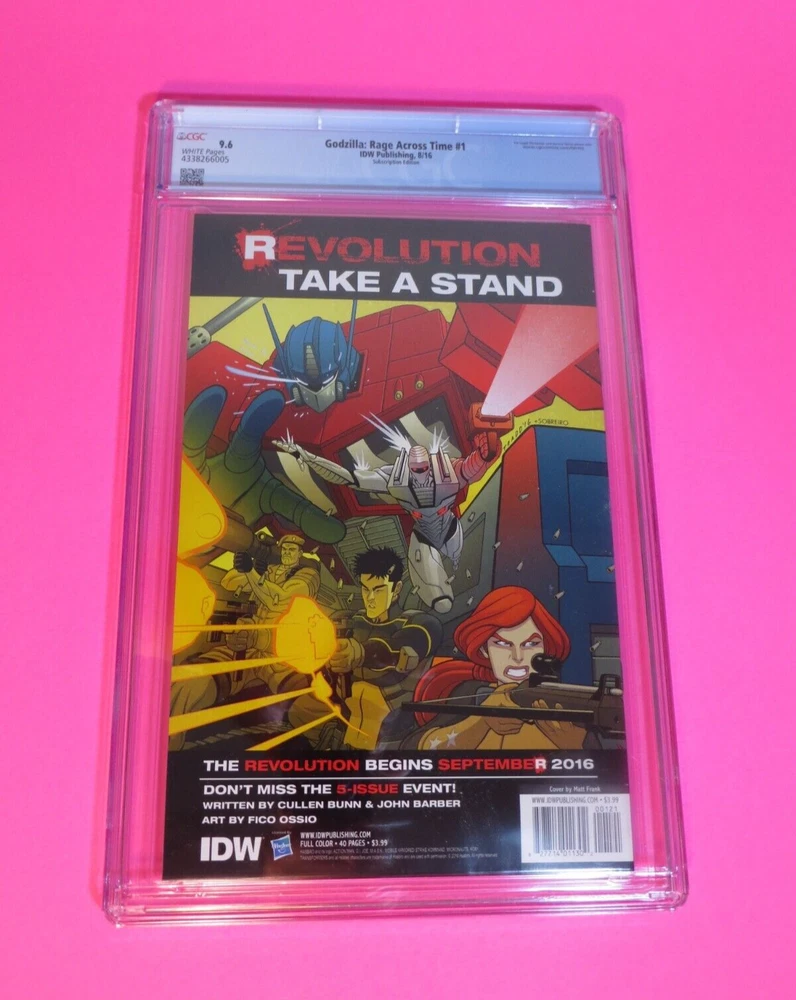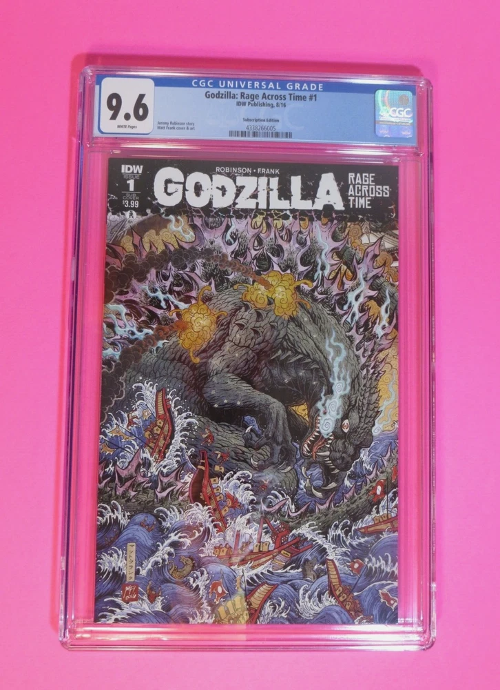 '16 IDW #1 Godzilla, Rage Across Time...CGC graded in 2023, 9.6 NM+ (Near Mint) condition. All graded comics will be double boxed and standard shipped, signature required! 30 day return, buyer pays return shipping!