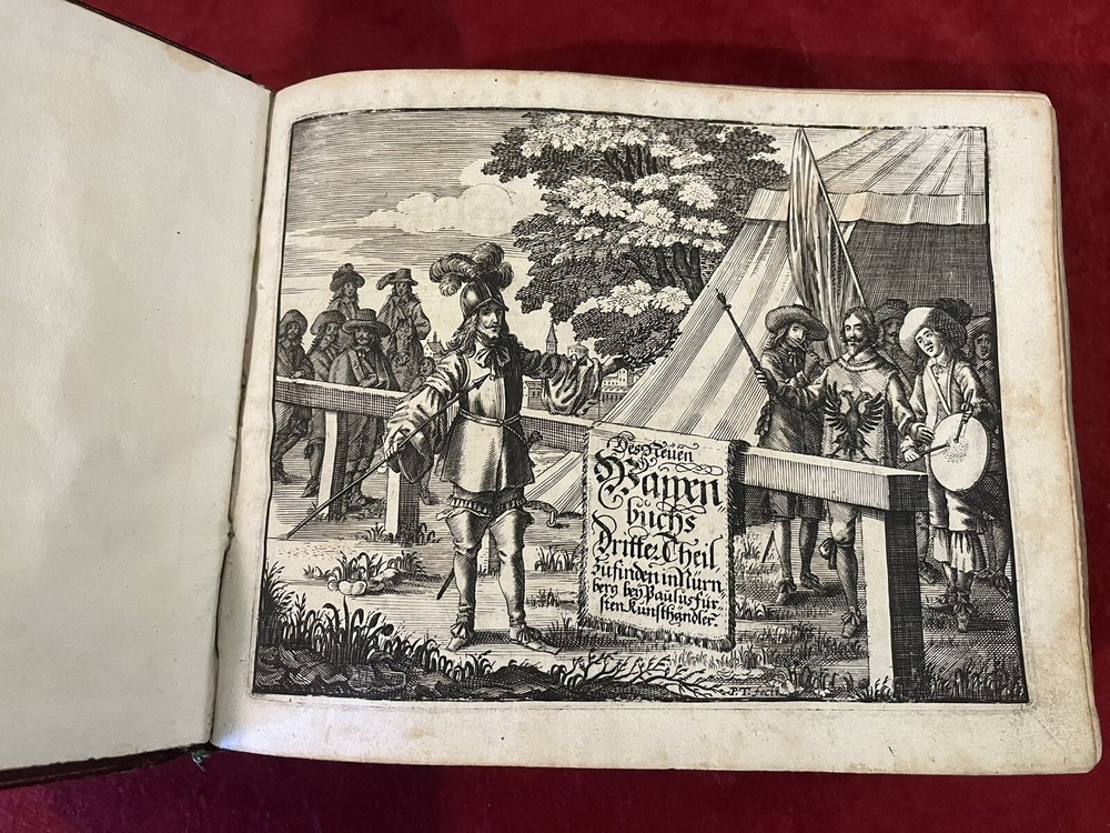 This antique book is a true gem for collectors and enthusiasts of royalty and biography. The leather-bound 1st edition, 1656 & 1657 German Nobles/Royalty Family Crests is a must-have for anyone interested in the history of German nobility. The books feature intricate details of family crests and is written in the German language, making it a valuable addition to any collection. Each book is hundreds of pages of family crests and genealogy. They both have gold leaf on the gilded paper edges for a great display of these 17th century gems. If you are interested in just one book, please message me with an offer. The books’ special attributes include its 1st edition status and the fact that it is bound in leather. This adds to its antique charm and makes it a unique item for display or reference. The book is categorized under "Books & Magazines" and "Antiquarian & Collectible" and is sure to be a prized possession for anyone interested in royalty and biography.