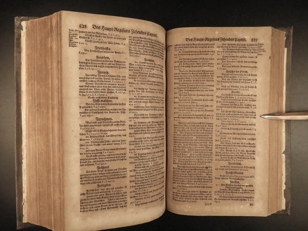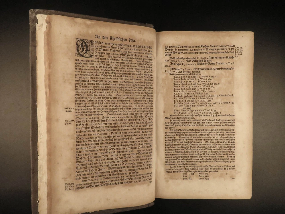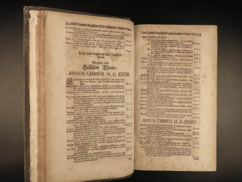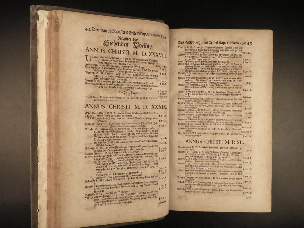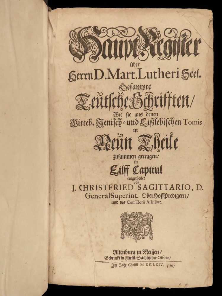 1664 Martin Luther Life Works Lutheran German Sagittarius Saxony Altenburg FOLIO Johann Christfried Sagittarius was a 17 th -century Lutheran theologian from Germany. He is chiefly remembered for his book, “ Haupt Register uber Martin Luther ”, a collection of the works of Luther. He studied the life, work, and ministry of Martin Luther profusely and published his own writings on Luther. This book, part of the collected works of Luther, was published in Saxony-Altenburg, where Sagittarius organized the educational and church systems. Item number: #22955 Price: $750 SAGITTARIUS, Johann Christfried Haupt Register über Herrn D. Mart. Lutheri seel. Gesampte Teutsche Schrifften : wie sie aus denen Witteb. Jenisch- und Eiszlebischen Tomis in neun Theile zusammen getragen, in eilff Capitul eingetheilet von J. Christfried Sagittario ... Altenburg in Meissen : Gedruckt in Fürstl. Sächsischer Officin, 1664. Details : · Collation: Complete with all pages o [24], 1262 · Language: German · Binding: Leather; tight and secure · Size : ~13.75in X 8.5in X 3.25in (35cm x 21.5cm x 8cm) Our Guarantee: Very Fast. Very Safe. Free Shipping Worldwide. Customer satisfaction is our priority! Notify us with 7 days of receiving, and we will offer a full refund without reservation! 22955