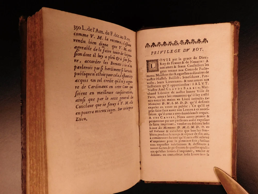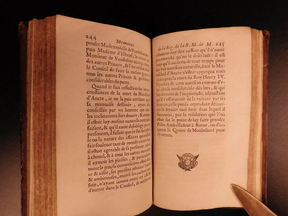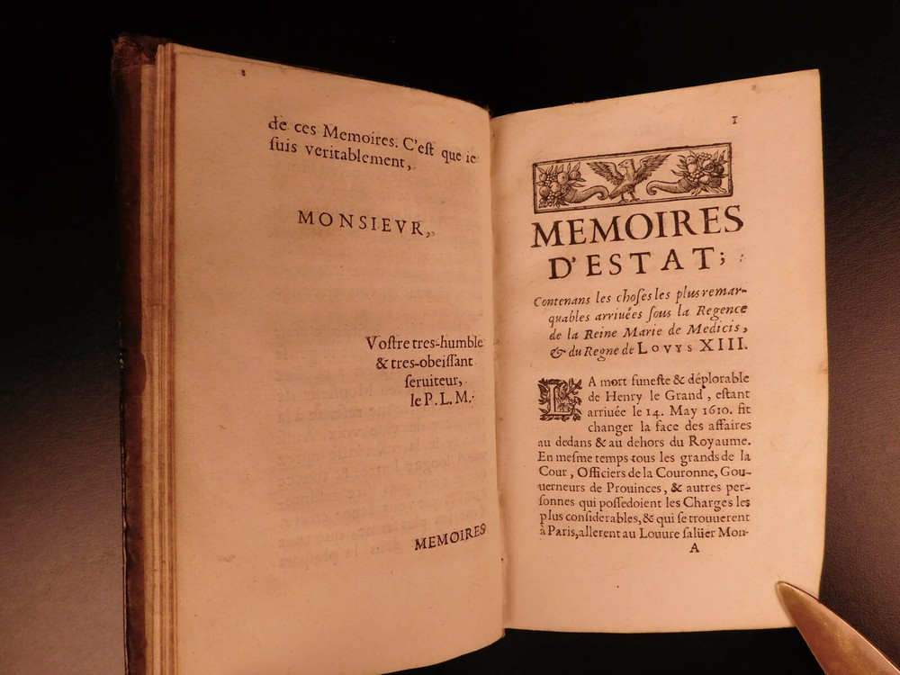 1666 1 st ed Queen Marie de Medici Memoirs France Henry IV Louis XIII RARE ‘The Memoirs of Marie de Medici’ is a mid-17 th -century account of the life, correspondence, and secrets of the Queen of France and her son Louis XIII, and the King of France, Henry IV. It includes transcripts of royal letters, political elements of Vincent de Gonzaga, Cardinal Ferdinand, and Duke of Savoy. Item number: #9452 Price: $499 ESTREES, Annibal Estrées Les memoires de la régence de la reyne Marie de Médicis Paris : Chez Lovis Billaine, 1666. Details : · Collation: Complete with all pages o [24], 350, [2] · References: BMC 285.c.33 · Provenance: Handwritten o Ludovici Deiean · Language: French · Binding: Leather; tight & secure · Size : ~6in X 3.75in (15cm x 9.5cm) Our Guarantee: Very Fast. Very Safe. Free Shipping Worldwide. Customer satisfaction is our priority! Notify us with 7 days of receiving, and we will offer a full refund without reservation! 9452