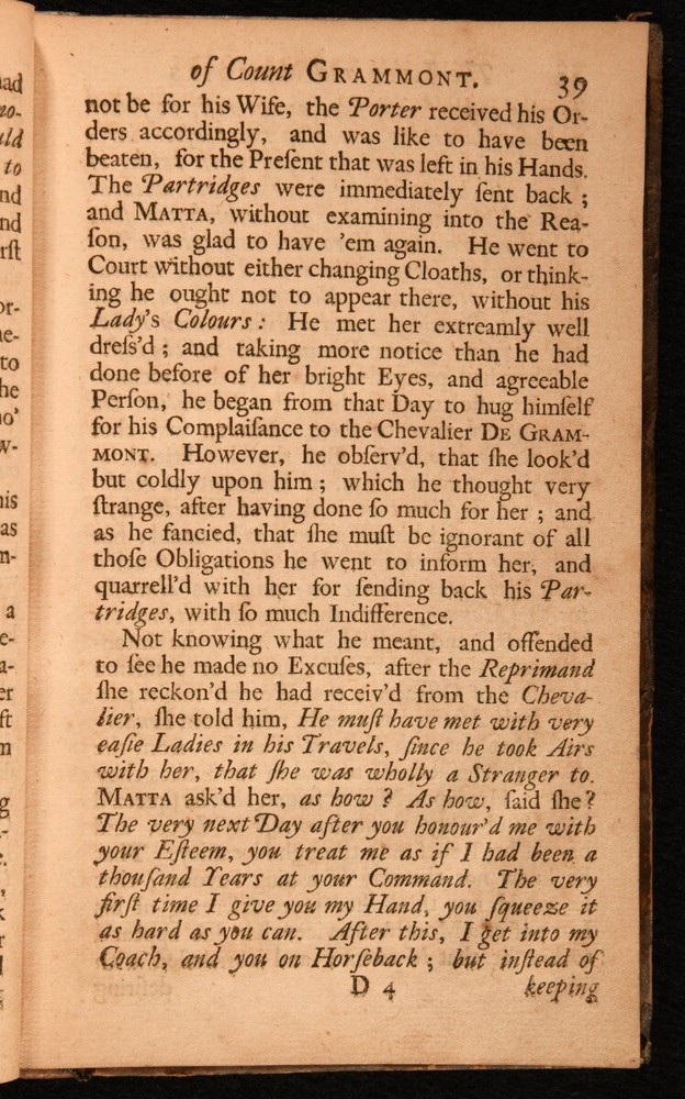 Click here to see our other books! Memoirs of the Life of Count de Grammont [Anthony Hamilton] 1714 J. Round; W. Taylor; J. Brown; W. Lewis; J. Graves : London 7.5" by 5" [4], 356pp SUMMARY The first edition in English of this scarce memoir on the life of Count Philibert de Gramont, and the courts of Charles II and Louis XIV. First Edition,Leather Binding,Scarce Overall Condition: Good This book weighs 0.5 KG when packed UK Postage: £ 3.99 US Postage: £ 15.99 EU Postage : £ 13.99 European Postage: £ 14.99 Asia Postage: £ 18.99 Worldwide Postage: £ 19.99 DESCRIPTION The first edition in English of this scarce work. The memoirs of Philibert de Gramont, a French courtier and soldier of the seventeenth century, written by his brother-in-law, Antoine Hamilton. Philibert was the younger half-brother of Antoine III of Gramont. He was exiled from Louis XIV's court in 1662 for courting one of his mistresses, Anne-Lucie de la Mothe-Houdancourt. Upon this exile, Philibert found home at the court of Charles II in England, though he was allowed to return to France after a couple of years. When Philibert was 80, he supplied his brother-in-law, Antoine, with the material for these 'Memoirs'. Hamilton provided interesting passages in this volume on the history of the court of Charles II. Antoine Hamilton, also known as Anthony, was a soldier who fought in the Franco-Dutch War. Philibert married his sister, Elizabeth, who was known as one of the Windsor Beauties painted by Sir Peter Lely. With woodcut headpieces and decorative initials. Collated, complete. Bookplate and ink inscription of Thomas Carill Worsley to the front paste down. Worsley was a businessman, with interests in lead mining, who lived at Platt Hall, Manchester. CONDITION In a rebacked calf binding. Externally, generally smart, with light rubbing to the boards and spine. Minor bumping to the extremities and to the head and tail of the spine. A little discolouration to the boards. Chip to the tail of the rear joint. A couple of small dampstains to the rear board and to the spine. Loss to the extremities. Head of the spine is lifting a little to the front joint. Front hinge is starting but firm. Bookplate and ink inscription to the front paste down. Tape repair to the rear hinge. Front endpaper is working loose. Internally, firmly bound. Pages are lightly age-toned and generally clean with scattered spots. Overall Condition: Good GLOSSARY OF TERMS Overall Condition (Dustwrapper condition rating is shown after that for the book itself, where a dustwrapper is present) Fine - Very well preserved copy showing very little wear Very Good Indeed - Only one or two minor faults, really a very attractive copy Very Good - Quite a wide term meaning no major faults but probably several smaller ones often expected given the age of the book, but still a respectable copy Good - Meaning not very good. Some more serious faults as will be described in the condition report under 'condition' Good Only - Meaning one or more faults that could really do with repair Fair - As with good only above but with other faults leaving a compromised copy even after repair Poor - Really bad and possibly seriously incomplete. We only sell books in this condition where their rarity or value makes them attractive none the less. Major defects will be described. GUARANTEE We offer a full money back guarantee on our descriptions. Please ask for details and conditions. We prefer PAYPAL. If you pay via PAYPAL we will post the item off the same or the next working day with the postage you have selected. Please note we cannot accept USD cheques