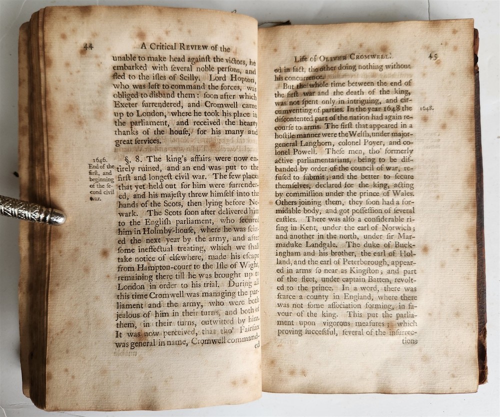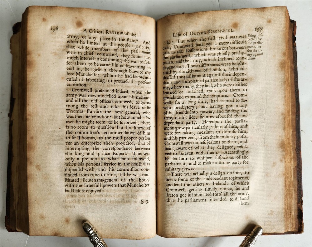 A SHORT CRITICAL REVIEW of the POLITICAL LIFE of OLIVER CROMWELL lord-protector of the commonwealth of England, Scotland, and Ireland by BANCKS, John London: Printed for the author; sold by John James, 1739 Size: 5 by 8" Original calf binding, old crude spine repair 272 pp Foxing Text in English ===================== Please see my other auctions Thank You Refund Policy: We will issue a FULL REFUND, 100% money back if you are not satisfied with your purchase. Items must be returned to us within 20 days in order to receive a refund or replacement. Buyer is responsible for shipping costs. Powered by SixBit's eCommerce Solution