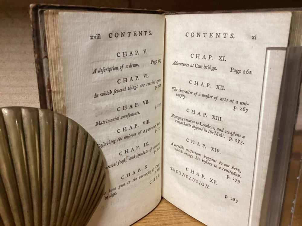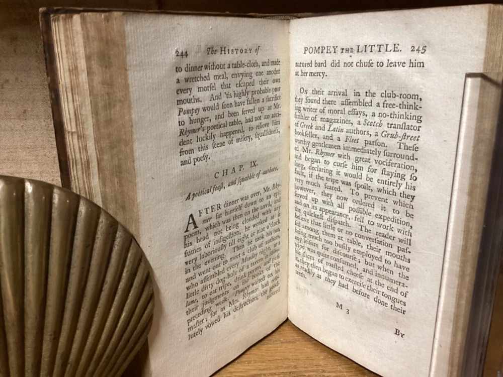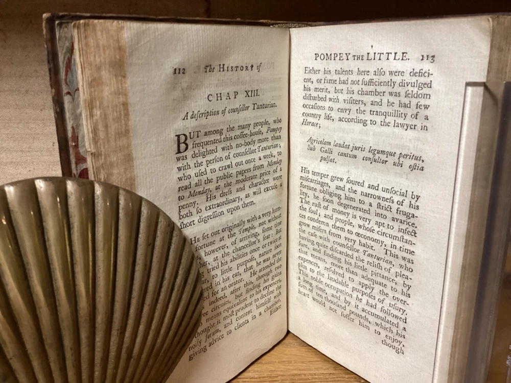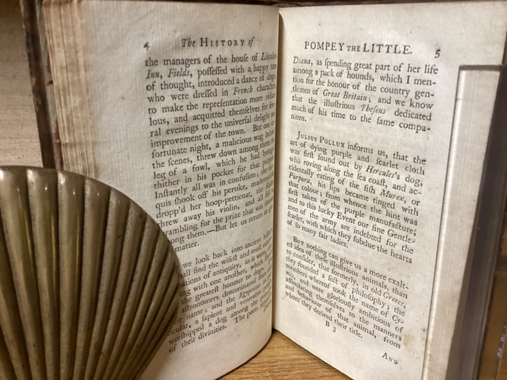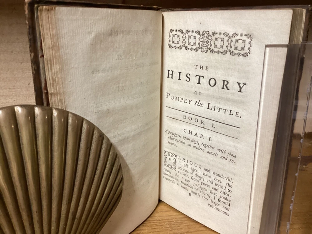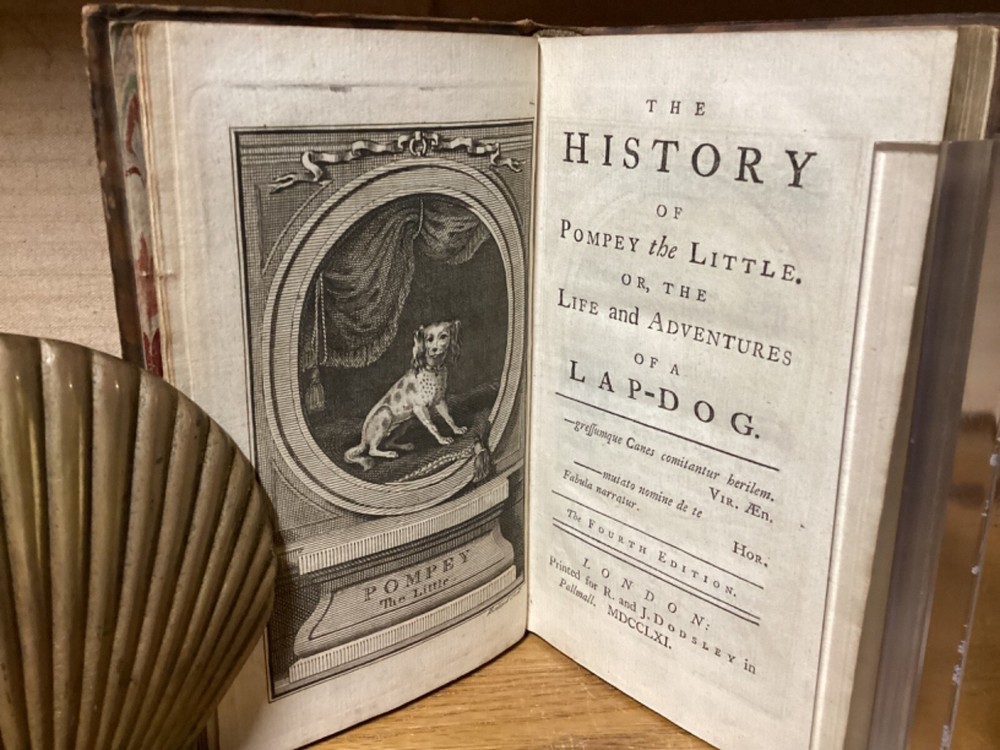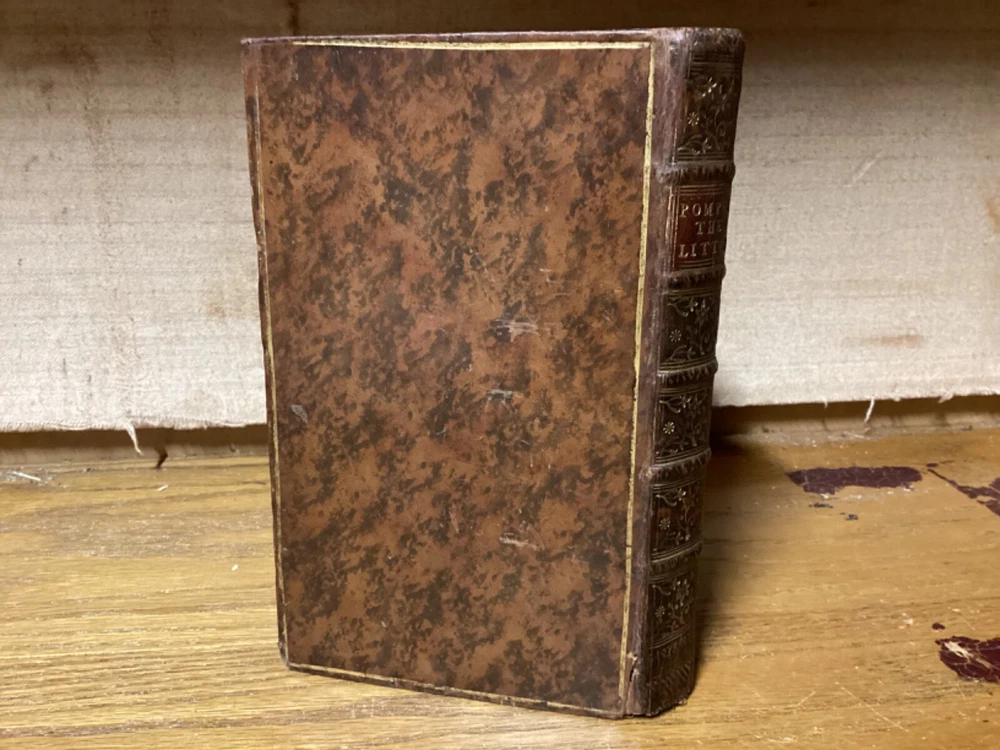 The History of Pompey the Little. Or, the Life and Adventures of a Lap-Dog. By Francis Coventry and printed in London by M. Cooper. 1761 fourth edition. [16] + 291 pp. 7” x 4.25”. 12mo. Hardcover full leather. In good condition, with light rubbing and wear to exterior. Light shaking to hinges at front and rear. Text block remains nicely bound. Faded marbled edges of pages. Frontispiece adjacent to title page. Light losses at head and heel of spine. General age-related toning to pages, along with periodic foxing and wear. Please see photos and ask any questions prior to purchasing. A scarce piece and the best-known work of English cleric and novelist Francis Coventry (1725-1759). COLH1761DJKX