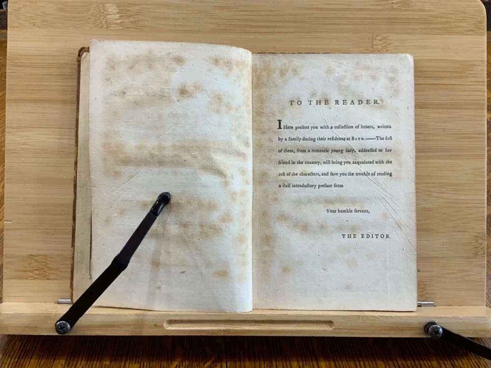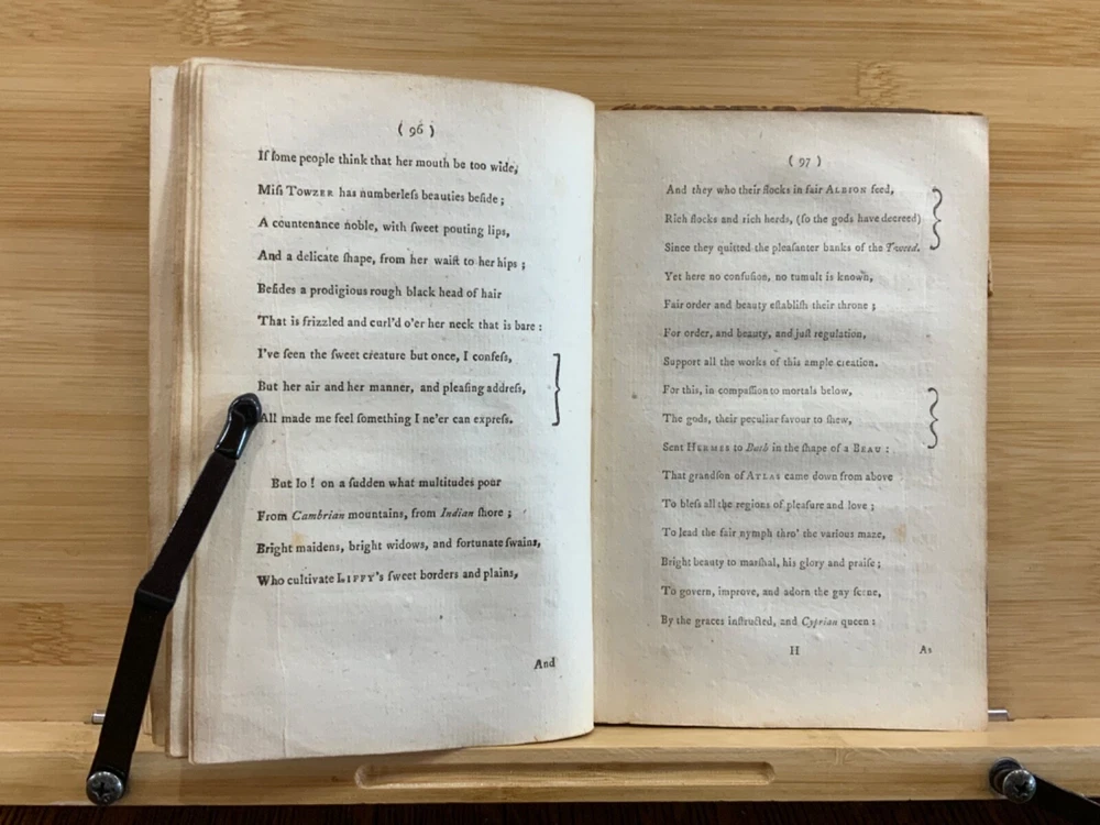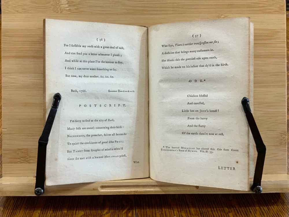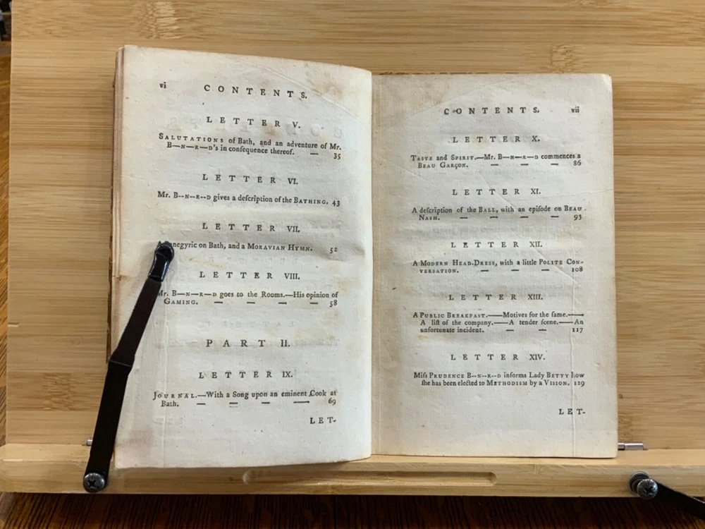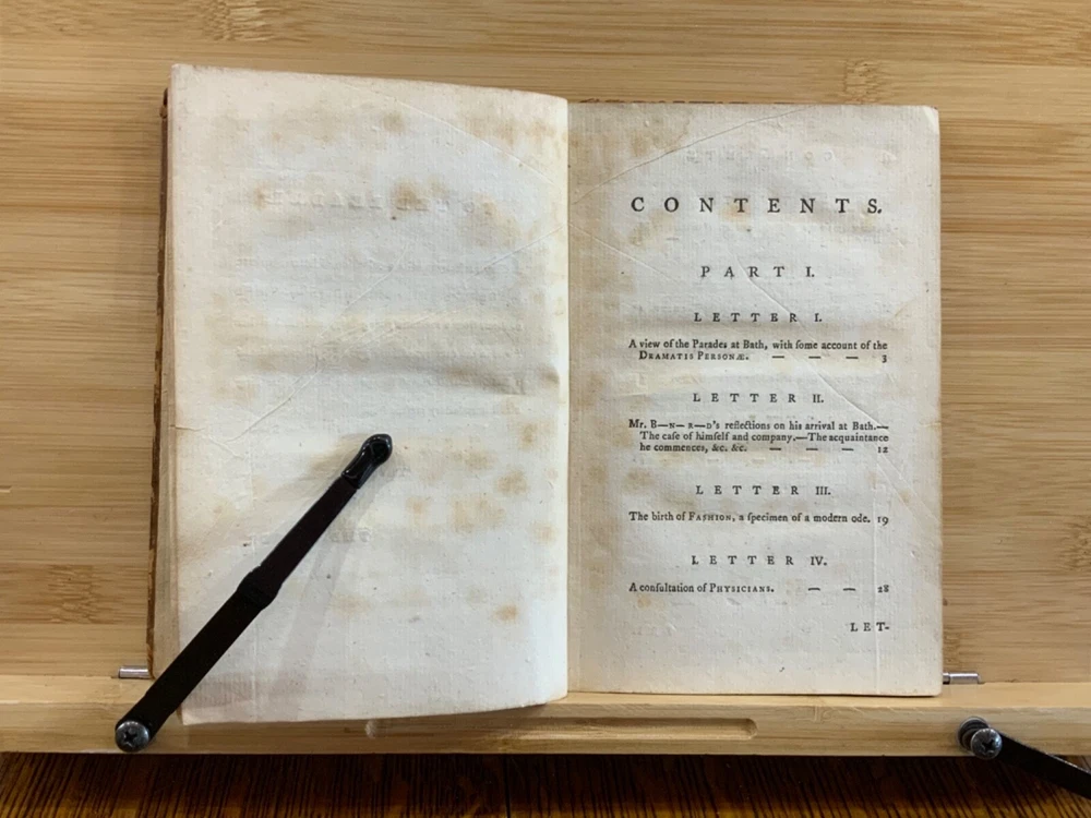 The New Bath Guide; or, Memoirs of the B-R-D Family. In a Series of Poetical Epistles. The Eighth Edition. London: Printed for J. Dodsley, and Fletcher and Hodson, 1772, full leather binding, 175 pp, 7 x 4.5", 18mo. In poor condition. As is. Both front and rear boards are detached from binding. Boards are scuffed at edges & worn/bumped at corners. Head and tail of spine lacking - binding exposed. Front end-page and frontispiece detached. Previous ownership signatures on front paste-down and title page. Toning, foxing, and age-staining throughout text-block. No known marginalia. Binding is broken. Please see photos and ask questions, if any, before purchasing. Christopher Anstey (1724-1805) was an English poet who also wrote in Latin. After a period of managing his family's estates, he moved permanently to Bath and died after a long public life there. His poem, "The New Bath Guide" brought him to fame and began an easy satirical fashion that was influential throughout the second half of the 18th century. The broad 18th century humor of the Guide inevitably met with criticism in some quarters. While the parodies and allusions to Milton, Dryden, and the Classical authors were well received, the perversion of Methodist terminology in Prudence's account of her seduction at least caused controversy. He was the first to make tourism a poetic subject since the pilgrimage depicted by Thomas Chaucer in his Canterbury Tales. FORN-MSB-1023-0761-HK814