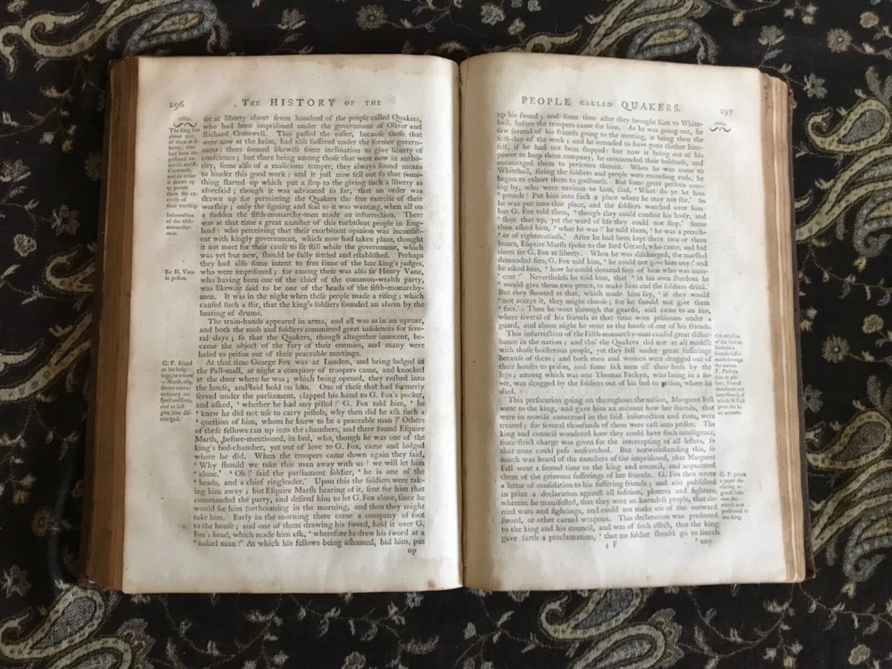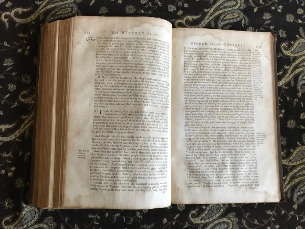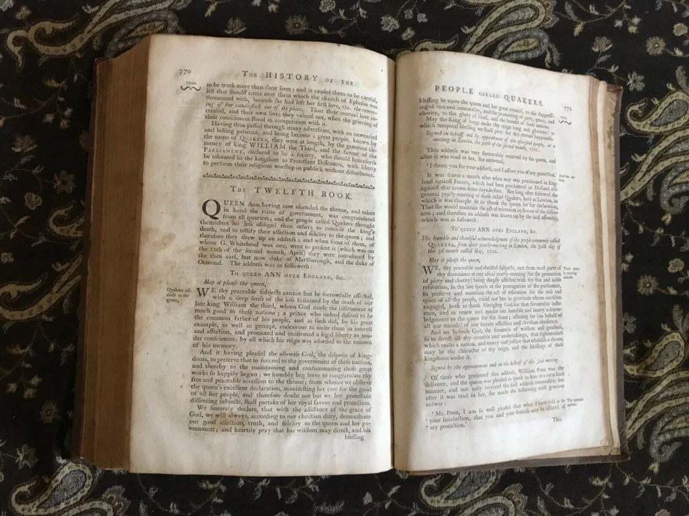 Just got this rare 1774 Quaker history book and wow! The full leather binding has that perfect antique feel with natural wear that gives it character. Holding this nearly 250-year-old treasure feels like touching history itself - absolutely fascinating read and beautiful piece for any collection!