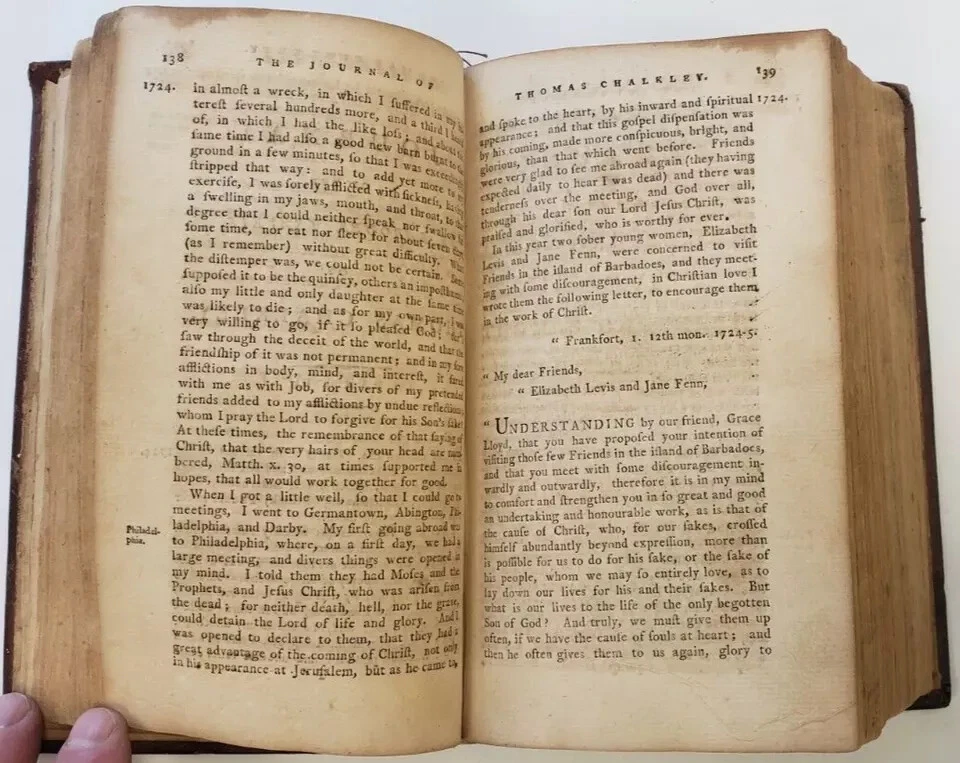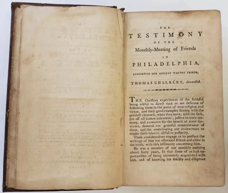1790 Philadelphia The Works of Thomas Chalkley Edition Quaker Leather Book Description Product Description: Year: 1790 Type: Book 1790 Early Philadelphia Imprint 'The Works of Thomas Chalkley' Quaker Chronicles. Leather Bound and in good condition. Signed by the original owner, Obed Paddack, on inside page. Valuable American History. About Us We've been selling vintage Mopar NOS and replaceable items since 1974 as Andy Bernbaum Auto Parts. We joined eBay in 2011 as Vintage Mopar Direct. Our top priority is customer satisfaction and we're very proud of our seller rating. We started acquiring NOS over 50 years ago and never stopped. If you need a specific part, just ask! Our staff are all Mopar enthusiasts and we're glad to answer any questions about fit, installation and product quality. If you search "Andy Bernbaum Auto Parts" in your browser, you'll find all of our contact inforamtion. Happy motoring! Domestic and International Shipping Domestic (United States) - We ship via UPS, FedEx, and USPS based on the destination. Order tracking information will be provided once the item has shipped. Delivery estimate is typically 2 - 4 days for domestic only. International - Delivery Estimate via USPS Priority Mail International is between 7-12 business days, or via USPS Priority Mail Express is between 4-6 business days. But, these delivery estimates are subject to change due to the different customs procedures in each region in which we have no control over. Return & Refund Policy Customer service is our top priority! If there's any issue with the products we sell, we accept returns within 30 days of purchase. All we ask is that ship back with original box. Your refund will be processed as soon as we have product back in hand.