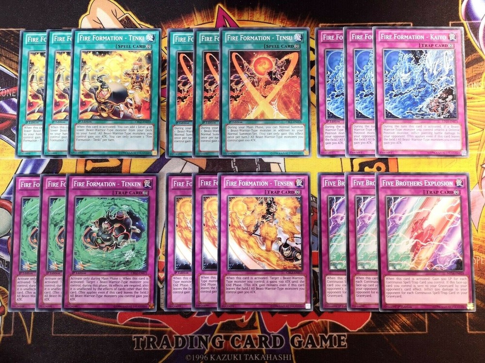 Home New Arrivals Feedback Contact 18 Card Fire Formation Bundle/Deck Core: Tenki/Tensu/Kaiyu/Tenken/Tensen/Explosion Item Description Good day Sir/Madam! The card(s) you are viewing now will be in Varying condition Cards are in mixed condition & Edition but most cards are in Mint/Near Mint :) All conditions stated in my listings are my opinion of the card, which may differ from somebody else. When I say 'Mint condition', I believe it is grade worthy, please message me first if that is what you are after and I will double check any card for you so nobody is disappointed :) Please have a look at my other swag! XD The first picture will be the 1st card (set of cards) you will receive!!! A ny extra pictures are to show you the other cards for sale (Picture order is consistent with the card(s) I will be posting to you). So if I have quantity of 3 for example, and 1 has sold, you will receive the card(s) in the 2nd photo(s) :) CHECK OUT MY GRADING SYSTEM BELOW ^_^ MINT - No damage......MINTY FRESH! (message me if it needs to be grade worthy) NEAR MINT - Close to Mint, only very slight wear or any very small imperfection(s) VERY GOOD - Visible wear on the card but no major wear GOOD - Obvious wear but nothing unplayable USED - Still playable but in pretty bad shape, bad condition Always message me if unsure of condition :P Please have a look at my other swag! :) Message me if i can help with anything at all! ***I WILL BUY YOUR YU-GI-OH CARDS !!!*** See Other Items Shipping Always very well packaged!! I always post the same day or next working day depending on how late in the day the order is placed :) Message me if you have any specific requirements for postage! I am not responsible for customs charges for oversees buyers Payment I accept all types of payments (Paypal, Credit/debit card, Apple/Samsung pay etc...) Returns I will accept any returns for items not as described :) I will also accept returns on items where you have simply changed your mind. However I would have to request that you pay any postage and fees :) Thanks for looking Thank You for your purchase Copyright All Rights Reserved - Template Created by ZTproject