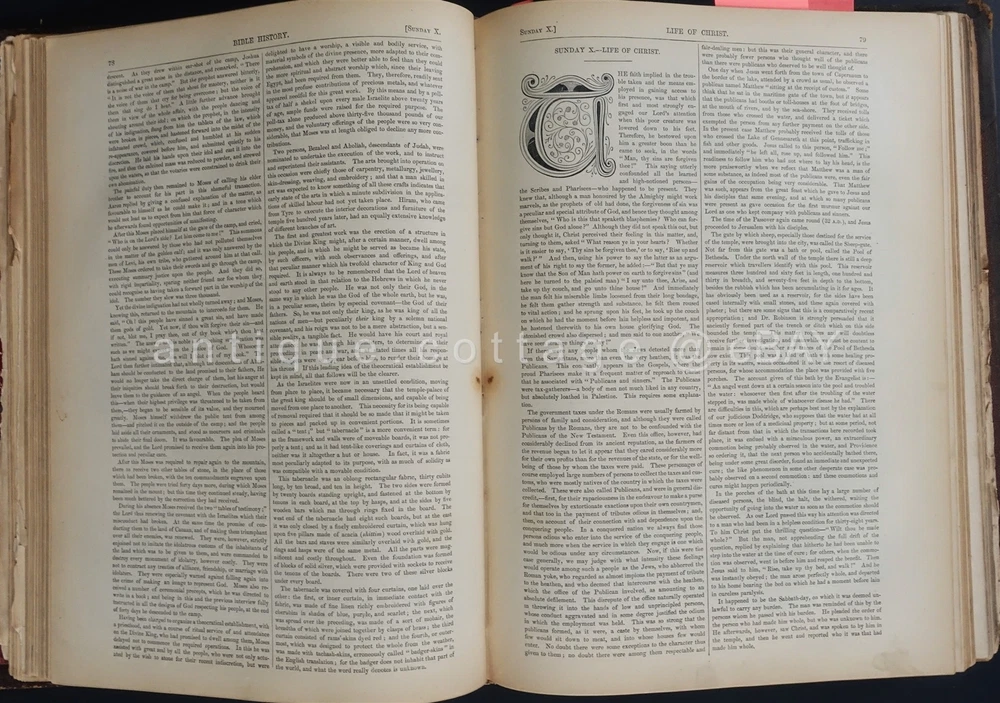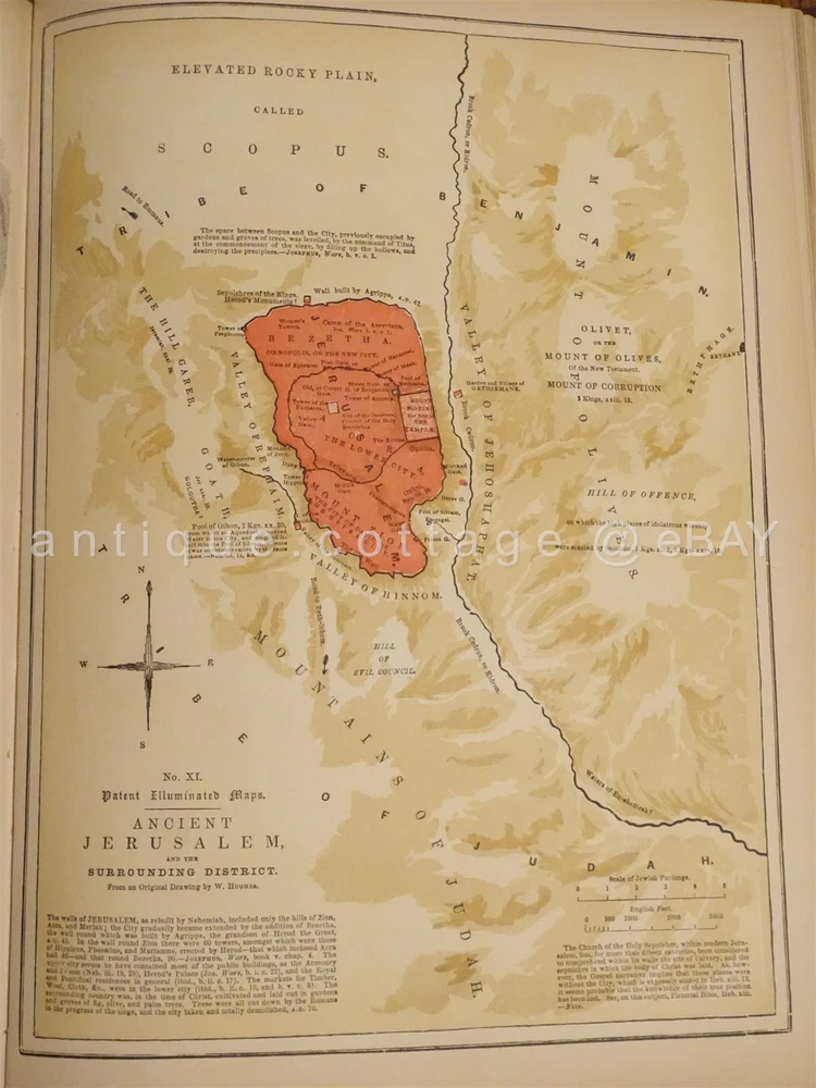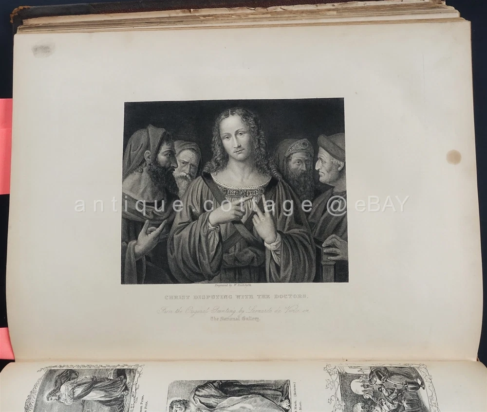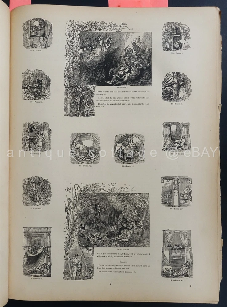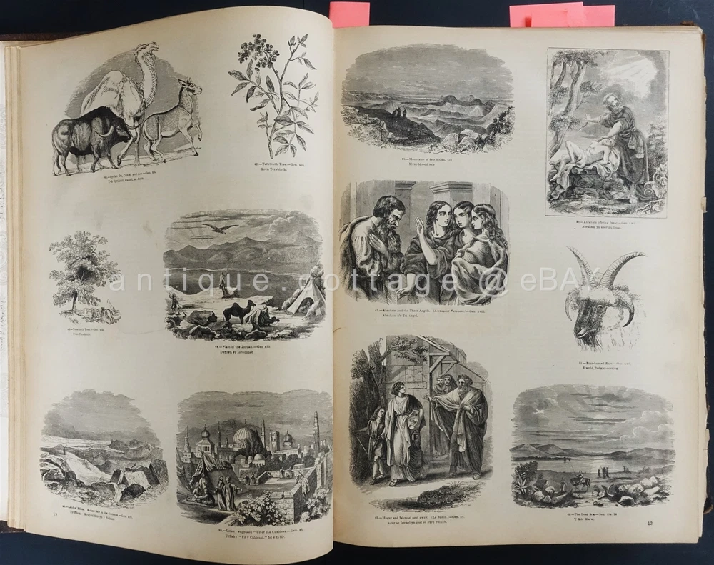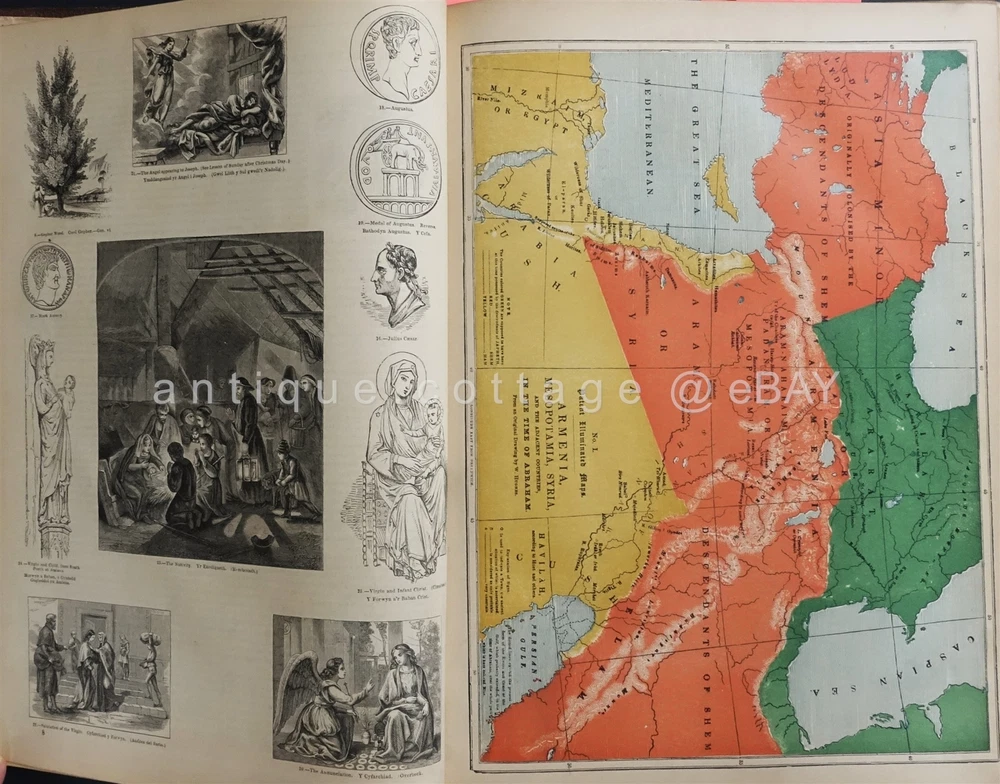 1800s antique BIBLE PICTORIAL SUNDAY BOOK kitto ENGRAVINGS holy land map life ch SCROLL DOWN for MORE PHOTOS in DESCRIPTION Click HERE to view or search ANTIQUE.COTTAGE listings. This listing is for the hardcover, leather over board book, measures a large 14"x10.25x1 7/8" thick with 516 pages. It is choc full of engravings. The type that I would expect that Gustave Dore may have contributed, those, in paging through the book, I hadn't seen his name, but didn't look the whole way through. Includes readings for bible history, life of Christ, geography of the Holy Land, Acts of the Apostles, and more. There are ALOT of illustrations throughout as this huge book is a pictorial book. Undated, circa 1880s. CLICK HERE to check out my antique BIBLE SHOPPE CLICK HERE to check out my antique BOOK SHOPPE _____________________________________ CONDITION : See listing description and photos; beautiful cover with antique wear. The book is separated from its cover at both the front and back hinges. Pages, overall are nice with some edge wear. first and last couple pages detached but included. A couple pages detaching from string binding. Nice book; other antique wear. - International buyers are responsible to pay VAT or other Taxes to their countries as required. - eBAY collects and remits sales tax on behalf of several states. If you are a dealer, you can write to eBay to file a form to become tax exempt. LOC: LOC2: FRONT.HALL.BENCH-BY.SUITCASE-KM Powered by SixBit's eCommerce Solution