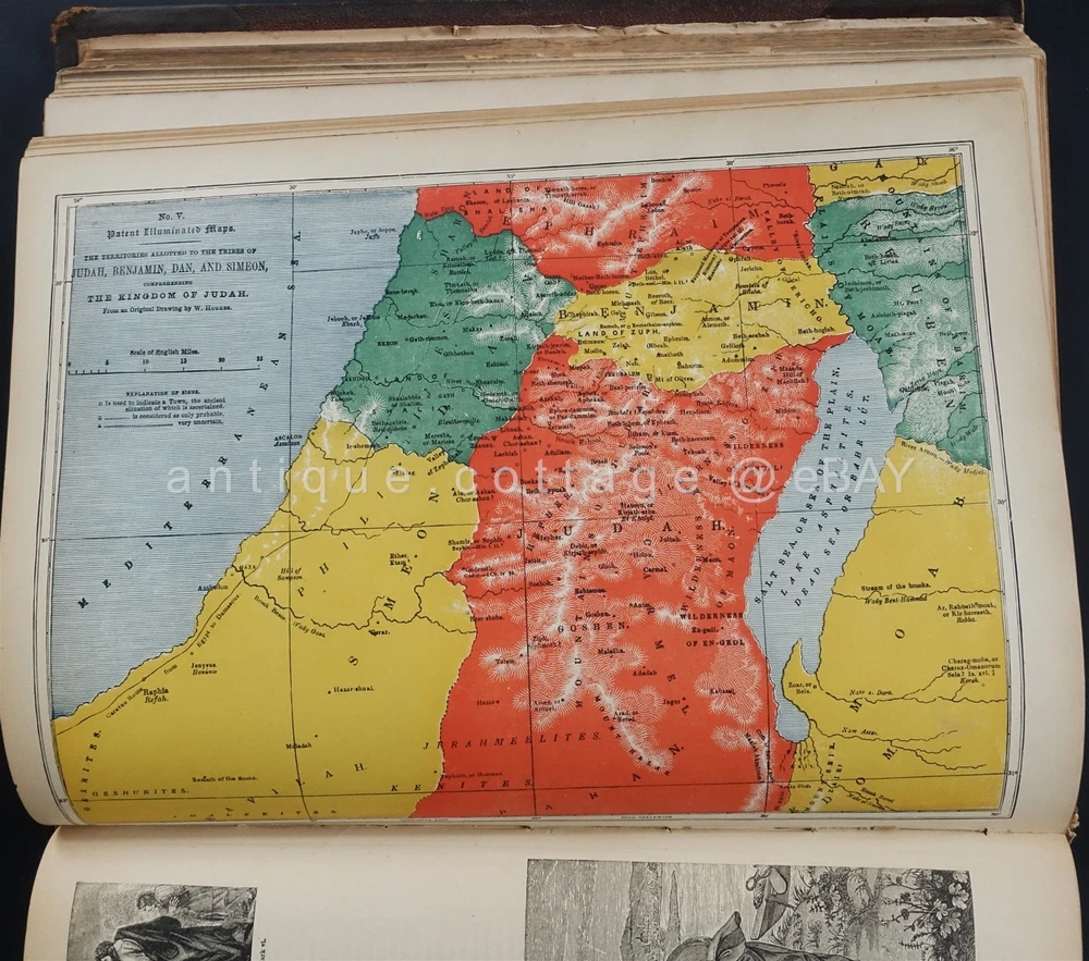 This antique Bible pictorial book is absolutely stunning! The detailed engravings bring biblical stories to life, and the vintage leather-bound cover adds such charm. It's a massive, well-preserved volume packed with historic artistry and holy land maps—perfect for collectors or those who appreciate religious history. Flipping through its 500+ pages feels like stepping back in time. A true treasure for anyone who loves antique books!