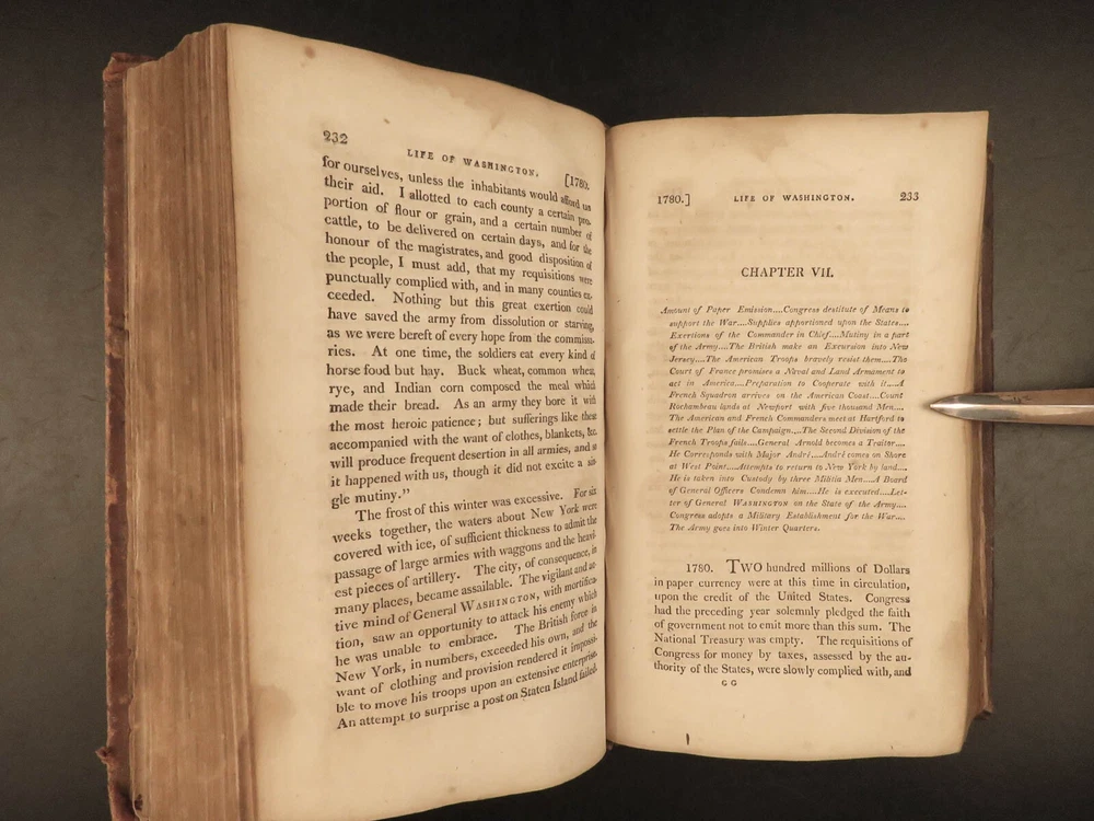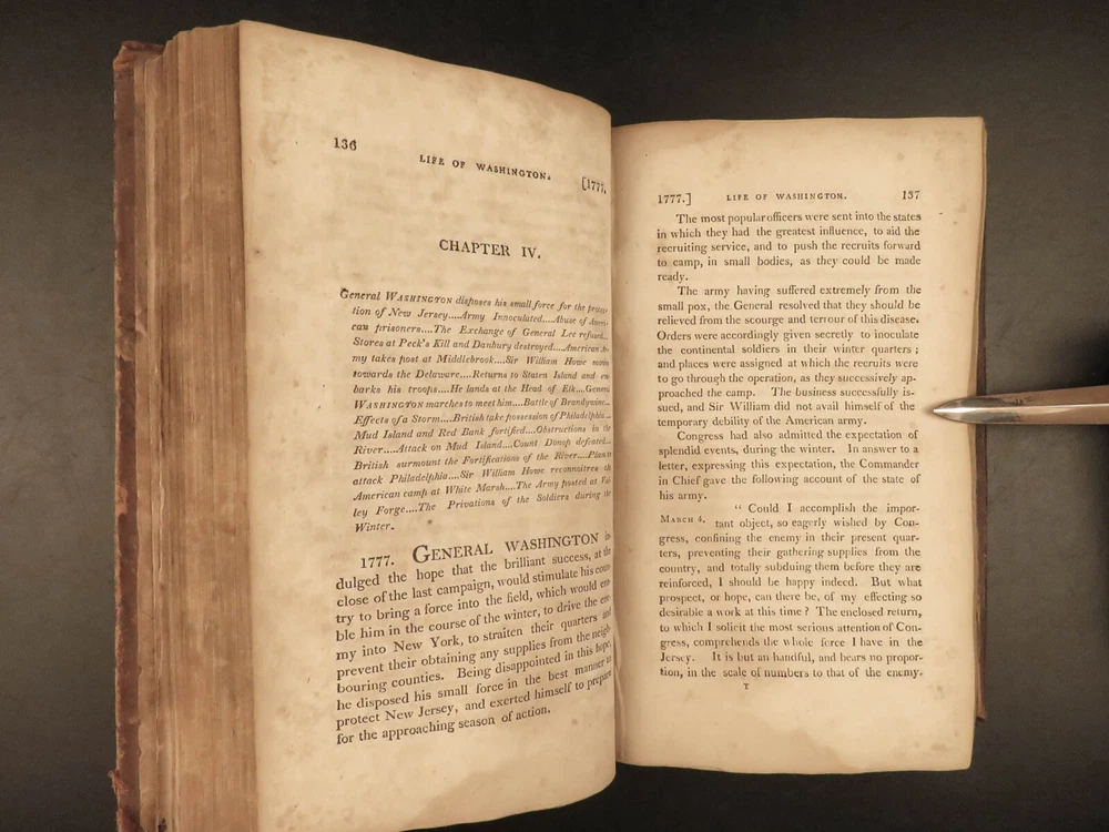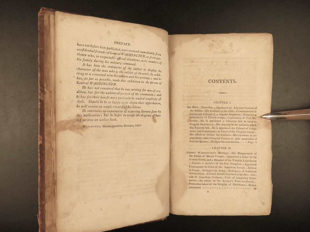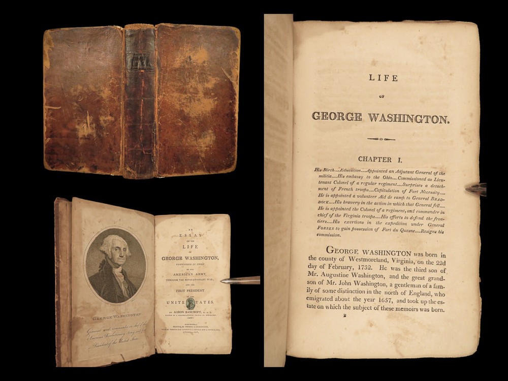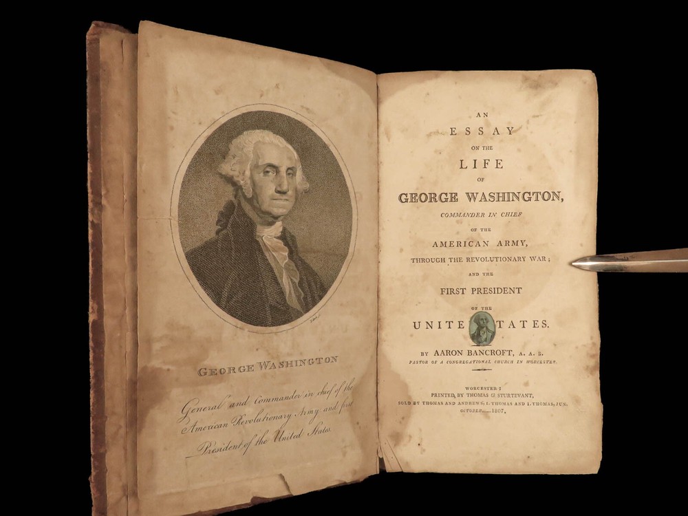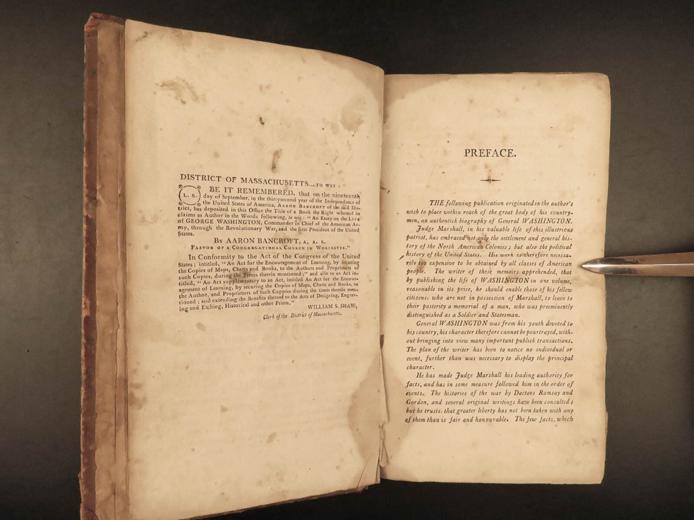 1807 1 ed Life of George Washington Bancroft American Revolutionary WAR Americana “ Associate with men of good quality if you esteem your own reputation; for it is better to be alone than in bad company .” – George Washington A rare, 19 th -century printing of “ The Life of George Washington ” by Aaron Bancroft. This book has an incredibly detailed contents list, but some of the important dealings include: · Becoming first United States President · Important events in the American Revolution · Washington marching with the Army on New York · Interactions and exchanges for prisoners of war · Internal plans to replace Washington · Battle of Monmouth Item number: #23049 Price: $499 BANCROFT, Aaron An Essay on the Life of George Washington, Commander in Chief of the American Army Boston: Thomas & Sturtevant, 1807. First Edition. Details : · Collation: Complete with all pages o [4], vii, [1], 552 o Includes engraved portrait frontispiece · Provenance: Handwritten – Nich.s B. Brower, 1833 · Language: English · Binding: Leather; tight and secure · Size: ~8.75in X 5.25in (22cm x 13cm) Our Guarantee: Very Fast. Very Safe. Free Shipping Worldwide. Customer satisfaction is our priority! Notify us with 7 days of receiving, and we will offer a full refund without reservation! 23049