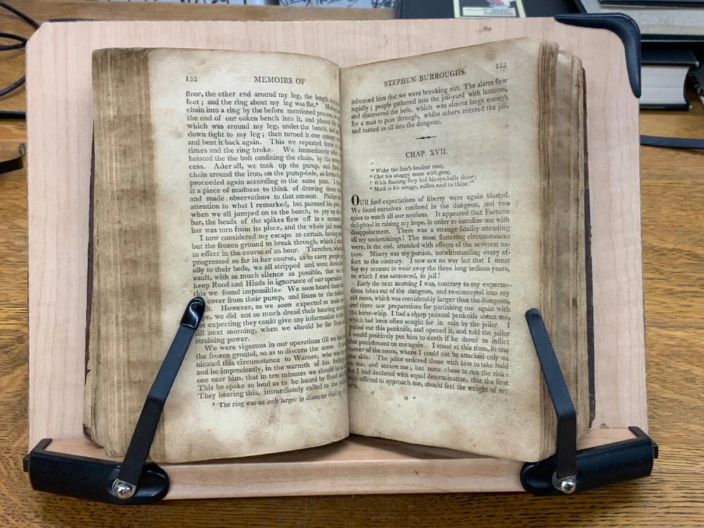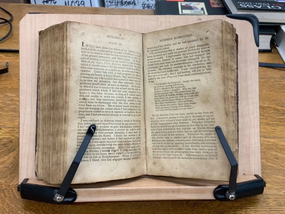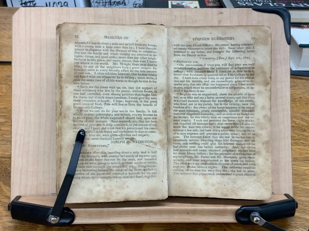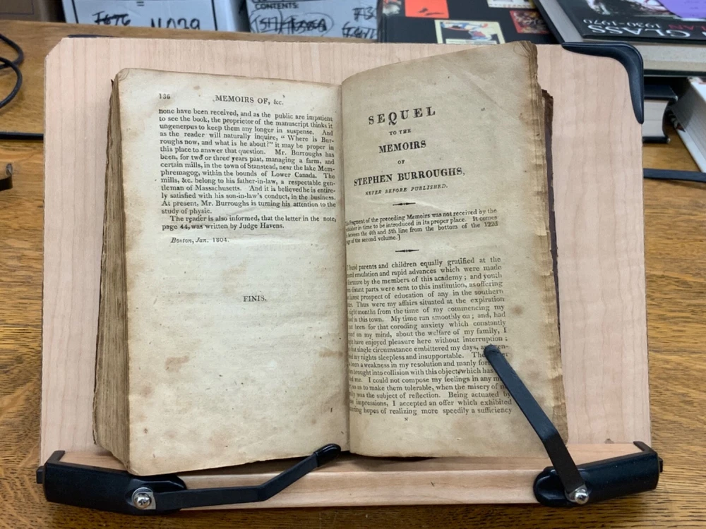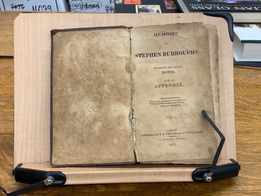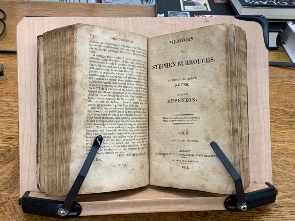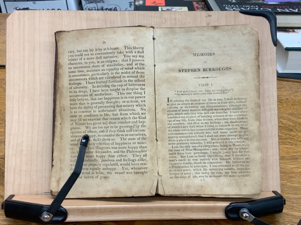 Memoirs of Stephen Burroughs. To Which are Added, Notes, and an Appendix. Vols. I & II, Albany, NY: Published by B.D. Packard, No. 51 State-Street, R. Packard, Printer, 1811, 248 pp, 148 pp, 7 x 4.25", 12mo. In poor condition. As is. Leather boards are scuffed at edges & bumped/worn at corners. Tail of spine moderately chipped, causing exposed binding. Hinges worn & fragile. Head of spine rubbed. Previous ownership signature found on front paste-down. No preliminary pages - text begins at title page of Vol. I. Title page of Vol. I is also almost detached from binding, fragile. Both front and rear gutters split, cording exposed. Toning, finger-soiling and age-staining exhibited throughout text-block, but text remains legible. No known marginalia. Binding is intact, but very fragile. Please see photos. Stephen Burroughs (1765-1840) grew up in Coventry, New Hampshire, the son of a prominent & strict Presbyterian minister. As a child, Burroughs liked mischief; for example, he stole watermelons from neighboring farms and gardens. Most of his story derives from these memoirs, which Burroughs first published at the age of 33 and polished and republished repeatedly for decades. At the age of fourteen, he ran off to join the Continental Army, but could not convince the enlisting officers he was of age. Instead, he joined on a crew of a privateer in Newburyport, Massachusetts. His father sent him to Dartmouth College, but Burroughs lasted only a short while. After an unsuccessful attempt at medicine, Burroughs decided to turn to ministry. Though untrained, he had access to his father's sermons, and, armed with these stolen sermons, headed to Massachusetts to sell himself as a minister. In Pelham, MA, Burroughs was outed as a fraud, and chased out of town by an angry congregation. After the Revolutionary War, the new American country needed currency & Burroughs was happy to oblige. The only reason paper money had value, Burroughs concluded, was because people agreed that it did. Burroughs acquired some counterfeit coins from a colleague and attempted to pass them at an apothecary in Springfield, MA, but was immediately arrested on the spot. After being released from prison in 1788, Burroughs moved to Canada where he set up two shops: Shipton and Stanstead. He became a prolific counterfeiter. Burroughs became a master at reproducing bills from a variety of sources. His fame brought criminal partners flocking to him & he generated a steady flow of counterfeit money heading down from Canada to all states in the U.S.. American poet Robert Frost wrote that Burrough's memoir should stand on the shelf beside the autobiography of Benjamin Franklin. To Frost, Franklin's volume was " a reminder of what we have been as a young nation ," while Burroughs' " comes in reassuringly when there is a question of our not unprincipled wickedness...sophisticated wickedness, the kind that knows its grounds and can twinkle... Could we have been expected to produce so fine a flower in a pioneer state? " A complete work. A reading copy - extremely interesting American history. RAREA1811BNOB 12/23 - HK1008