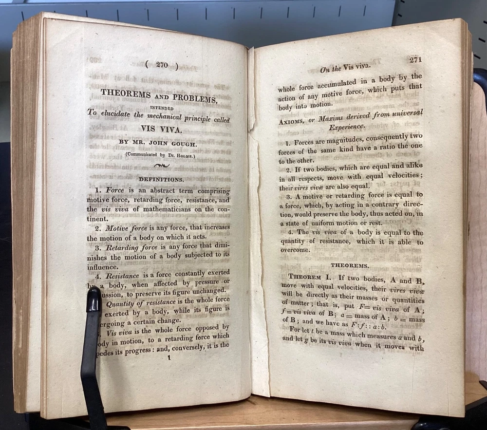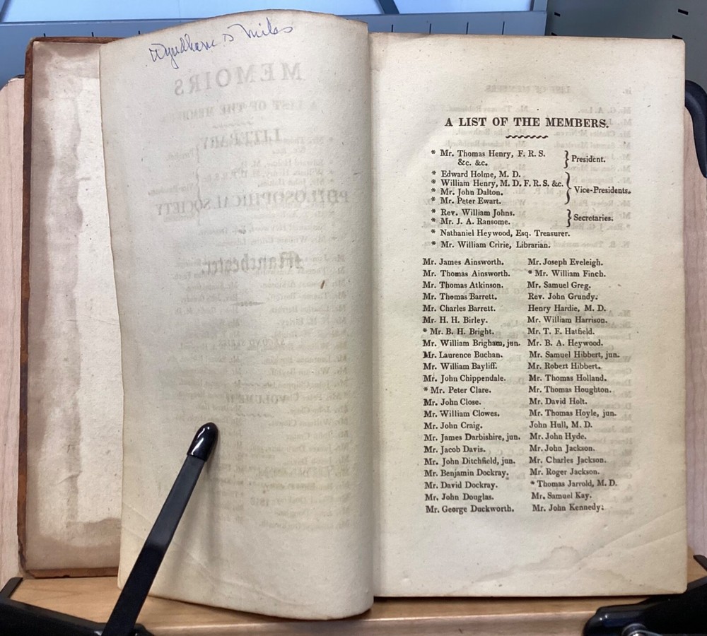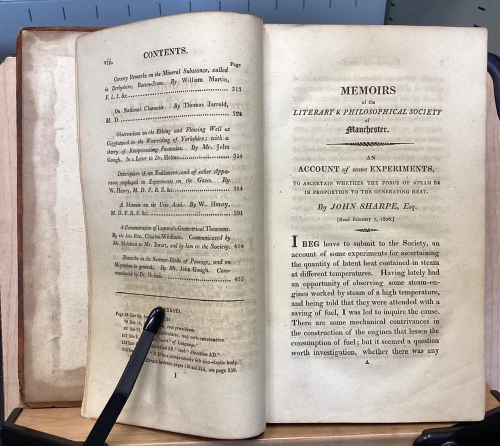 Memoirs of the Literary and Philosophical Society of Manchester, Second Series, Vol. II, R. Bickerstaff, London, 1813, 484pp, leather, 5 x 8.5", 8vo Poor condition/as is. Front and rear boards are completely detached from binding. Chipping and redrot present on boards. Tips are bumped. Very little of the spine is still present, the rest having chipped off. Bookplate on front pastedown for The Library Company of Baltimore. Marginalia on front endpapers. Toning, age-staining, and tea-staining throughout textblock. Includes 5 fold-out plates and 4 full-page plates. The plate between 262-263 appears to have been ripped out. Imprinting of illustrations and plates to opposite pages. Please see photos and ask any questions prior to purchase. The Literary and Philosophical Society of Manchester is the second oldest learned society in Britain, founded on the 28 February 1781. The society organizes a range of lectures, including the Wilde, Joule, and Dalton Lectures and three lectures annually specifically for Young People. Membership is open to anyone over 16 years of age and lectures are held both in person at venues in Manchester City Centre, and (since 2020) online. The society's Memoirs were first published in 1783 and were, at the time of its launch, the only regular scientific journal in the United Kingdom except for the Philosophical Transactions of the Royal Society . Memoirs contains the transactions of the society (most notably the text of many recent lectures) and is distributed to members and to similar institutions throughout the world by subscription. Copies are also available for purchase by non-members. FORN-MSB-0124-TUB0002-JC67