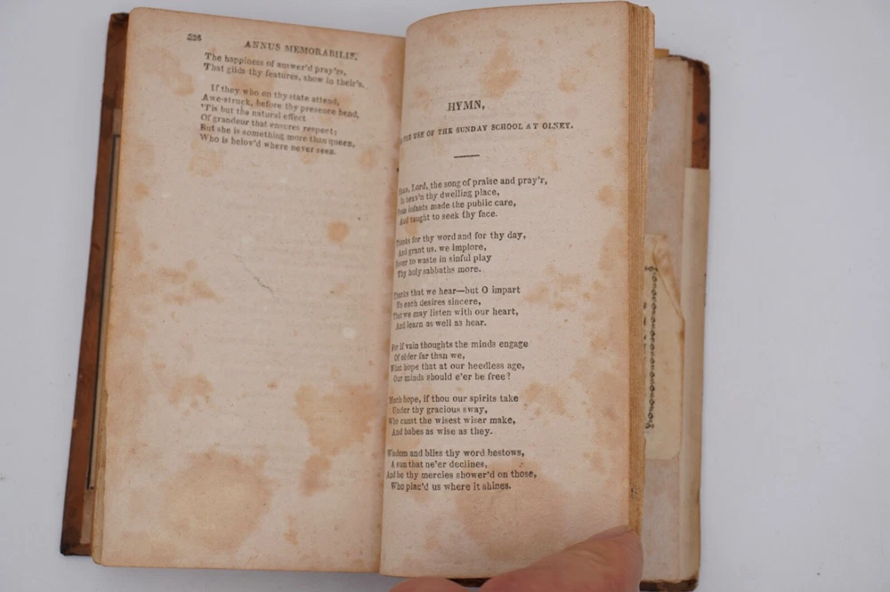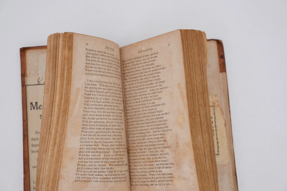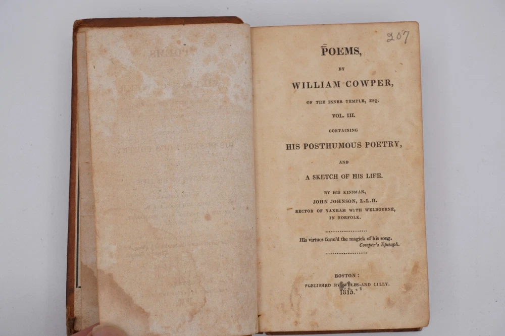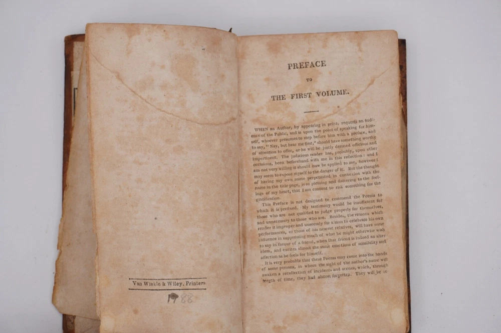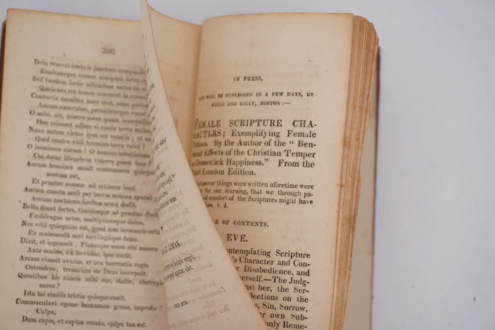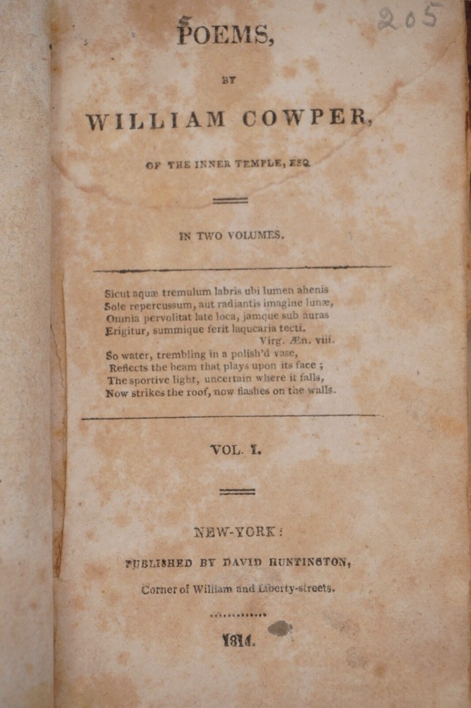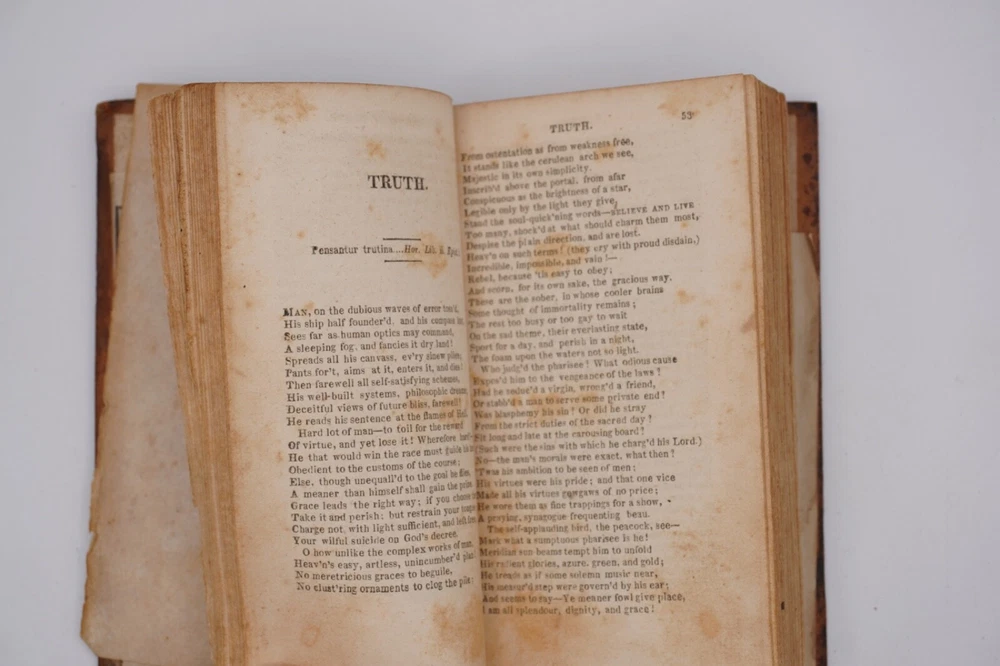 Condition is acceptable. Many library indications including spine label, plate in front, cardholders in back. Text also has moderate to heavier foxing throughout most of first 2 volumes with volume 3 being much better, examples shown. Most boards are split with back of Vol 1 only holding by 1 cord. Appears complete and no obvious pages missing except there is no frontispiece in the first volume, with Vols 1 & 2 published by David Huntington and Vol 3 a different publisher. But they are all in what looks like a contemporary early binding as a set. Also a few endpapers are starting to loosen, FEP in Vol 1 is nearly detached. Size about 3x5.25"