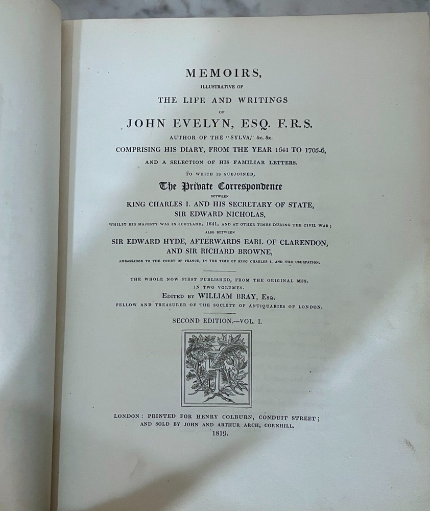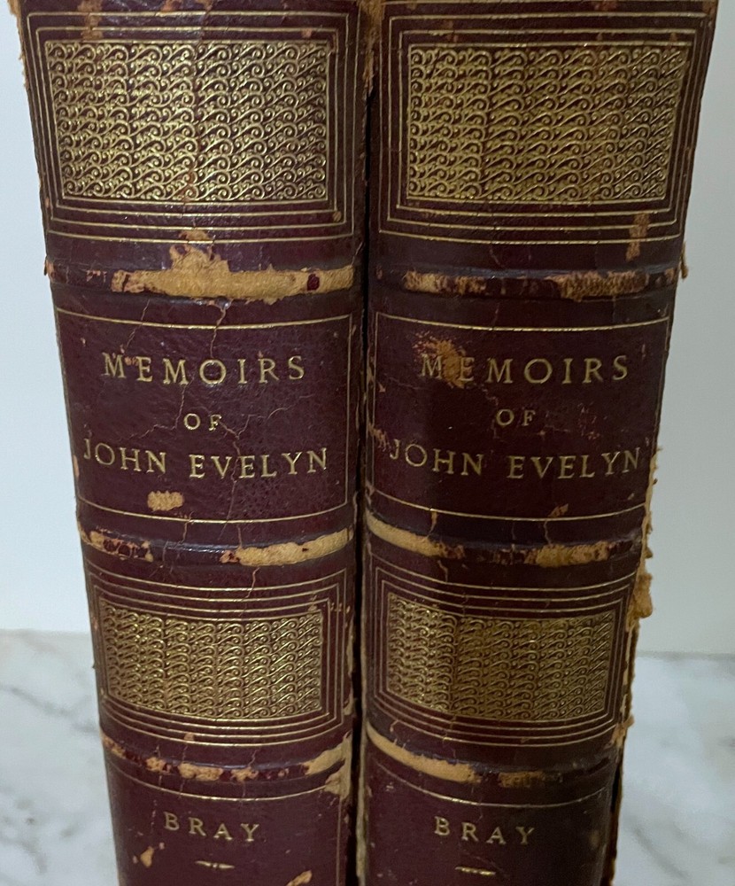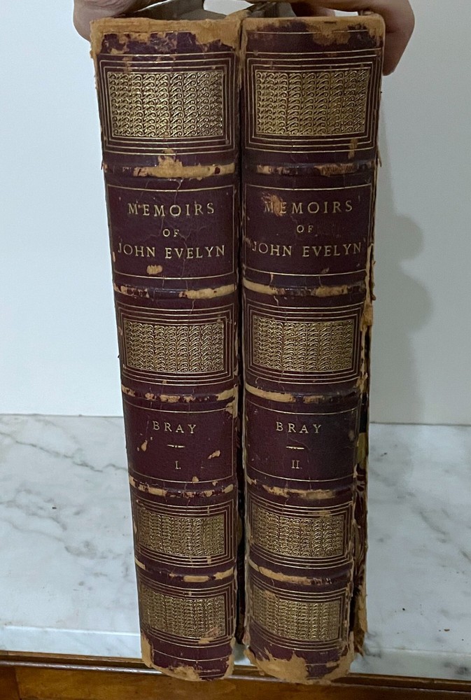 1819 - MEMOIRS OF JOHN EVELYN - BY WILLIAM BRAY - VOLS I & II - SECOND EDITION Memoirs, Illustrative of the life and writings of John Evelyn Printed for Henry Colburn, and sold by John and Arthur Arch, 1819 Condition: Books are in antique condition, leather bound, complete, both covers are dettached from the books, foxing on pages. Condition as shown in photos, sold as is I hope to make this a very happy and smooth transaction. Feel free to contact me with any questions