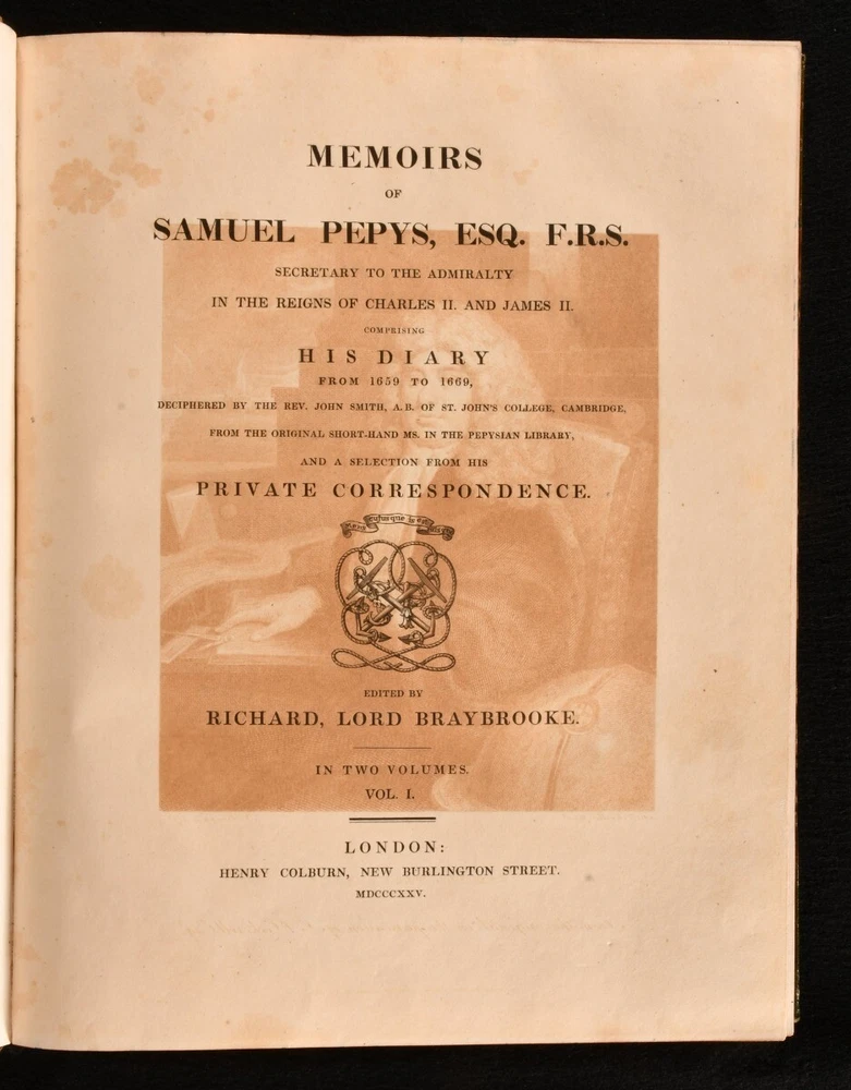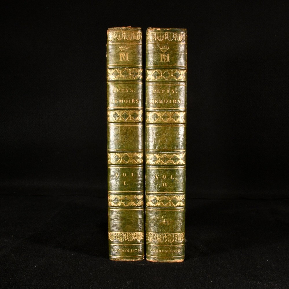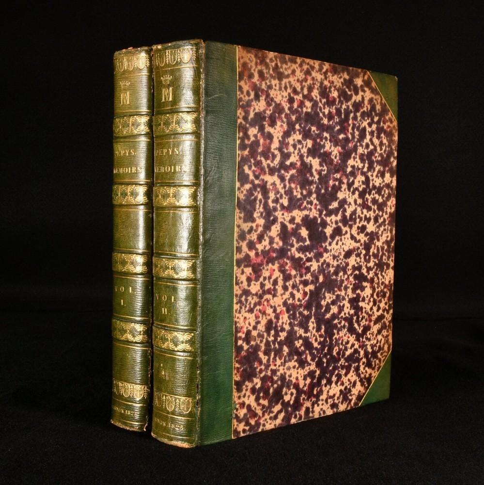 Click here to see our other books! Memoirs of Samuel Pepys, ESQ, F.R.S., Secretary to the Admiralty in the Reigns of Charles II and James II Samuel Pepys 1825 Henry Colburn : London 12" by 9.5" [5], vi-xlii, [1], 2-498, [3], ii-xlix; [3], 2-348, [3], ii-vii, [2], 4-311pp SUMMARY The first full published edition of Samuel Pepys' historically important diary, an immense document of the 1670s, an interesting era of British history. First Edition,Illustrated,Leather Binding Overall Condition: Very Good Indeed This book weighs 6 KG when packed UK Postage: £ 4.49 US Postage: £ 47.99 EU Postage : £ 28.99 European Postage: £ 49.99 Asia Postage: £ 79.99 Worldwide Postage: £ 159.99 DESCRIPTION The first edition thus of this work, being the first published edition of Pepys' diary in full. Complete in two volumes. The historically important diaries of Samuel Pepys. Volume I illustrated with a frontispiece, and nine plates. Volume II illustrated with a frontispiece, one double-paged map, and three plates. Collated, complete. Pepys' diaries was kept from 1660 to 1669, and it is now considered to be one of the most important primary sources of the English Restoration. Pepys was the Chief Secretary to the Admiralty under both Kings Charles II and James II. His diaries is a brilliant historical resource for the English Restoration. The diaries are noted for its eyewitness accounts of great events, including the Great Plague of London, the Great Fire of London, and the Second Dutch War. Including Pepys' correspondence. Edited by Richard, Lord Braybrooke. CONDITION In a half straight grain morocco binding, with marbled paper to the boards. Externally, smart, with light rubbing to the boards and spines. Spines are a touch faded. Light bumping to the spines and extremities. Internally, firmly bound. Pages are bright and generally clean with some spots. Overall Condition: Very Good Indeed GLOSSARY OF TERMS Overall Condition (Dustwrapper condition rating is shown after that for the book itself, where a dustwrapper is present) Fine - Very well preserved copy showing very little wear Very Good Indeed - Only one or two minor faults, really a very attractive copy Very Good - Quite a wide term meaning no major faults but probably several smaller ones often expected given the age of the book, but still a respectable copy Good - Meaning not very good. Some more serious faults as will be described in the condition report under 'condition' Good Only - Meaning one or more faults that could really do with repair Fair - As with good only above but with other faults leaving a compromised copy even after repair Poor - Really bad and possibly seriously incomplete. We only sell books in this condition where their rarity or value makes them attractive none the less. Major defects will be described. GUARANTEE We offer a full money back guarantee on our descriptions. Please ask for details and conditions. We prefer PAYPAL. If you pay via PAYPAL we will post the item off the same or the next working day with the postage you have selected. Please note we cannot accept USD cheques