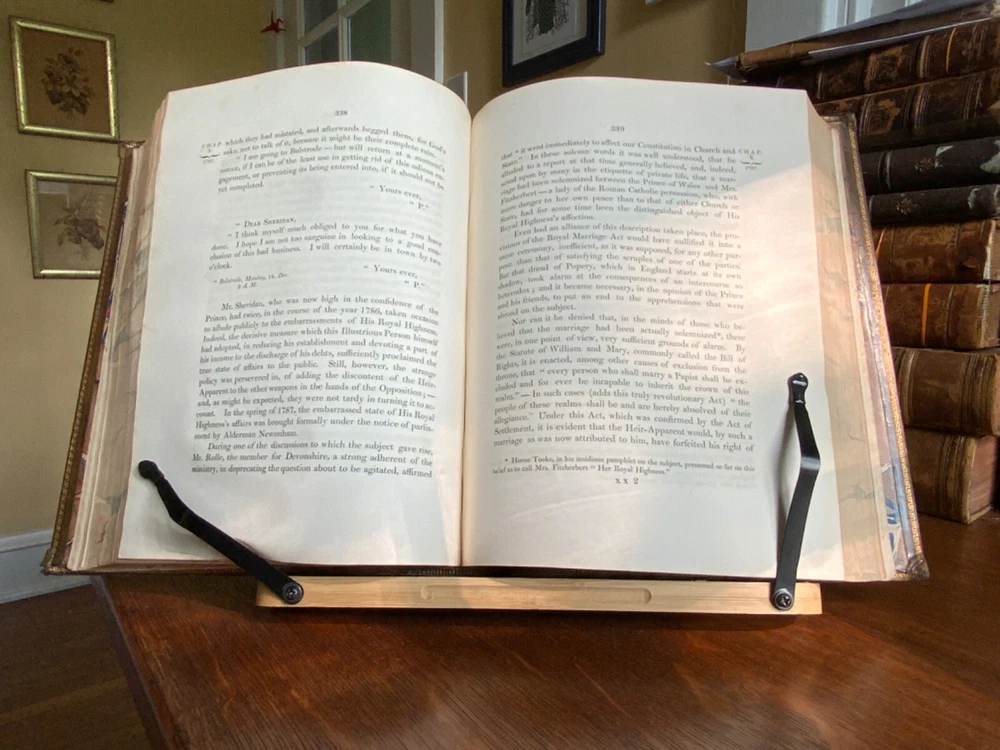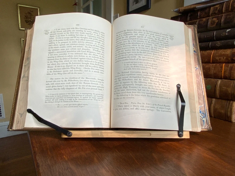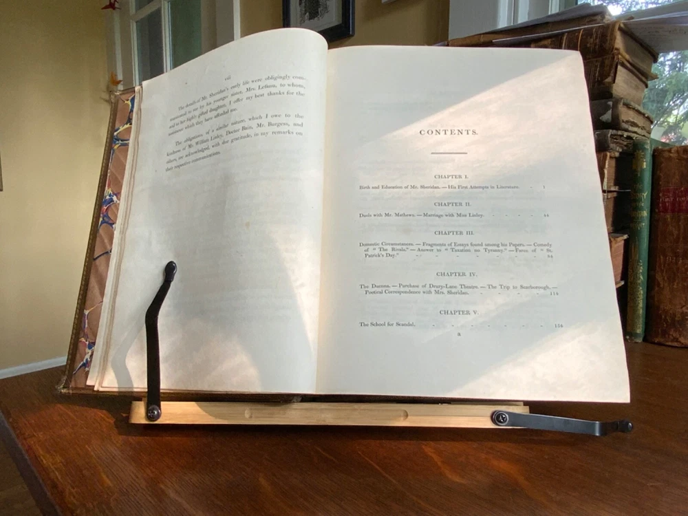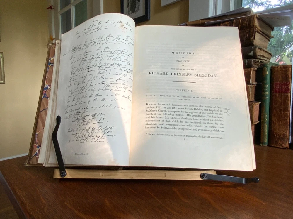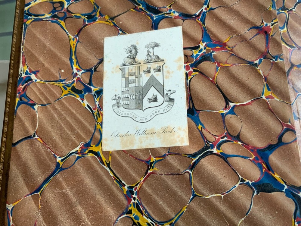 Memoirs of the Life of The Right Honourable Richard Brinkley Sheridan. By Thomas Moore, Longman, Hurst, Rees, Orme, Brown, and Green, London, 1825, frontispiece of Sheridan, 719 pp, full light brown leather, 11 x 9”, 4to. In good condition. Light wear to extremities with minor scuffing along edges and corners. Boards exhibit scuffing with marks and rubbing. Corners slightly crushed. Joints slightly tender with light creasing and minor cracking at the bottom edge of rear board. Gilt compartments have minor rubbing to decorative pomegranates. Presents handsomely. All edges marbled. Bookplate of Charles William Packe on front pastedown. Binder’s ticket of W. Barratt, Bookbinder Lincolns Inn Fields on rear of fly. Foxing to frontis and tissue guard. Offsetting from plate to title. Internally good with light toning and minor instances of foxing. Free of known marginalia. Binding tight and intact. Please see photos. Finely bound signed binding by W. Barratt. Previously owned by Charles Packe (1792-1867) a British Conservative Party politician. He inherited Prestwold Hall upon his father’s death in 1837, and later acquired Glen Hall and an 18-acre estate in southern Leicestershire. On his death, Packe owned nearly 2,500 acres in Leicestershire and had amassed a gross personal wealth of 35,000 pounds. First edition of Thomas Moore’s biography of the playwright and politician Richard Brinsley Sheridan (1751-1816). COLL1825CKLB-623