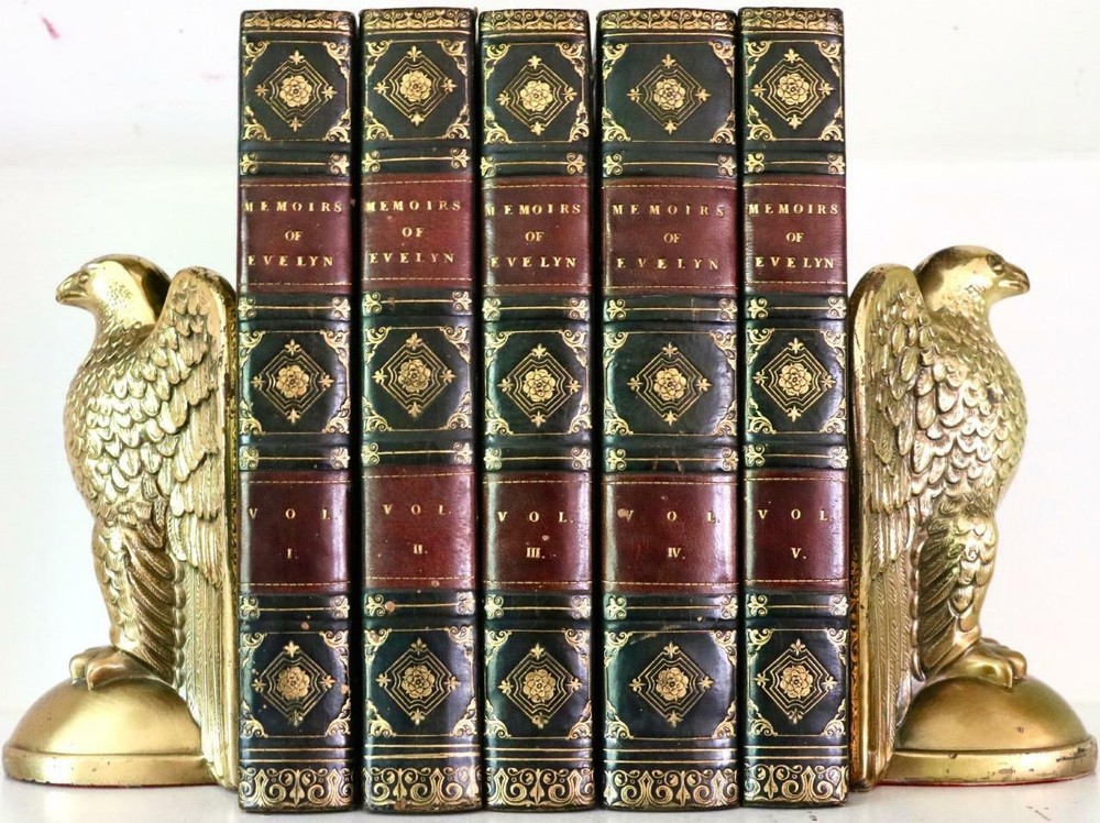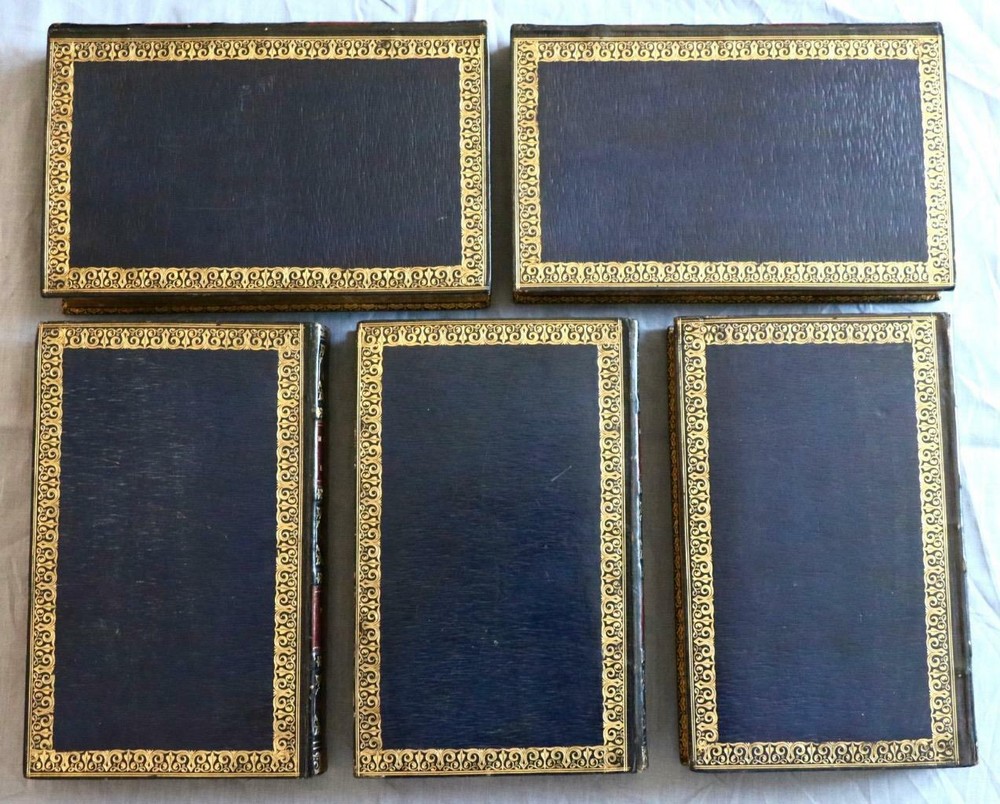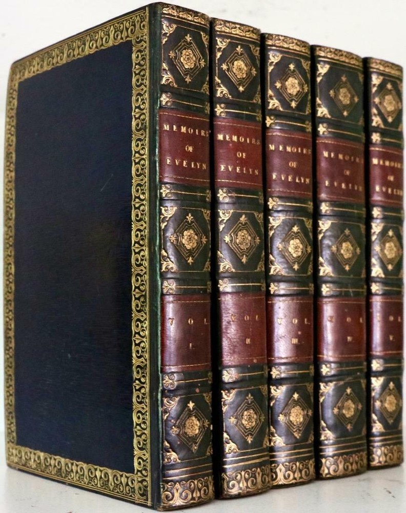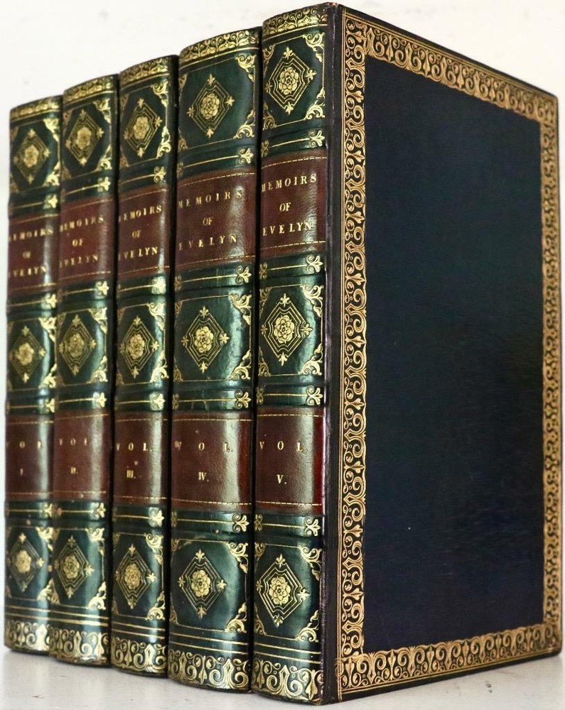 THIS COMPLETE FIVE VOLUME SET IS IN VERY GOOD+ CONDITION IN FULL BLUE STRAIGHT GRAIN MOROCCO WITH ELABORATE BRIGHT GILT BORDERS AND TURNS INS, FIVE COMPARTMENTS TO SPINE WITH BRIGHT GILT DETAILS AND TITLE. BINDING AND HINGES ARE VERY GOOD, MARBLED END PAPERS, PASTE DOWNS AND END PAGES, NO LOOSE OR MISSING PAGES, PAGES ARE NICE AND CLEAN, WITHOUT MARKS, VERY LITTLE FOXING TO MAJORITY OF PAGES WITH HEAVIER FOXING TO FOLDOUTS AND PLATES. ILLUSTRATED WITH FRONTISE TO EACH VOLUME AND FOLDING PLATES TO VOLUME ONE, BOOKS MEASURE 8.5"x5.5". 190 YEARS OLD. A BEAUTIFUL SET IN REMARKABLE CONDITION. 1827 Memoirs Of John Evelyn GREAT PLAGUE of London Oliver Cromwell Foldouts VG+ Description RARE!!! 1827 ATTRACTIVE BINDINGS GREAT CONDITION 190 YEARS OLD NICELY ILLUSTRATED THIS COMPLETE FIVE VOLUME SET IS IN VERY GOOD+ CONDITION IN FULL BLUE STRAIGHT GRAIN MOROCCO WITH ELABORATE BRIGHT GILT BORDERS AND TURNS INS, FIVE COMPARTMENTS TO SPINE WITH BRIGHT GILT DETAILS AND TITLE. BINDING AND HINGES ARE VERY GOOD, MARBLED END PAPERS, PASTE DOWNS AND END PAGES, NO LOOSE OR MISSING PAGES, PAGES ARE NICE AND CLEAN, WITHOUT MARKS, VERY LITTLE FOXING TO MAJORITY OF PAGES WITH HEAVIER FOXING TO FOLDOUTS AND PLATES. ILLUSTRATED WITH FRONTISE TO EACH VOLUME AND FOLDING PLATES TO VOLUME ONE, BOOKS MEASURE 8.5"x5.5". 190 YEARS OLD. A BEAUTIFUL SET IN REMARKABLE CONDITION. !!!CLICK HERE!!! Visit My eBay Store TO SEE ALL THE BOOKS WE HAVE FOR SALE!!! IF YOU LIKE WHAT YOU SEE THAN SAVE US TO YOUR FAVORITES BY CLICKING HERE. Add me to your Favorite Sellers All pictures are taken with a high resolution camera and are part of the description. Please look at all pictures carefully to determine the condition you think the book is in before bidding. RARE ANTIQUARIAN BOOKS CAN BE FRAGILE AND NEED TO BE HANDLED WITH CARE. About us: Reagan's Rare Books is a purveyor of Antiquarian books predating 1899. We love antique books! We search all over the country for the finest rare books, looking for those with beautiful bindings and in great condition so that we can offer you, the customer, a truly rare one of a kind collectible. Paypal Preferred. Please make payment arrangements within 48 hours of winning your auction. We reserve the right to re-list items not paid within 5 days. Shipping *To Insure That Your Package arrives without any Problems , Please Double Check to Make Sure That The Address You Have Selected in eBay Is Correct. All books are carefully packaged for the trip ahead. All books are shipped with delivery confirmation and tracking. Books over $75.00 are automatically insured. RETURNS 100% Satisfaction Guaranteed. Returns accepted for any reason within 14 days of receipt. PLEASE CHECK MY OTHER LISTINGS. POSTING NEW RARE BOOKS DAILY/WEEKLY. Get Images that Make Supersized Seem Small. Get Auctiva's Listing Templates on your items with a few clicks. Attention Sellers - Get Templates Image Hosting, Scheduling at Auctiva.com. Track Page Views With Auctiva's FREE Counter