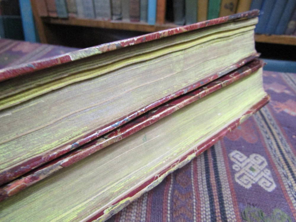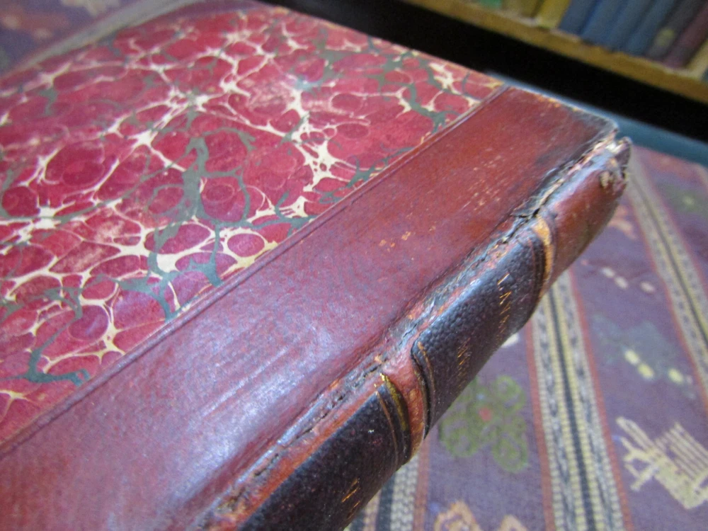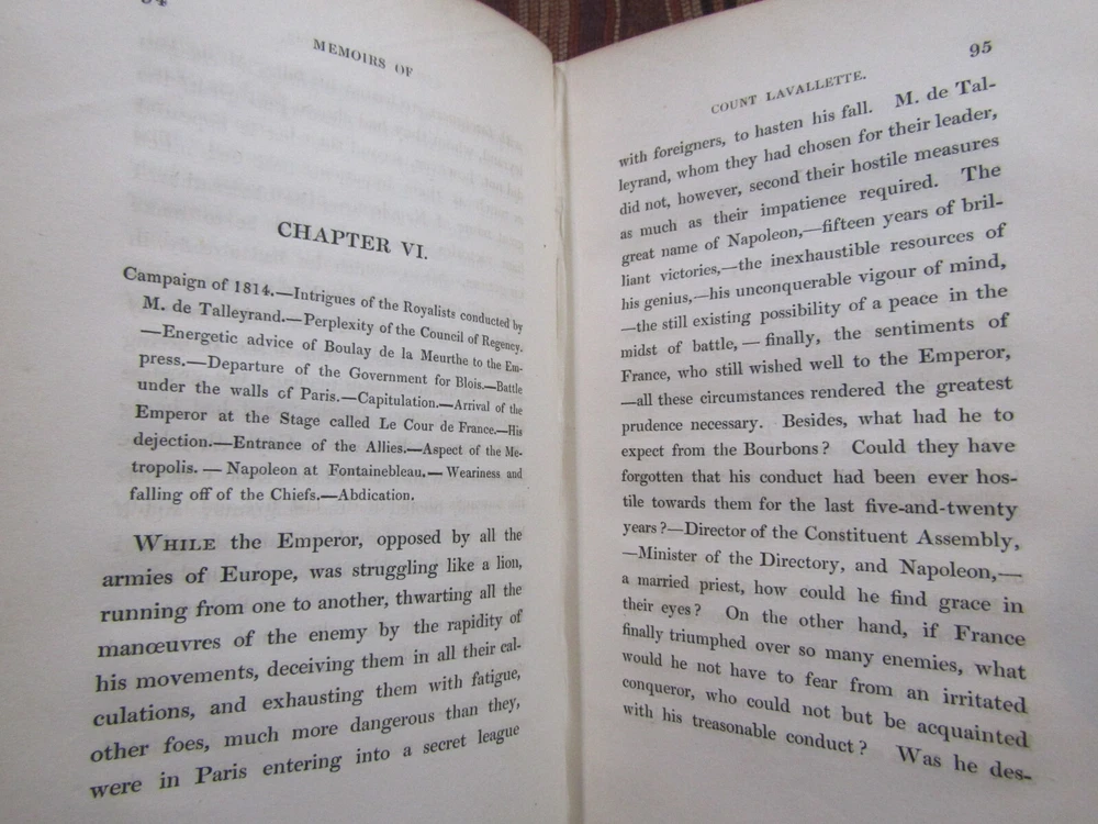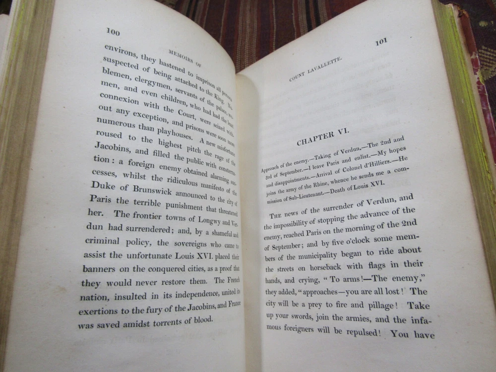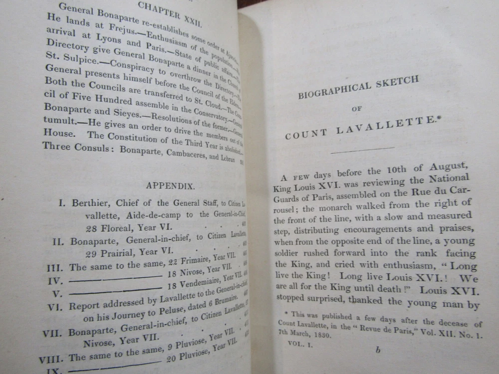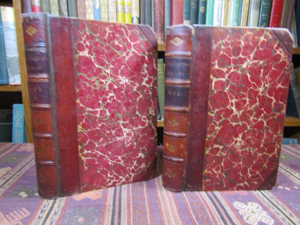 ~~Two Volume Set~~ ~ Attractive Leather Bindings ~ Memoirs of Count Lavallette In Two Volumes By Antoine Marie Chamans Lavallette London: Henry Colburn and Richard Bentley, ~ (1831) ~ ************************************************* Octavos. 412; 459 pages. 2 volume set. Hardcovers bound in 3/4 red leather with red marbled paper covered boards. The bindings are rubbed. Spines are toned, have some light scuffs. 5 raised bands. Black label pastedowns on spines have titles in gilt, which have dulled and darkened. Corners are rubbed down to boards. Fore-edges and bottoms of text blocks are yellow, appear to be faux gilt. Top edges of text blocks are mottled. Volume I has been rebacked with the original spine laid down. New endpapers in Volume I. Both volumes have been placed in modern clear removable mylar dust jackets Antoine Marie Chamans, comte de Lavalette ( 1769-1830 ) was a French politician and general who was in the French Revolutionary Army under Napoleon during the French Revolution. ***************************************** We Always Accept Returns if the Item Does Not Match the Description. If You Have any Questions, Please Do Not Hesitate to Ask! *************************************************** Come visit our OPEN SHOP in Greensboro, North Carolina. Shop Hours: 10-6 Mondays ~~ Saturdays ~~Closed on Sundays~~ Pages Past -- Used & Rare Books / 1837 Spring Garden St. / Greensboro, N.C. 27403 We are proud to have serviced the Greensboro area with an open bookshop since 1996 !
