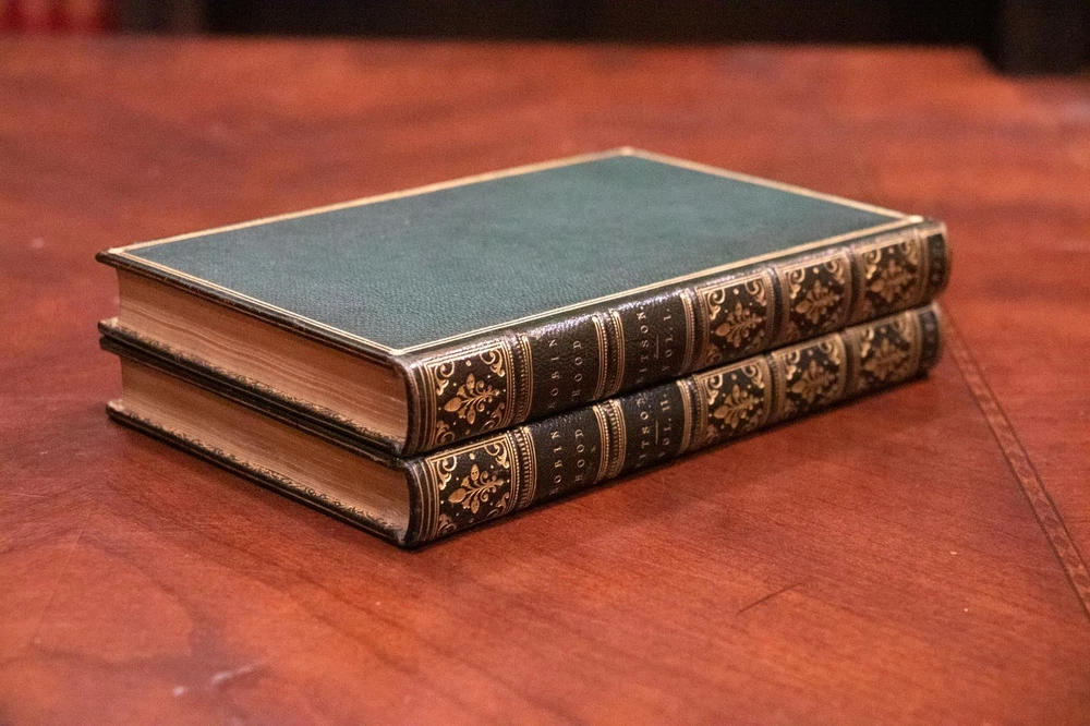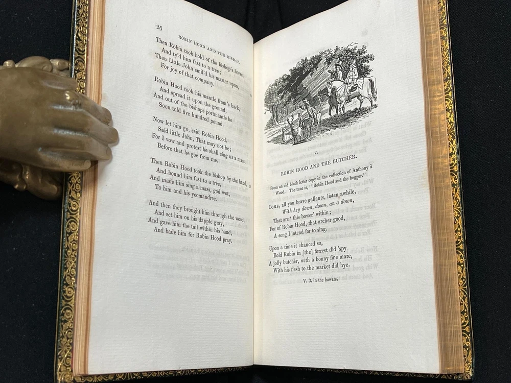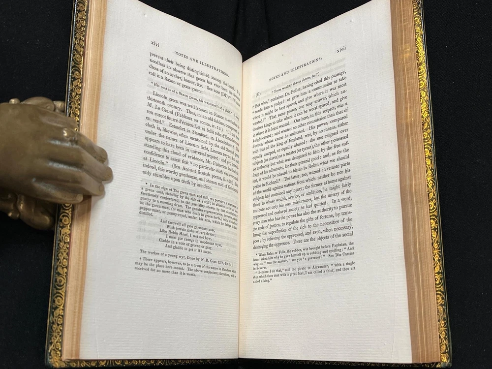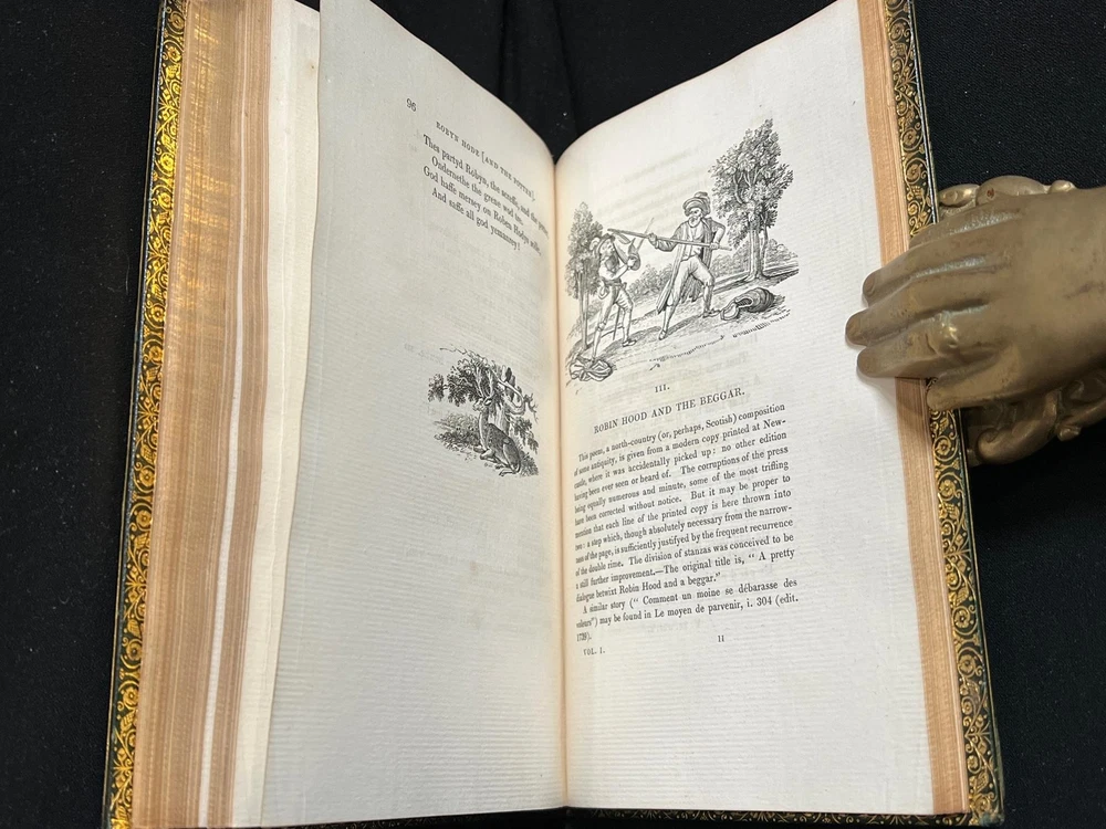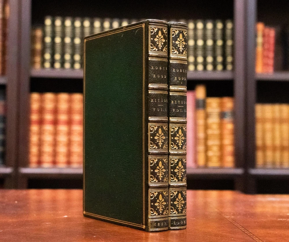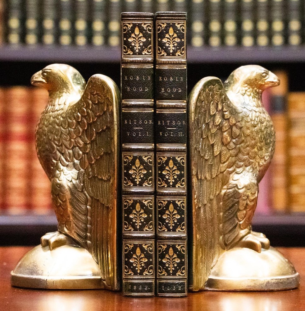 THIS COMPLETE TWO VOLUME SET IS IN NEAR FINE CONDITION BEAUTIFULLY BOUND BY J. WRIGHT BINDER IN FULL GREEN CRUSHED MOROCCO WITH BRIGHT GILT RULE TO BOARDS, SIX COMPARTMENTS AND FIVE RAISED BANDS TO SPINES WITH BRIGHT GILT DETAILS AND TITLE. BINDING AND HINGES ARE VERY GOOD, MARBLED END PAPERS, PASTE DOWNS AND BRIGHT GILT END PAGES. NO LOOSE OR MISSING PAGES, PAGES ARE BRIGHT AND CLEAN, WITHOUT MARKS AND LITTLE TO NO FOXING. NICELY ILLUSTRATED WITH NUMEROUS WOODCUTS. 148, 261 PAGES, BOOKS MEASURE 7.5"x5". SECOND EDITION, 191 YEARS OLD. A STUNNING SET IN REMARKABLE CONDITION. 1832 Robin Hood English Outlaw Fine Leather Bound by J Wright Binder Illustrated 1832 Robin Hood English Outlaw Fine Leather Bound by J Wright Binder Illustrated Description THIS COMPLETE TWO VOLUME SET IS IN NEAR FINE CONDITION BEAUTIFULLY BOUND BY J. WRIGHT BINDER IN FULL GREEN CRUSHED MOROCCO WITH BRIGHT GILT RULE TO BOARDS, SIX COMPARTMENTS AND FIVE RAISED BANDS TO SPINES WITH BRIGHT GILT DETAILS AND TITLE. BINDING AND HINGES ARE VERY GOOD, MARBLED END PAPERS, PASTE DOWNS AND BRIGHT GILT END PAGES. NO LOOSE OR MISSING PAGES, PAGES ARE BRIGHT AND CLEAN, WITHOUT MARKS AND LITTLE TO NO FOXING. NICELY ILLUSTRATED WITH NUMEROUS WOODCUTS. 148, 261 PAGES, BOOKS MEASURE 7.5"x5". SECOND EDITION, 191 YEARS OLD. A STUNNING SET IN REMARKABLE CONDITION. !!!CLICK HERE!!! Visit My eBay Store TO SEE ALL THE BOOKS WE HAVE FOR SALE!!! IF YOU LIKE WHAT YOU SEE THAN SAVE US TO YOUR FAVORITES BY CLICKING HERE. Add me to your Favorite Sellers RARE ANTIQUARIAN BOOKS CAN BE FRAGILE AND NEED TO BE HANDLED WITH CARE. About us: Reagan's Rare Books is a purveyor of Antiquarian books primarily from the 18th and 19th centuries. We love antique books! We search all over the country for the finest rare books, looking for those with beautiful bindings and in great condition so that we can offer you, the customer, a truly rare one of a kind collectible. Paypal Preferred. Please make payment arrangements within 48 hours of winning your auction. We reserve the right to re-list items not paid within 5 days. Shipping *To Insure That Your Package arrives without any Problems , Please Double Check to Make Sure That The Address You Have Selected in eBay Is Correct. All books are carefully bubble wrapped and packed in a box with adequate packing peanuts to prevent any damage during shipment. All books are shipped with delivery confirmation and tracking. Books over $75.00 are automatically insured. RETURNS 100% Satisfaction Guaranteed. Returns accepted for any reason within 30 days of receipt. PLEASE CHECK MY OTHER LISTINGS. POSTING NEW RARE BOOKS DAILY/WEEKLY. Images sell! Get Supersized Images & Free Image Hosting Create your brand with Auctiva's Customizable Templates. Attention Sellers - Get Templates Image Hosting, Scheduling at Auctiva.com. Track Page Views With Auctiva's Counter