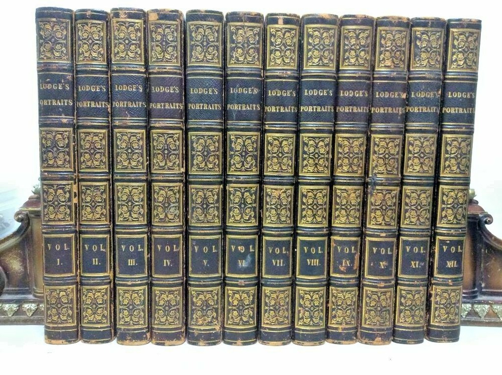 Attention Collectors! Super Rare! 1835 Twelve Volume Complete Set Portraits of Illustrious Personages of Great Britain Here is a very rare antiquarian set of hardcover books that would be a fantastic addition to a collection! You are bidding on a rare antique set of hardcover books titled Portraits of Illustrious Personages of Great Britain. Engraved from authentic pictures in the Galleries of the Nobility and the Public Collections of the Country with Biographical and Historical Memoirs of Their Lives and Actions. Printed in London for Harding and Lepard, 1835. The set is complete in twelve volumes and you are bidding on all twelve volumes. The volumes are numbered Vol I through Volume XII, inclusive. It is an all-matching set. It is possible that this could be one of the first sets to be printed, perhaps a set for the author to proof, because on the page after the Appendix, there is a printed page that gives Directions to the bookbinder (refer to picture). You would not expect to see a page like this on volumes that were intended for the general public. The books contain 240 impressive engravings by various hands such as, Hoppner, Van Dyke, Holbein, Kneller, Lawrence, Gainsborough, Copley and others. Each portrait is protected by a tissue guard and each portrait is accompanied by a short history of its subject. The books are fully bound in leather and are beautifully decorated in gilt designs and gilt lettering. The spines have five raised bands, gilt decoration and lettering, all edges gilt, dentelles and inner dentelles, These are good-sized books, measuring approximately 10 3/4" tall and 7 1/2" wide. All covers are firmly attached with no cracking or splitting of hinges. The corners and edges show some expected wear and there is a bit of usual wear to top/bottom of spines. The bindings remain in overall very good condition, especially considering the age of this set. The outside edge of the pages has gilt edge on all three sides. All pages are clean and tightly bound and in very good condition. The only exception is that some of the full page engravings in Volume I show a moisture stain at the top area of the page. It does not go near nor affect the illustrated area of the engravings in any way. The books have attractive endpages with a swirling design. There is a small previous owner bookplate affixed to the inside of the front covers. There is no writing, underlining, or notations in the books (On blank page in Volume I, written in pencil is "Subscriber's Copy"). The books remain in very good condition and would be a fantastic addition to any collection!!! Quite a rare and desirable set! Great gift idea! (Inventory: Box 160) Track Page Views With Auctiva's FREE Counter