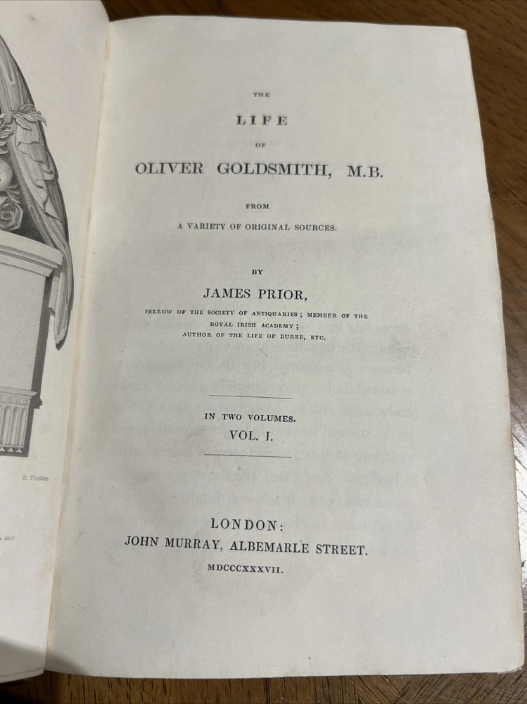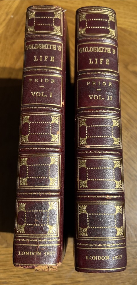 For sale is a rare and unique two-volume set entitled "The Life of Oliver Goldsmith" by James Prior. This first edition leather-bound book was published in London by John Murray in 1837. It features an English language text with no stated illustrator and is considered an original/facsimile. This book is a true collector's item and has special attributes that make it one-of-a-kind. It is in excellent condition and has been well-preserved over the years. If you are a fan of antique and collectible books, this is a must-have addition to your collection. See photos