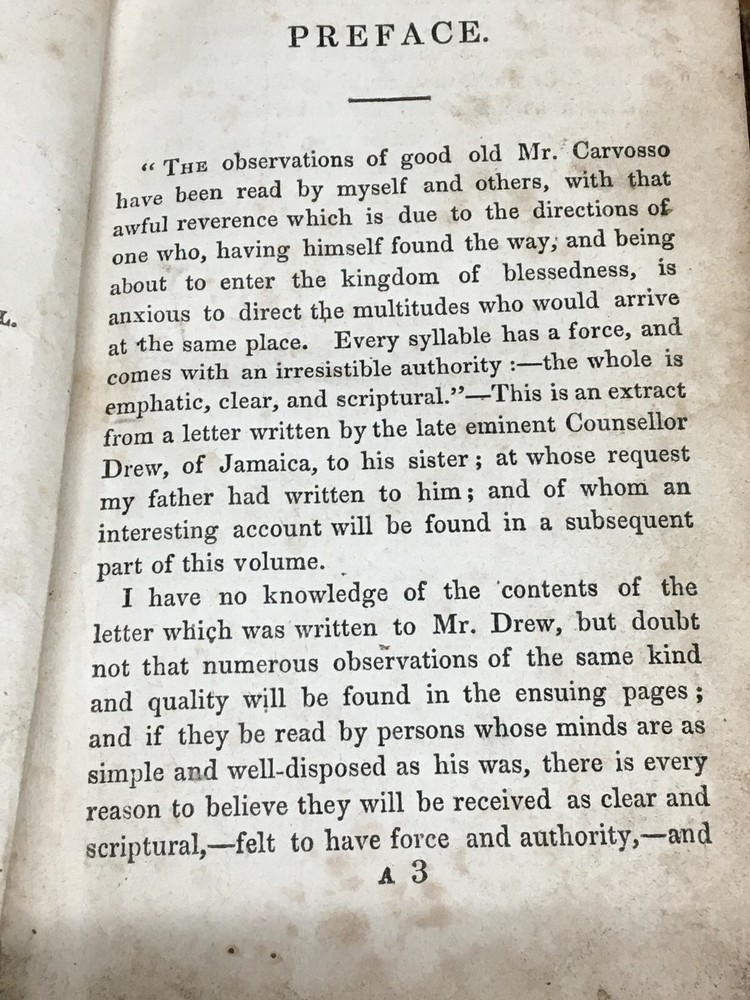 The Efficacy Of Faith In The Atonement Of Christ: Exemplified In A Memoir Of Mr. William Carvosso, Sixty Years A Class-Leader In The Wesleyan Methodist Connexion. Written By Himself, And Edited By His Son. London: Published By J. Mason, 1837. Fifth Edition. Publisher's full leather covered boards. 381 pages. Measures 6" x 4". Rare book!