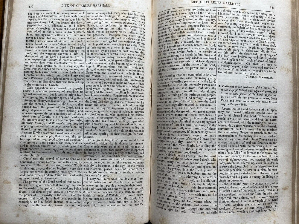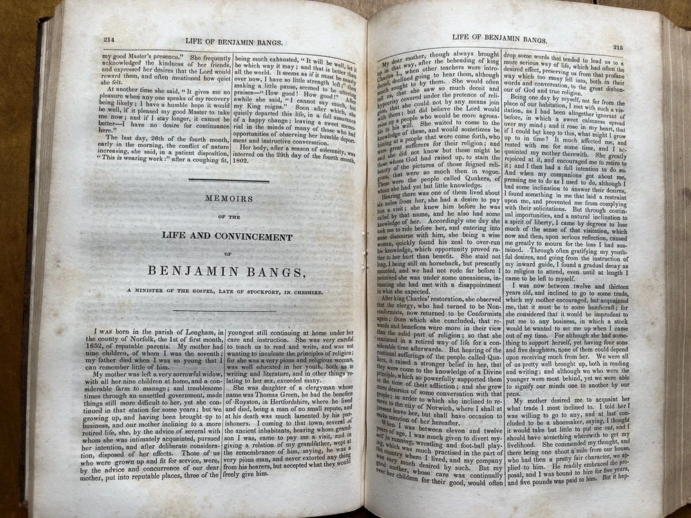 This antique Quaker book is a fascinating piece of history! The 1840 first edition is in solid condition despite its age, with a full leather binding showing expected wear, including a unique fire-marked spine. The handwritten inscriptions add charm, making it feel even more special. A must-have for collectors of religious texts or early American literature—full of rich memoirs and writings from the Society of Friends. The character and authenticity shine through every detail!