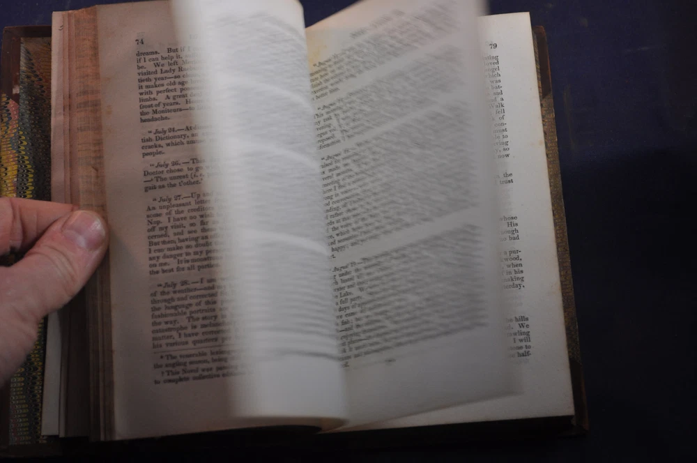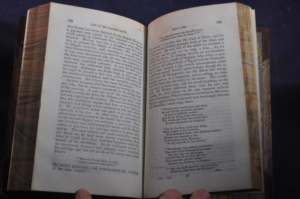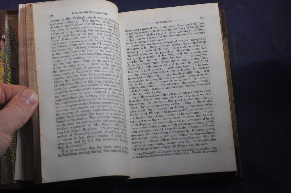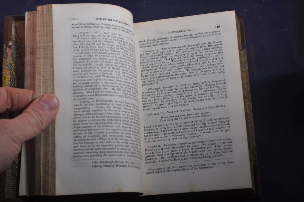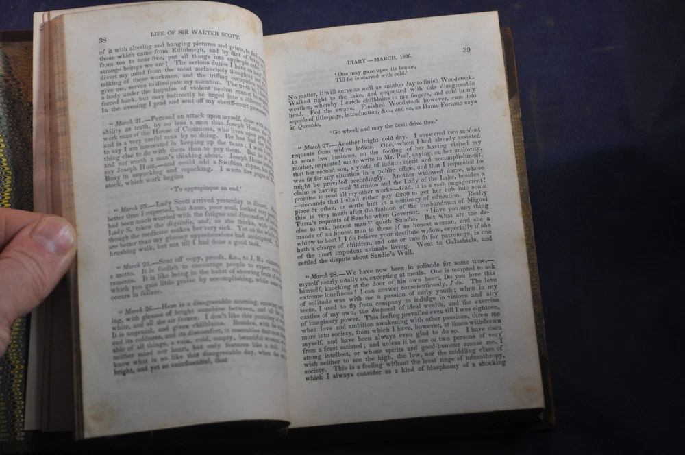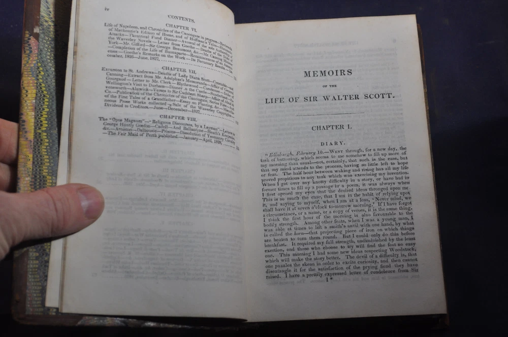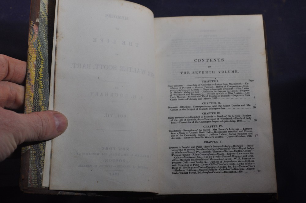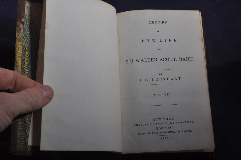 Memoirs of the Life of Sir Walter Scott, Bart. J.G. Lockhart Published by Charles S. Francis, New York (1841) 248 pp. Volume 7 contents, shows volume 4 on spine See photos for condition details. Spine and board wear. Label missing. Pages and binding tight & white. pencil flyleaf.