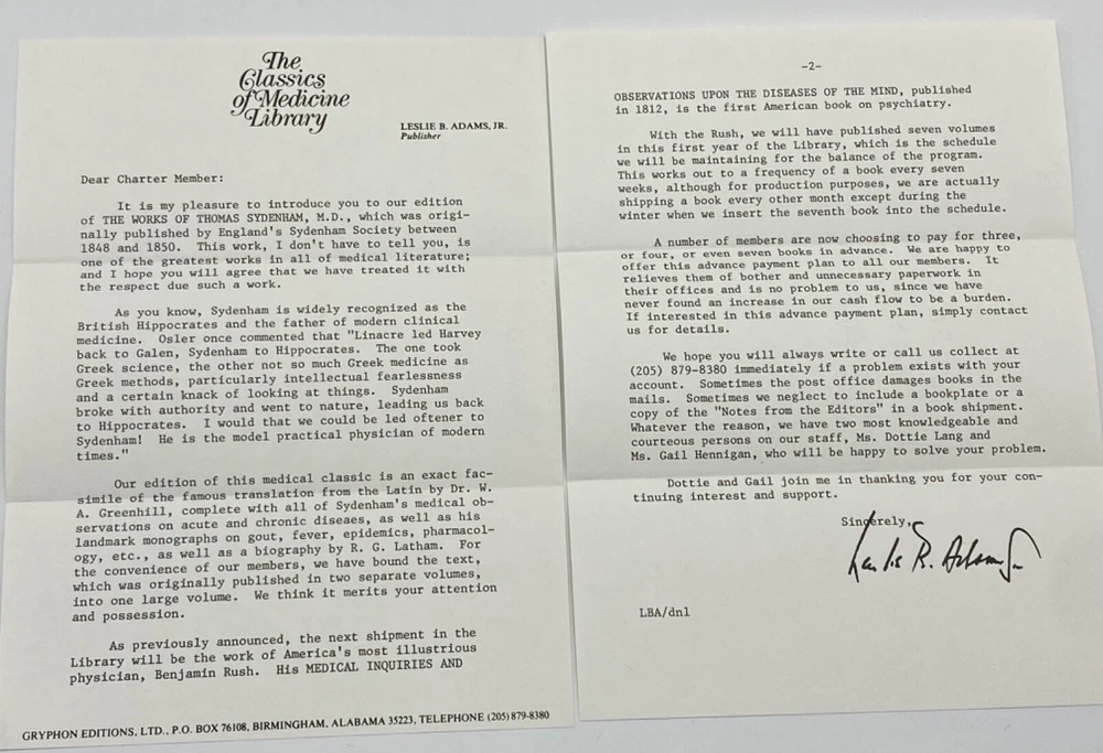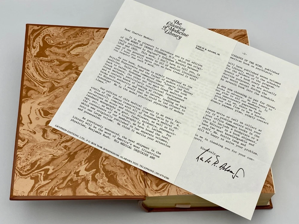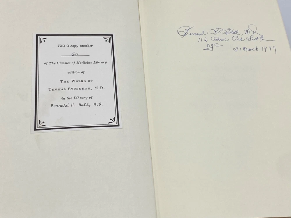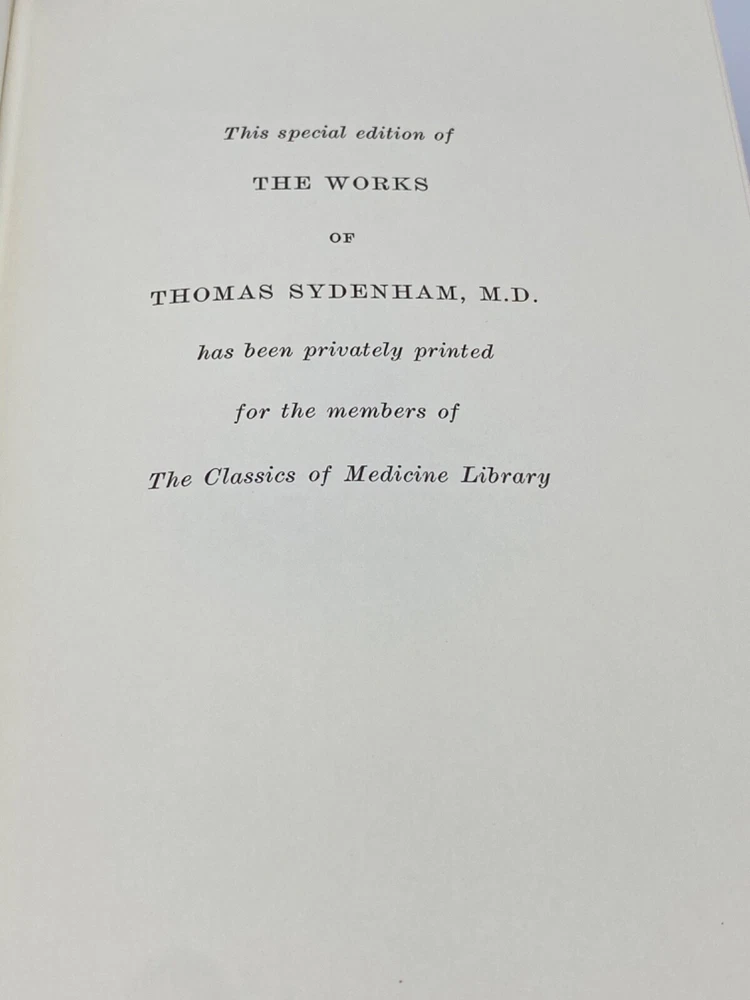 MAKES THE PERFECT GIFT FOR ANY FAN OF MEDICINE / ANATOMY OF THE HEART / ANY MEDICAL PROFESSIONAL ** PLEASE READ : Mahalo for taking the time to look at our listing. We truly appreciate it. We always do our BEST to give you the most accurate description of these beautiful books. If, however, you have any SPECIFIC questions about the SIZE of the book, NUMBER of pages, TYPE of leather, SMELL or FEEL of the book, PLEASE email us through EBay’s mail system BEFORE you bid, and we will be HAPPY to give you more information. We want you to be completely happy with your purchase and keep you as our customers for years to come!** DESCRIPTION: The Classics of Medicine full-leather binding, LONG OUT-OF-PRINT AND HIGHLY COLLECTIBLE REPRINT OF THE 1843 edition of THE WORKS OF THOMAS SYDENHAM, M.D. THIS IS A SCARCE VINTAGE HEIRLOOM EDITION DONE EXACTLY LIKE EASTON PRESS OR FRANKLIN LIBRARY EDITIONS WITH LAVISH DEEP GILT IMPRESSIONS TO THE BOARDS AND SPINE. IT IS ONE OF THE MOST HIGHLY-PRIZED & MOST BEAUTIFUL EDITIONS OF THIS GREAT CLASSIC OF MEDICINE YOU CAN FIND. ORIGINAL PUBLISHER’S NOTES ARE INCLUDED . 🍍 NOT INCLUDED… 😃 Description ABOUT THE BOOK: The works of that excellent practical physician, Dr. Thomas Sydenham: wherein not only the history and cures of acute diseases are treated of, after a new and accurate method; but also the shortest and safest way of curing most chronic diseases. CONDITION: Books is in AMAZING condition for its age with only a few minor rubs to the gilt page ends and spine, an attached bookplate, and dedication to the front free endpage (SEE PICS FOR BETTER DETAILS). NO ATTACHED BOOKPLATES, WRITING FROM PREVIOUS OWNER, ETC. It is an BEAUTIFUL edition. SHIPPING: FREE to US ADDRESSES ONLY. INTERNATIONAL $ based on location. WE SHIP PRIORITY MAIL & PACK VERY WELL. Please check out our other listings of Easton Press, Franklin Library, Limited Editions Club, First Edition Library, International Collectors Library, Heritage Press, and Folio Society editions. WE DO COMBINE SHIPPING IF YOU PURCHASE MORE THAN ONE COPY. Mahalo for looking at our listings! By bidding/purchasing this item, you are helping a very grateful family who sends you our WARMEST ALOHA & MAHALO!