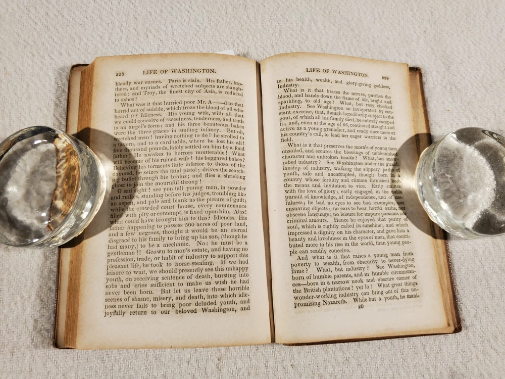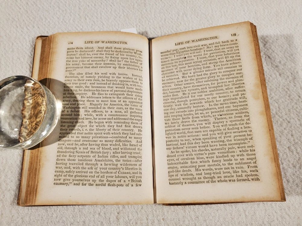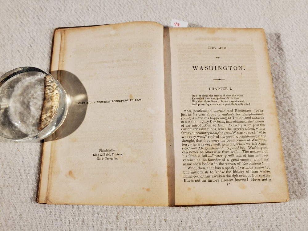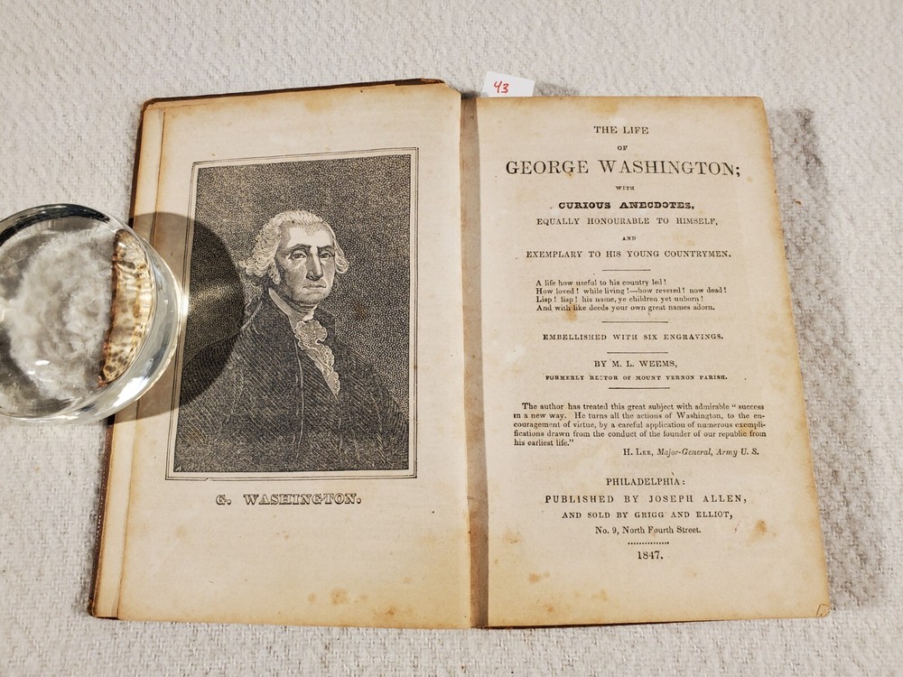 See Photos. Comes from an immaculately clean nonsmoking home. In acceptable good condition. Front board and 1st few pages off the binding. No missing pages. Spine and boards show age. Inside pages have light fox marks. Certainly readable. Tanning to pages next to boards and page edges. No writing inside other than name in front. Approx 4.5" x 7". Seller Lot #23043. The Life of George Washington; With Curious Anecdotes, Equally Honourable to Himself, and Exemplary To His Young Countrymen By M.L. Weems Published: Joseph Allen Philadelphia 1847. Interestingly, this biography is the source of the quote "I cannot tell a lie." Mason Locke Weems (October 11, 1759 -- May 23, 1825), usually referred to as Parson Weems, was an American book agent and author who wrote the first biography of George Washington immediately after his death. He was the source of some of the apocryphal stories about Washington. A bestseller that depicted Washington's virtues and was intended to provide a morally instructive tale for the youth of the young nation. Listed shipping costs are for the lower 48 (USA) states. For the Eastern US, there is a strong possibility that you will get it with 2 or 3 day shipping. We ship internationally and encourage buyers to use the eBay Global Shipping Program. If there is a difference between the item description and the photos, use the photos to resolve. Pictures are of the exact item(s) you will receive. Should you be moved to give positive feedback, expect thoughtful and kind positive feedback in return. Thanks for looking at our listing! Check out other vintage/antique items we have at http://stores.ebay.com/Suburbia-Harvest?_rdc=1.