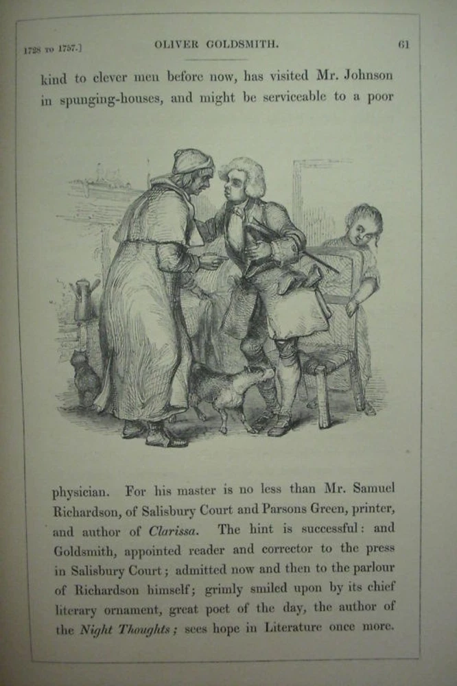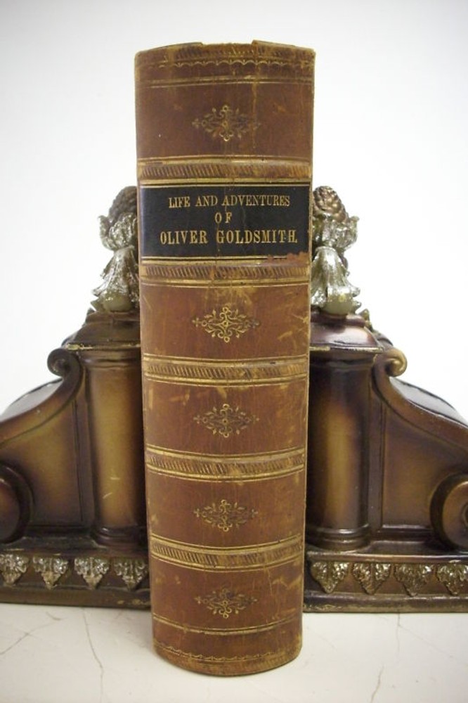 You are bidding on a wonderful and rare antique hardcover book titled The Life And Adventures of Oliver Goldsmith. By John Forster. Published in London, England by Bradbury & Evans and Chapman & Hall, 1848. This is a biography in Four Books. This one volume contains all four books. The book is illustrated. This is the scarce First Edition. John Forster (1812-76) was a noted biographer, critic, essayist and historian, probably best remembered for the first biography of his close friend, the novelist Charles Dickens. He edited the Foreign Quarterly Review, The Daily News, and The Examiner. Born in the same year as Dickens, Forster was the son of a butcher from Newcastle-on-Tyne. Rising to prominence in literary circles, he befriended the likes of Charles Lamb, Leigh Hunt, Thomas Carlyle, Robert Browning and Tennyson. He produced a series of essays dealing with the seventeenth century Puritan Commonwealth, as well as several biographies. This lovely book is quarter-bound in polished calf leather with leather tips. The spine has five raised bands. Titling is in gold on a black leather label. There is gold compartmentalised designs. Covers have swirling design. Covers firmly attached with no cracking or splitting of hinges. The binding shows some wear and scuffing but is in overall very good condition. The leather has remained supple after all these years. All pages clean and tightly bound. Has decorative swirling endpages. The pages have swirling design on all three sides. This is a thick book of 704 pages. Previous owner bookplate on inside of front cover. There is foxing to the first few and last few pages (most of which are blank). The remaining pages are clean and bright and free of any foxing. The book shows some general wear, but is in overall very good condition. It is a leather beauty! Very rare First Edition from 1848! Would make a nice addition to a collection. Great gift idea! (Inventory: 519) Track Page Views With Auctiva's FREE Counter