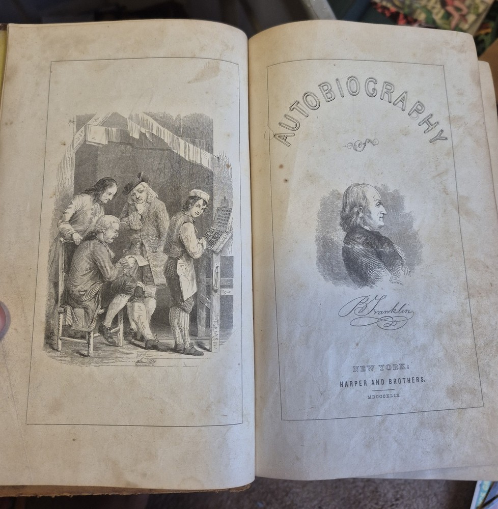 This is a rare and valuable copy of Benjamin Franklin's autobiography, published in 1849 by Harper & Brothers. The book is leatherbound and includes illustrations, making it a beautiful addition to any collection. It provides insight into Franklin's life and services, and is a must-read for those interested in historical biography and autobiography. This original copy was printed in New York, United States and is a valuable asset for anyone studying North American history.