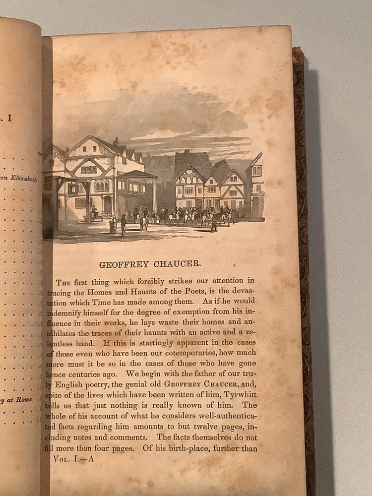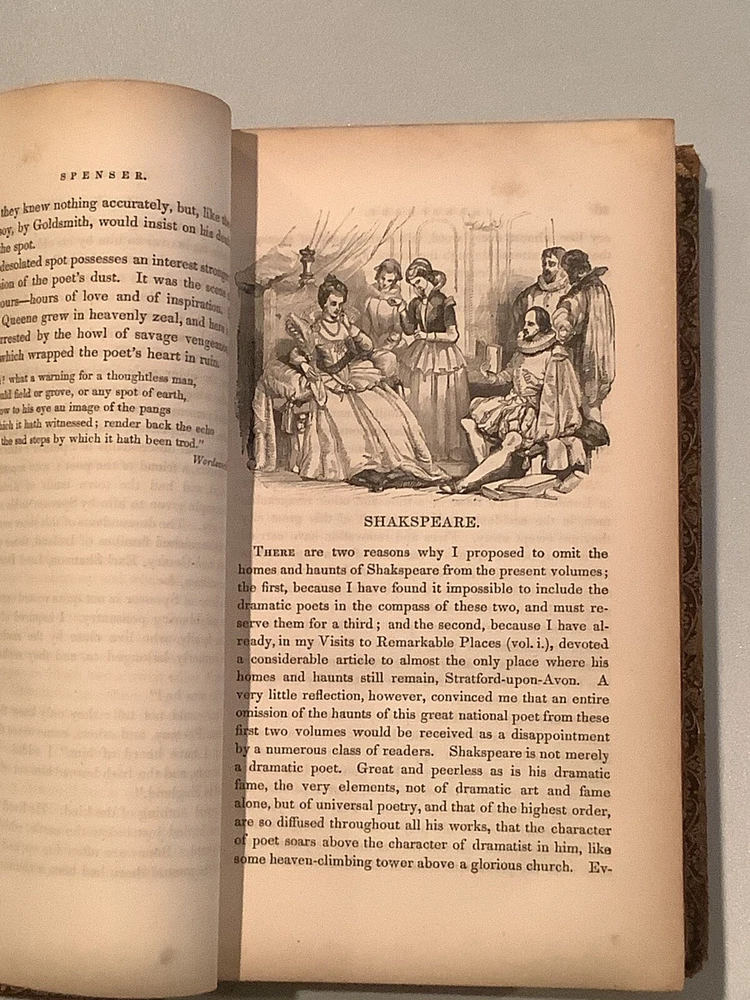This 1856 1 Vol Homes and Haunts of the Most Eminent British Poets by William Howitt is a must-have for poetry enthusiasts and collectors. The book features biographical and autobiographical details of the most eminent British poets, along with information about their homes and haunts. Published by Richard Bentley in London in 1847, this original edition is a rare find that will make a great addition to any collection. The leather bound book is in its original form and has not been signed. The illustrations by George Samuel Measom and W. Measom add to the charm of the book. This book is a great representation of the history of poetry and is a perfect gift for anyone who loves biographies and poetry.