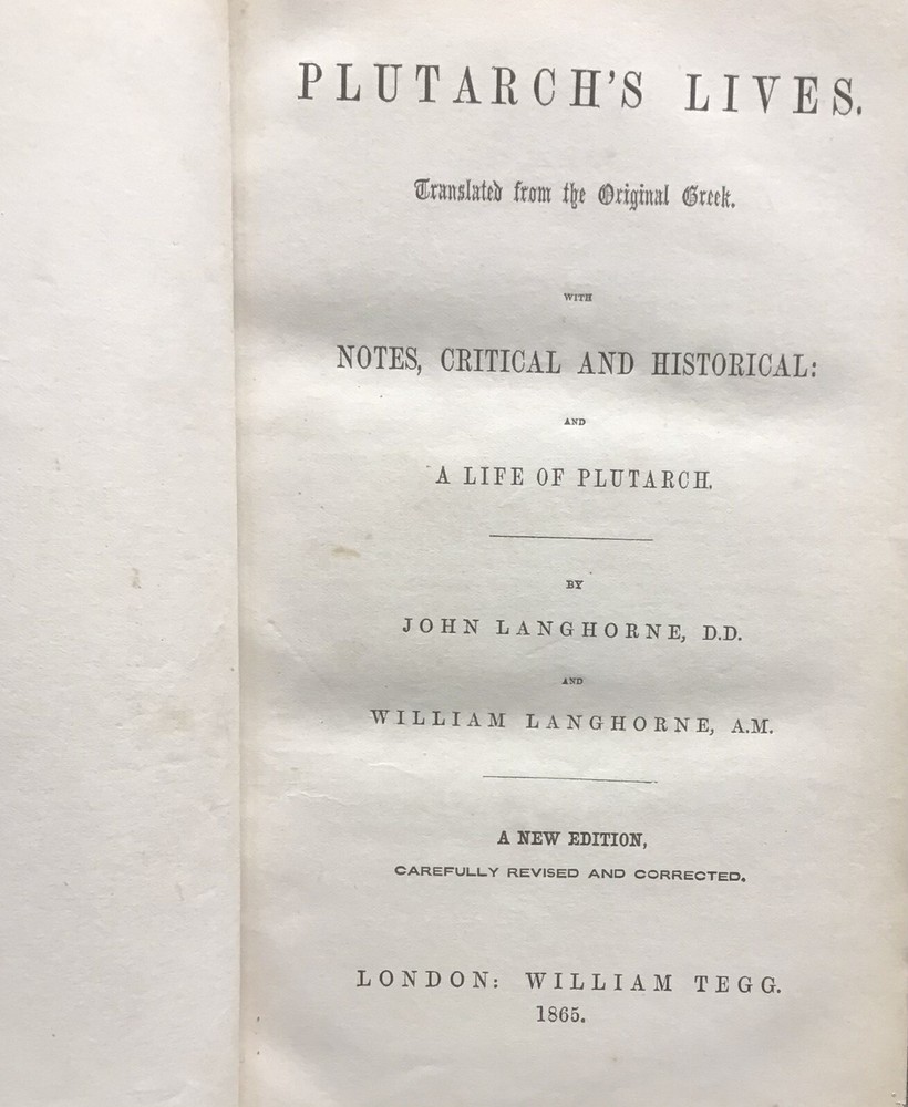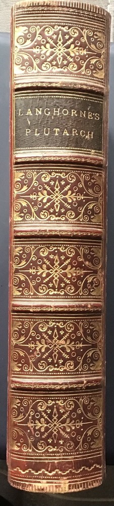 1865 PLUTARCH'S LIVES, TRANSLATED by J. & W. LANGHORNE. Beautifully Bound. Full crimson calf, gilt paneled back, gold lines on sides, with ornamental corner. Shipped with USPS Media Mail....