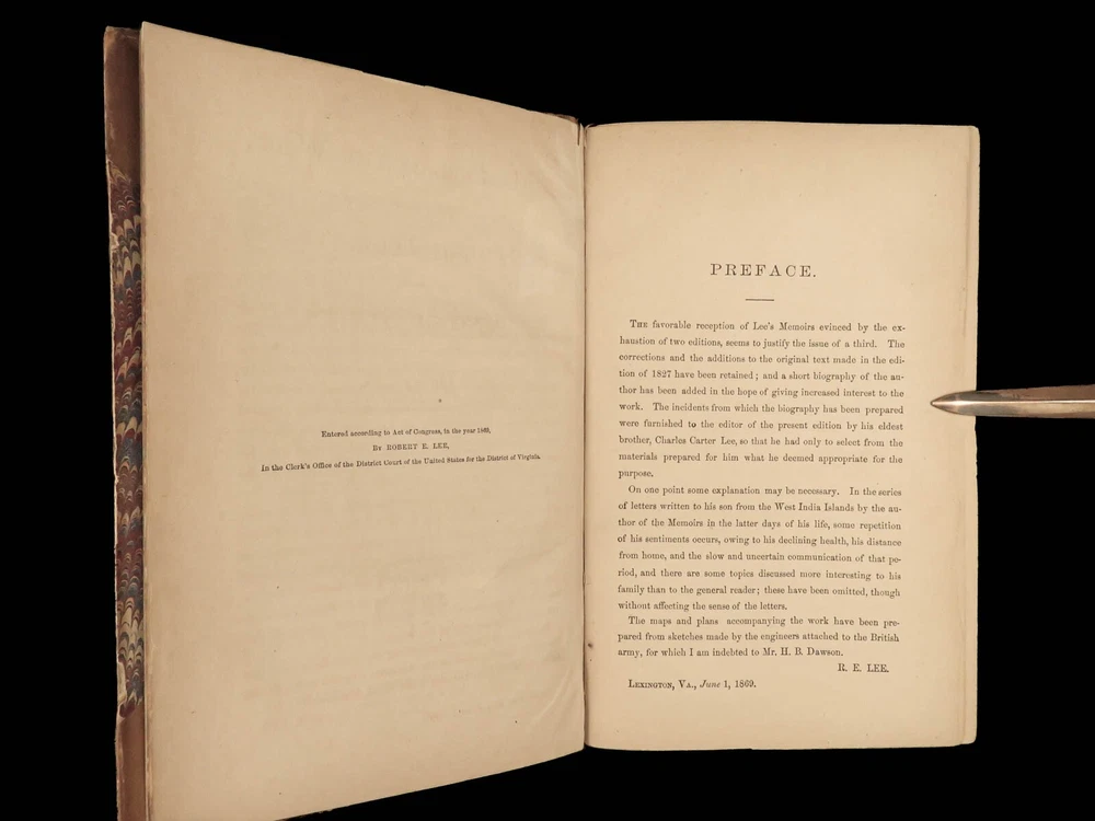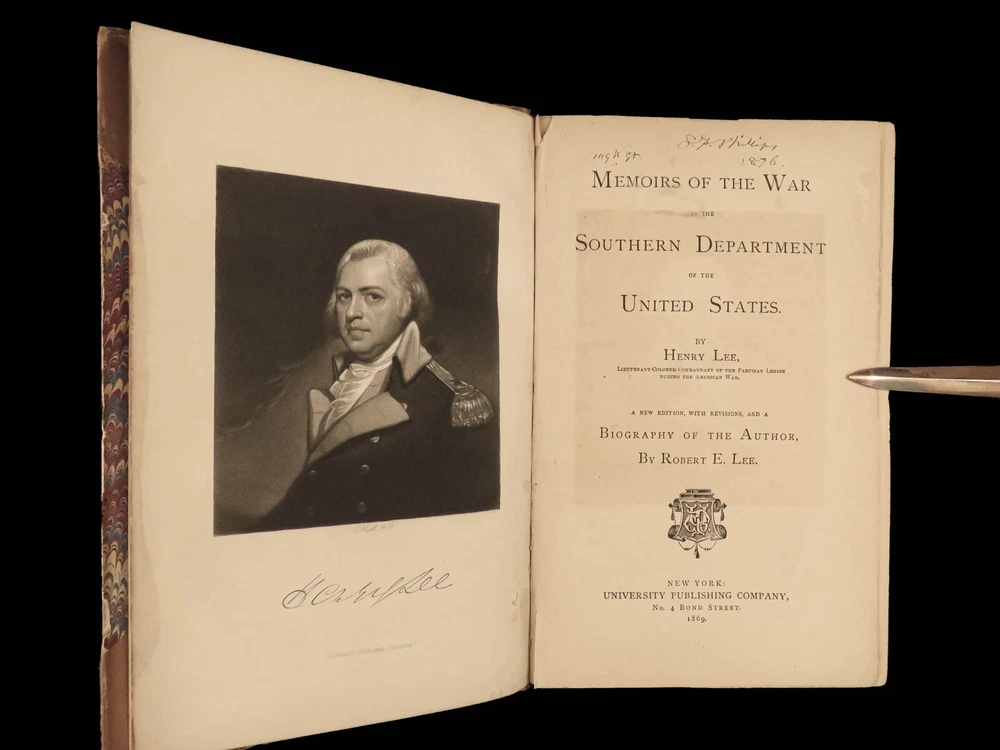 1869 Henry Lee Revolutionary WAR Memoir American South Battles George Washington General Henry Lee was an 18 th -century American military officer during the Revolutionary War. Father of Robert E. Lee, and known as ‘ Light-Horse Harry ’, Lee published a memoir of the war which focused primarily on the war in the southern states. This work includes military reports and letters including letters from George Washington while at Valley Forge. Larned notes of this work – “Lee’s account of the war in the South. Based on personal experiences or on conversations with participants. Outspoken and usually impartial. Original work interesting and valuable.” Item number: #30445 Price: $499 LEE, Henry Memoirs of the war in the southern department of the United States New York: University Publishing Company, 1869. Details : · Collation: Complete with all pages o x, 11-620 o 11 full-page engravings and maps (including frontispiece) · References: Sabin 39741; Howes L 202; Larned 1414; Gephart 13816 o Sabin: “Lee's memoirs are very interesting and as fascinating as a romance, though they undoubtedly contain true history.” · Provenance: Handwritten – S. F. Phillips, 1876 o Samuel Field Phillips (1824–1903), a civil rights pioneer, lawyer, politician who served as the second Solicitor General of the United States from 1872 to 1885. He then took part in the landmark civil rights case, Plessy v. Ferguson . As part of the legal counsel representing Homer Plessy, he argued that the "separate-but-equal" doctrine was nothing less than a disparagement of African-Americans on the basis of color, much like slavery. · Language: English · Binding: Leather; tight and secure · Size : ~9.25in X 6.25in (23cm x 16cm) Our Guarantee: Very Fast. Very Safe. Free Shipping Worldwide. Customer satisfaction is our priority! Notify us with 7 days of receiving, and we will offer a full refund without reservation! 30445