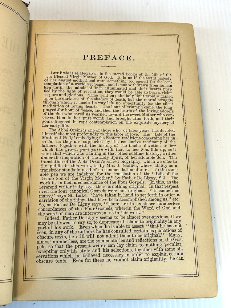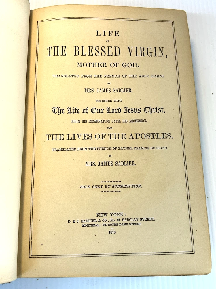 Life of The Blessed Virgin Mother of God Translated From The French Of The Abbe Orsini by Mrs. James Sadlier Together with The Life of Our lord Jesus Christ From His Incarnation Until His Ascension and The Lives Of The Apostles Translated From The French Of Father Francis De Ligny by Mrs. James Sadlier Sold Only By Subscription New York D & J. Sadlier & Co., No. 31 Barclay Street Montreal: 275 Notre Dame Street 1878 7'' by 10" 566 pages I have been an eBay seller since 2000, and a collector/treasure hunter since I was in elementary school. I love being able to rescue items that were destined for the trash heap and find new homes for them with people who will appreciate them. All reasonable offers will be considered! I do my best to describe my items as accurately as possible, but may miss details or make mistakes from time to time. However, if you are unsatisfied for any reason, please reach out to me so I can work to make things right. Thank you for your interest! 100% satisfaction guarantee or receive a quick refund 20% of the sale of this item will be donated to a youth-serving organization SB 37.11