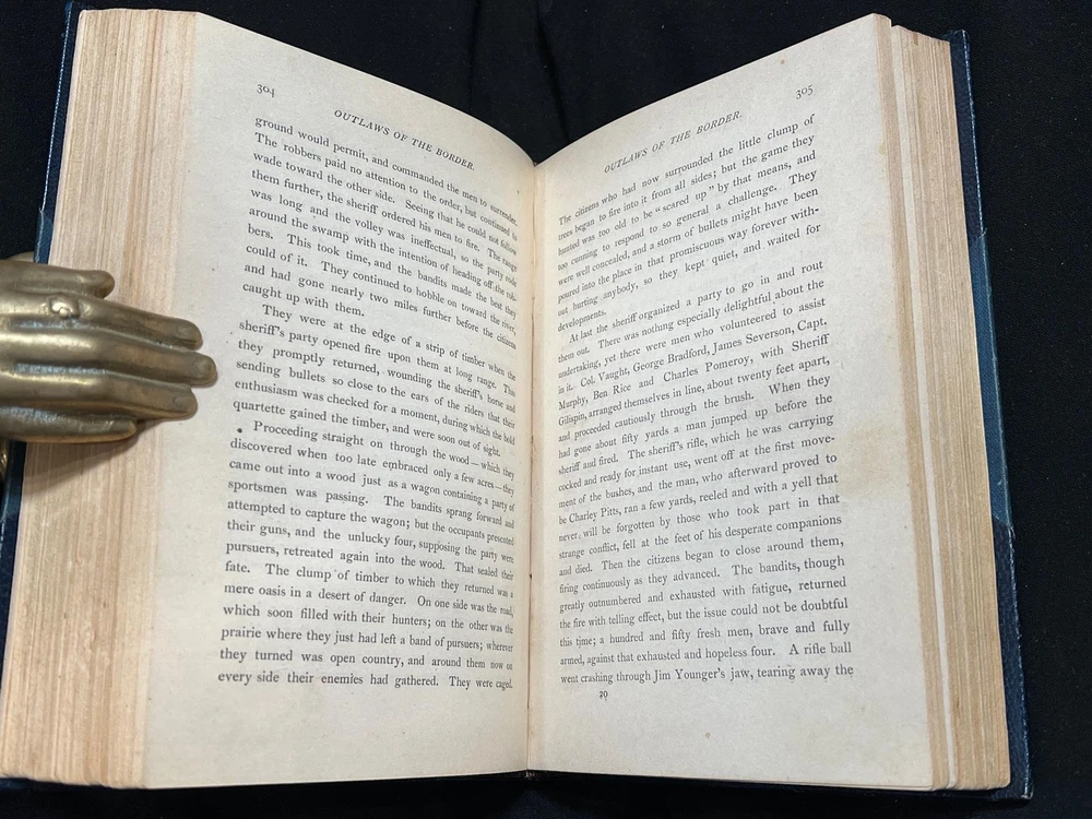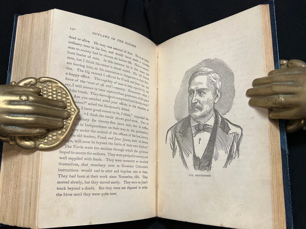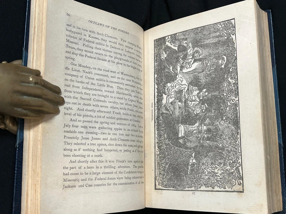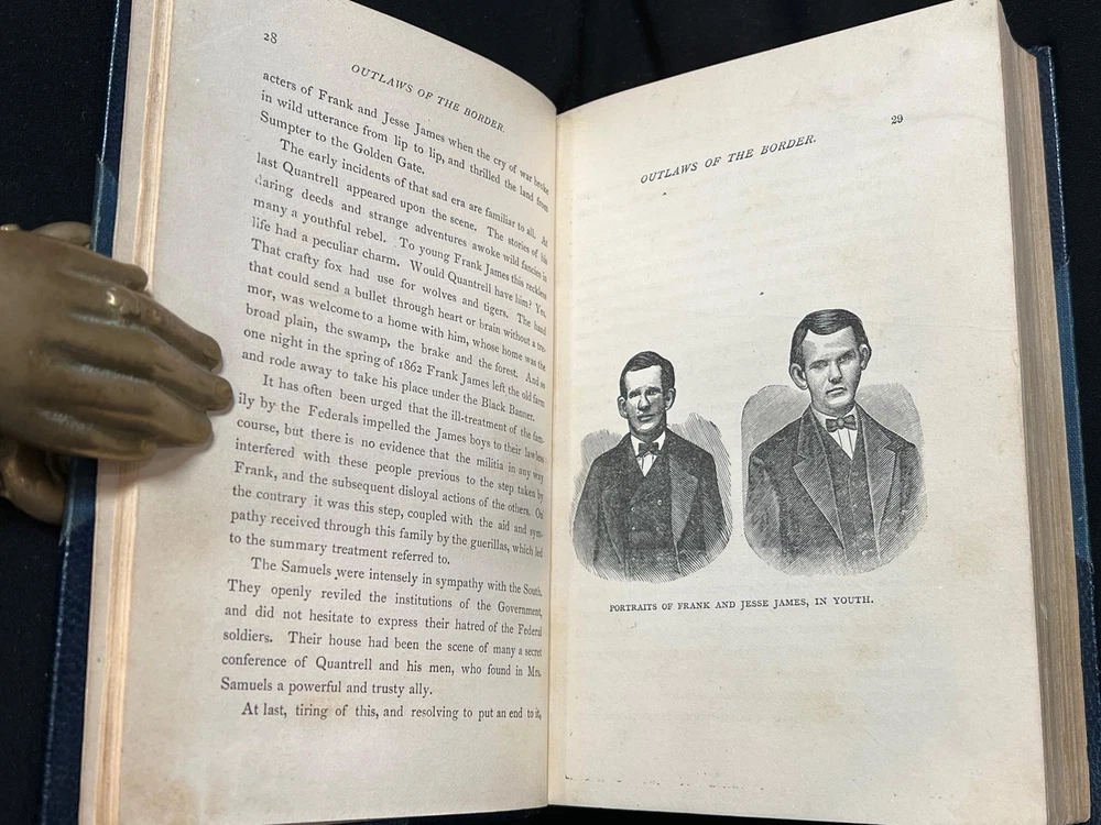 BOOK IS IN NEAR FINE CONDITION BEAUTIFULLY BOUND BY BAYNTUN IN 3/4 CRUSHED MOROCCO WITH BRIGHT GILT RULE TO BOARDS, SIX COMPARTMENTS AND FIVE RAISED BANDS TO SPINE WITH BRIGHT GILT DETAILS AND TITLE. SOME LIGHT SOILING TO BOARDS. BINDING AND HINGES ARE VERY GOOD, MARBLED END PAPERS, PASTE DOWNS AND BRIGHT GILT TOP END PAGES. NO LOOSE OR MISSING PAGES, PAGES ARE BRIGHT AND CLEAN, WITHOUT MARKS AND MINIMAL FOXING. PROFUSELY ILLUSTRATED, 520 PAGES, BOOK MEASURES 7.5"x5.5". FIRST EDITION, 141 YEARS OLD. A STUNNING EXAMPLE IN SCARCE BAYNTUN BINDING. 1882 1stED Outlaws of the Border Frank & Jesse James Bound by Bayntun Fine Rare 1882 1stED Outlaws of the Border Frank & Jesse James Bound by Bayntun Fine Rare Description BOOK IS IN NEAR FINE CONDITION BEAUTIFULLY BOUND BY BAYNTUN IN 3/4 CRUSHED MOROCCO WITH BRIGHT GILT RULE TO BOARDS, SIX COMPARTMENTS AND FIVE RAISED BANDS TO SPINE WITH BRIGHT GILT DETAILS AND TITLE. SOME LIGHT SOILING TO BOARDS. BINDING AND HINGES ARE VERY GOOD, MARBLED END PAPERS, PASTE DOWNS AND BRIGHT GILT TOP END PAGES. NO LOOSE OR MISSING PAGES, PAGES ARE BRIGHT AND CLEAN, WITHOUT MARKS AND MINIMAL FOXING. PROFUSELY ILLUSTRATED, 520 PAGES, BOOK MEASURES 7.5"x5.5". FIRST EDITION, 141 YEARS OLD. A STUNNING EXAMPLE IN SCARCE BAYNTUN BINDING. !!!CLICK HERE!!! Visit My eBay Store TO SEE ALL THE BOOKS WE HAVE FOR SALE!!! IF YOU LIKE WHAT YOU SEE THAN SAVE US TO YOUR FAVORITES BY CLICKING HERE. Add me to your Favorite Sellers RARE ANTIQUARIAN BOOKS CAN BE FRAGILE AND NEED TO BE HANDLED WITH CARE. About us: Reagan's Rare Books is a purveyor of Antiquarian books primarily from the 18th and 19th centuries. We love antique books! We search all over the country for the finest rare books, looking for those with beautiful bindings and in great condition so that we can offer you, the customer, a truly rare one of a kind collectible. Paypal Preferred. Please make payment arrangements within 48 hours of winning your auction. We reserve the right to re-list items not paid within 5 days. Shipping *To Insure That Your Package arrives without any Problems , Please Double Check to Make Sure That The Address You Have Selected in eBay Is Correct. All books are carefully bubble wrapped and packed in a box with adequate packing peanuts to prevent any damage during shipment. All books are shipped with delivery confirmation and tracking. Books over $75.00 are automatically insured. RETURNS 100% Satisfaction Guaranteed. Returns accepted for any reason within 30 days of receipt. PLEASE CHECK MY OTHER LISTINGS. POSTING NEW RARE BOOKS DAILY/WEEKLY. Pictures sell! Auctiva offers Free Image Hosting and Editing. 300+ Listing Templates! Auctiva gets you noticed! The complete eBay Selling Solution. Track Page Views With Auctiva's Counter