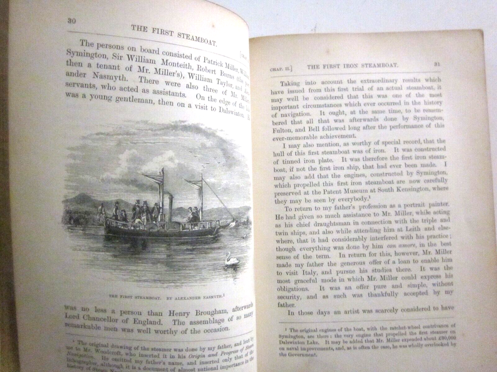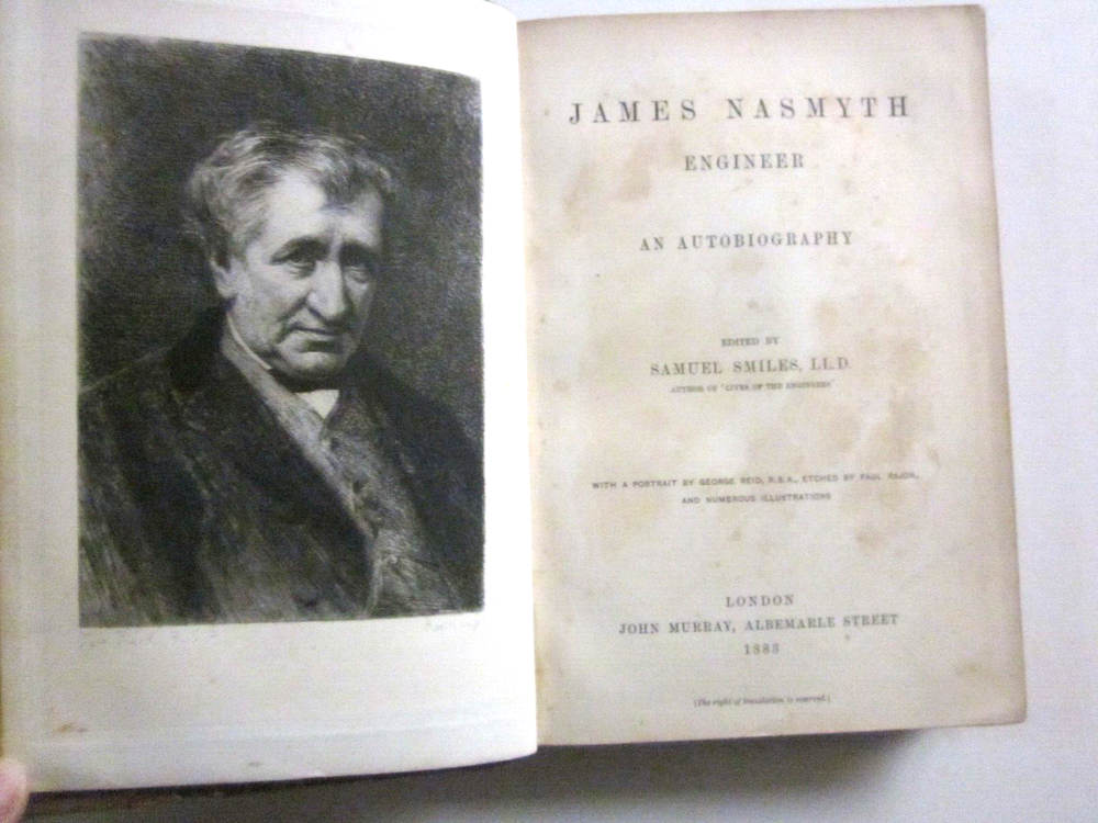 Up for sale is a book, "James Nasmyth Engineer - An Autobiography" edited by Samuel Smiles. Published in 1883 by John Murray, London. Numerous black and white illustrations throughout the book. James Hall Nasmyth was a Scottish engineer, philosopher, artist and inventor famous for his development of the steam hammer. He was the co-founder of Nasmyth, Gaskell and Company manufacturers of machine tools. Leather spine and edges with marbled boards. A lot of edge and corner wear, leather has scratches and marks. Lettering on the spine is worn off. Name and year written in a blank front endpaper, foxing throughout the book, some notes written in pencil on some pages, 456 pages long and the binding is firm. US buyers $6.25 shipping. International buyers, shipping through the eBay Global Shipping Program. International buyers, no refunds or returns. Payment is due at the time of the purchase.