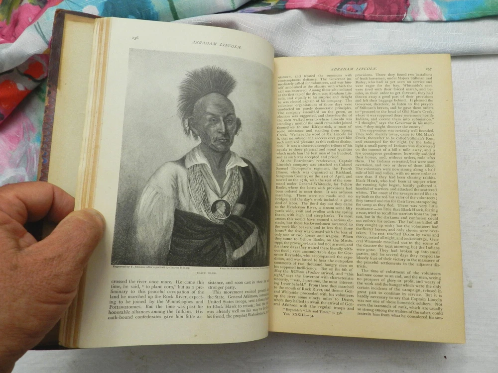 ULTRA RARE, LIKELY ONE OF A KIND, COMPILATION OF ORIGINAL ARTICLES WHICH APPEARED IN THE CENTURY MAGAZINE BETWEEN 1883 AND 1890 AUTHORED BY NICOLAY AND HAY ON THE LIFE OF LINCOLN. John Nicolay and John Hay were President Lincoln's private secretaries. These two individuals were provided the private papers of Abraham Lincoln and from them, and other materials, produced a series of articles on the life of Abraham Lincoln which were published between 1883 and 1889 in The Century Magazine. The volume of The Century Magazine in 1883 in which the first article appeared was Vol 33, and the final article by the pair was in Vol 39, published in 1889. In 1890, The Century Magazine produced a coveted 10-Vol bound set of the original magazines which contained each magazine published between 1883 and 1889 which included all the Nicolay and Hay articles, and of course a treasure trove of other articles which appeared in the magazines. I have been unable to find the particular single volume which is offered in this listing. These are original Nicolay and Hay Century Magazine articles alone in this time frame. I can't claim this is the complete set of the Nicolay and Hay articles - it may just be an important subset collected by an individual for this privately bound collection. There is the single title page which includes the title, Life of Lincoln, the identification of the two authors, and the private binder Geo. E. Williams of Washington DC. It also notes the year of publication, 1892, on the title page. The next page is a facsimile of a handwritten poem, presumably about President Lincoln. Then the articles begin. A listing photo shows the Lincoln portrait and the Preface to this entire serialized series, titled, Abraham Lincoln : A History. The very last Nicolay and Hay article is from Vol 39, p. 561, titled, "The Capture of Jefferson Davis - The End of Rebellion - Lincoln's Fame". The book ends with 3 articles which appeared after this last article, and are not authored by Nicolay and Hay. They are: Vol 39, p. 586, titled, Pursuit and Capture of Jefferson Davis by I. The Commander of the Union Cavalry (article ended with the name of this commander presumably, James Harrison Wilson), II - By An Eye-Witness (ending with the name, Wm. P. Stedman) Vol 40, p. 305-311, Memoranda on the Life of Lincoln Vol 40, p. 371-382, Greeley's Estimate of Lincoln, An Unpublished Address by Horace Greeley. Obviously, I have not done any compilation of all the articles in this collection - there may be others also not authored by Nicolay and Hay such as these last three. Listing photos show examples of title pages of Nicolay and Hay articles, some interesting pages that includes parts of the articles but also back sides of the leaf with curious pieces. Found in the flip-through is a newspaper articles pertaining to one of the articles by Nicolas Hay. It is included with the book. The book was found with front and rear boards fully detached but the spine and text block were very solid and clean. The boards were reattached and the leather refurbished and sealed. What results is an attractive and sturdy complete 3/4 Leather book with a compelling interior! The boards now show light to moderate corner and edge wear. The front and rear have 2 blank endpaper leaves. Here is a longer history of the work of Nicolay and Hay in Century Magazine, found online: "Abraham Lincoln: A History, by President Lincoln’s private secretaries, John Nicolay and John Hay, stands even today as the most massive single work ever written on the sixteenth president. The publication of the ten-volume set by the Century Company in 1890 gave the public the first comprehensive life based upon Lincoln’s own papers – papers that Robert Todd Lincoln made exclusively available to Nicolay and Hay. No other biographers had access to these papers until James G. Randall in 1947. The list of great Lincoln writers who did not have access to Robert’s collection includes Albert Beveridge and Carl Sandburg. The publication of the ten volumes in well-known green cloth binding did not, however, represent the first opportunity for the public to sample the work. Century Magazine, the publication that created the famous compilation, Battles and Leaders of the Civil War, published the chapters of Abraham Lincoln: A History serially during the 1880’s. By the time students of Abraham Lincoln’s life read Nicolay and Hay in 1890, they could already have read much of the story in the Century...." B113