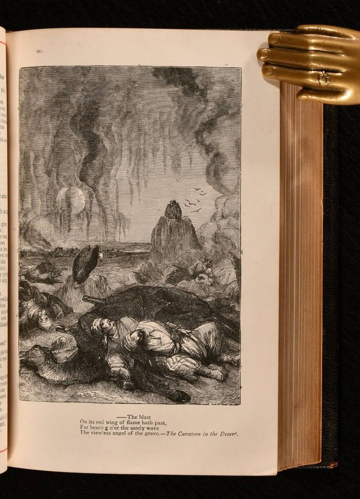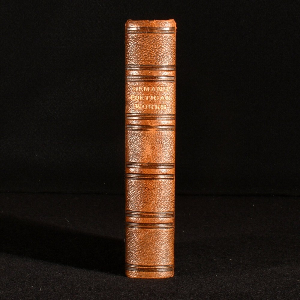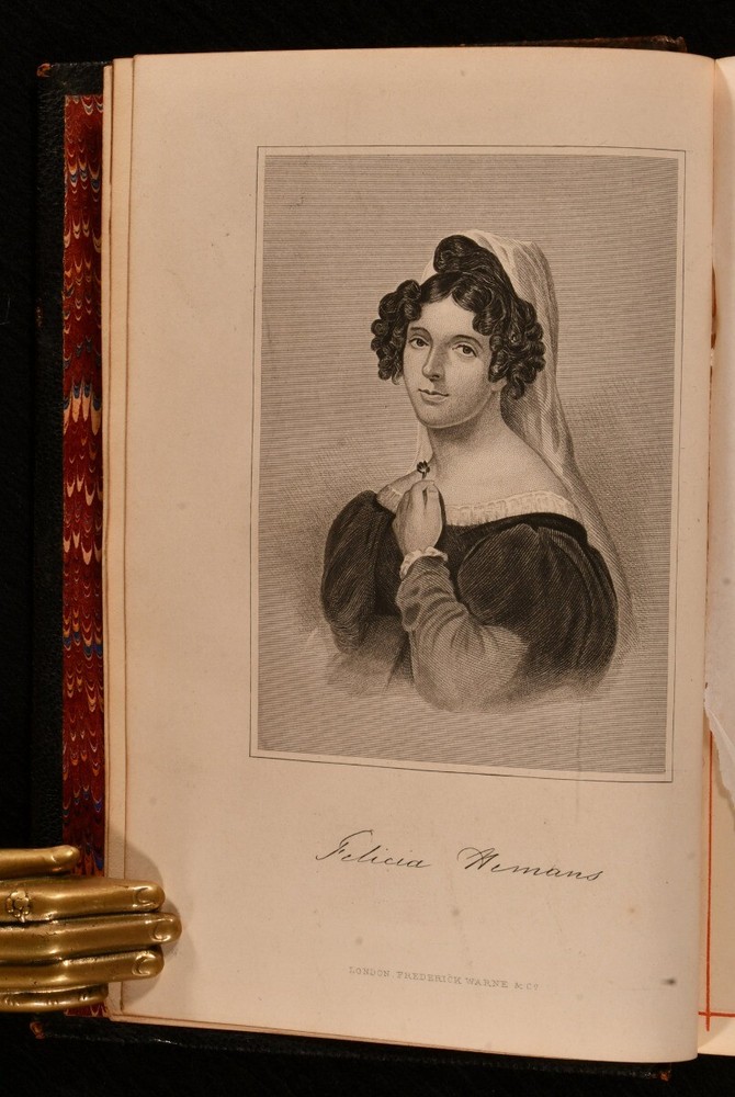 Click here to see our other books! The Poetical Works of Mrs Hemans. Reprinted from the Early Editions, with Memoir, Explanatory Notes &c. Mrs. Hemans 1884 Frederick Warne and Co. : London 7" by 5" xxiv, 708pp. SUMMARY A handsome collection of Mrs. Hemans' poems in full morocco binding. Illustrated,Leather Binding Overall Condition: Very Good Indeed This book weighs 0.75 KG when packed UK Postage: £ 3.99 US Postage: £ 19.99 EU Postage : £ 15.99 European Postage: £ 16.99 Asia Postage: £ 21.99 Worldwide Postage: £ 25.99 DESCRIPTION Reprinted from the early editions. In full morocco binding with gilt lettering. With a portrait frontispiece and seven engraved plates. Collated complete. A collection of poems by Felicia Dorothea Hemans, alongside explanatory notes and a memoir. Hemans was a renowned English poet whose work was widely popular, especially amongst female readers. She is best known for her poem, 'Casabianca', which has acquired classic status. CONDITION In full morocco binding. Externally, very smart with some light rubbing to the extremities and fading to the spine. A few odd spots to the free endpapers. Internally, firmly bound. Pages very bright and clean. Overall Condition: Very Good Indeed GLOSSARY OF TERMS Overall Condition (Dustwrapper condition rating is shown after that for the book itself, where a dustwrapper is present) Fine - Very well preserved copy showing very little wear Very Good Indeed - Only one or two minor faults, really a very attractive copy Very Good - Quite a wide term meaning no major faults but probably several smaller ones often expected given the age of the book, but still a respectable copy Good - Meaning not very good. Some more serious faults as will be described in the condition report under 'condition' Good Only - Meaning one or more faults that could really do with repair Fair - As with good only above but with other faults leaving a compromised copy even after repair Poor - Really bad and possibly seriously incomplete. We only sell books in this condition where their rarity or value makes them attractive none the less. Major defects will be described. GUARANTEE We offer a full money back guarantee on our descriptions. Please ask for details and conditions. We prefer PAYPAL. If you pay via PAYPAL we will post the item off the same or the next working day with the postage you have selected. Please note we cannot accept USD cheques