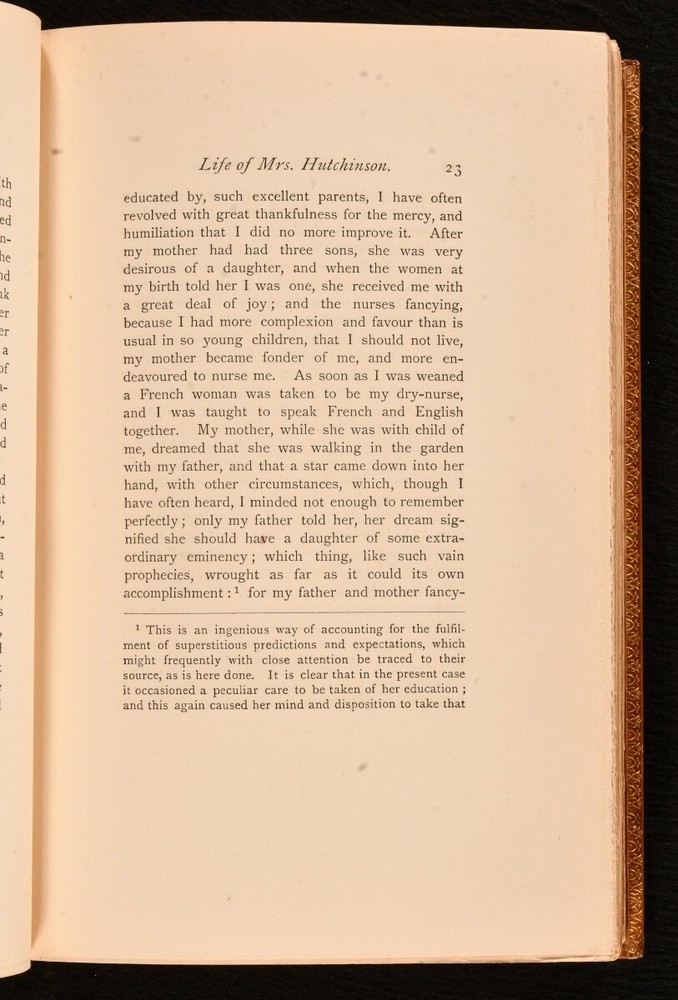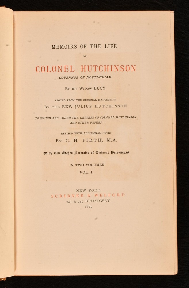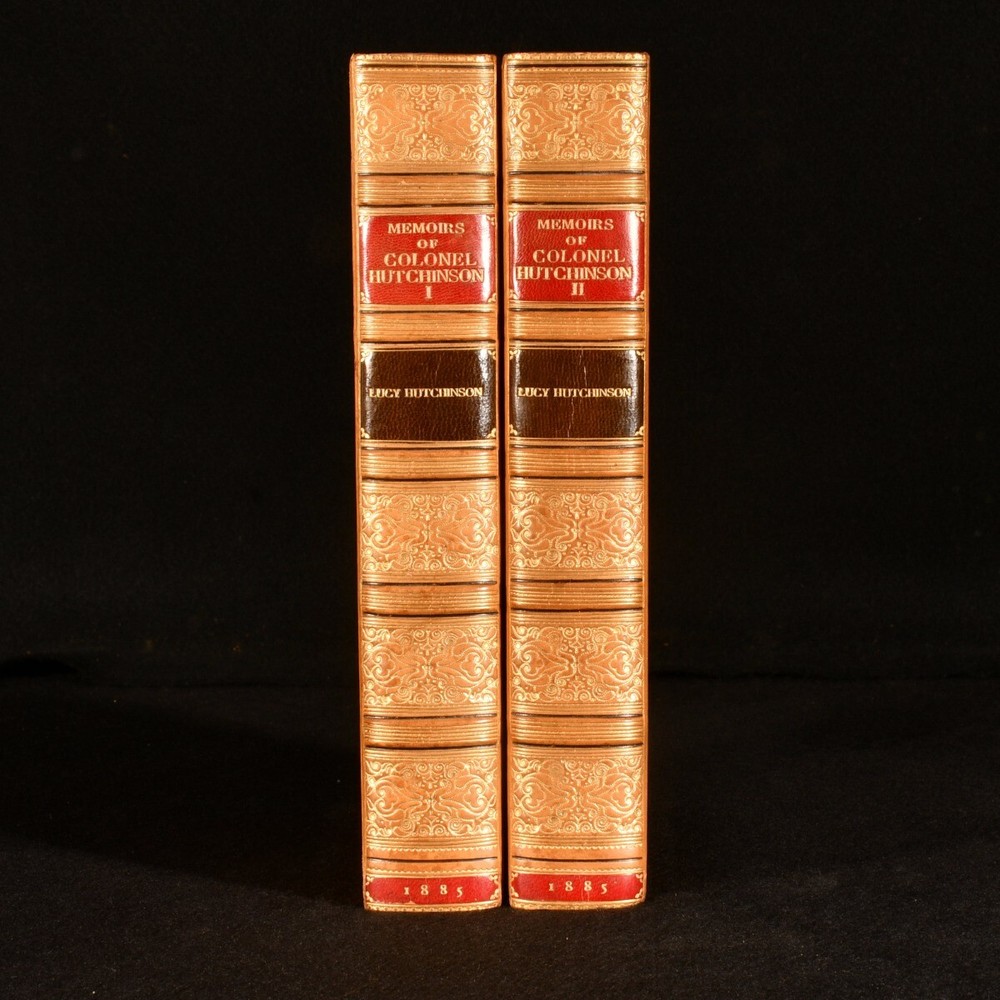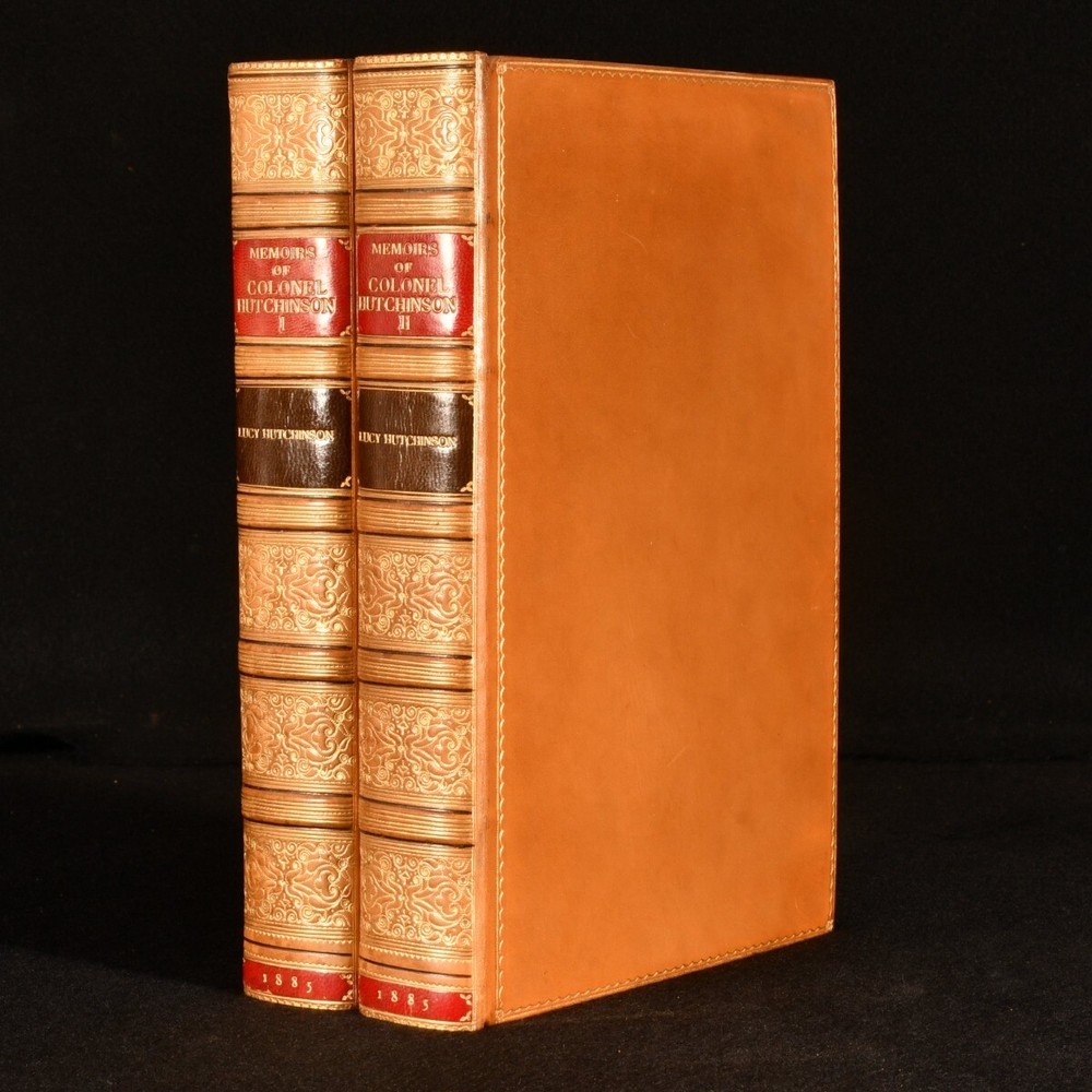 Click here to see our other books! Memoirs of the Life of Colonel Hutchinson Lucy Hutchinson; CH Firth [ed] 1885 Scribner & Weford : New York 9" by 5.5" xxviii, 392; [6], 421pp; SUMMARY The scarce first edition of Lucy Hutchinson's memoirs of her late husband in two volumes sumptuously bound by Zaehnsdorf in uniform calf. Fine Binding,First Edition,Illustrated,Leather Binding,Pleasing Copy,Rebound,Scarce,Signed Binding Overall Condition: Fine This book weighs 2 KG when packed UK Postage: £ 3.99 US Postage: £ 29.99 EU Postage : £ 21.99 European Postage: £ 23.99 Asia Postage: £ 37.99 Worldwide Postage: £ 38.99 DESCRIPTION The first edition of this work. Published in a printing of three hundred copies for England, and two hundred copies with American Imprint for sale in that country. The present one of the two hundred with American Imprint. Complete in two volumes. A scarce edition. Containing the memoirs of John Hutchinson (1615-1664), English politician who sat in the House of Commons of England. He fought in the parliamentary army in the English Civil War and he was one of the 59 Commissioners in the high court of justice to sign the death warrant of King Charles I. Written by his widow Lucy. Edited from the original manuscript by the Rev Julius Hutchinson. Revised, with additional notes, by C H Firth. Illustrated with ten etched portraits of eminent personages. CONDITION Rebound in handsome full calf by Zaehnsdorf, with gilt panelled spines, titles in gilt to morocco spine labels, marbled endpapers, gilt to top edge. Externally lovely. Internally, firmly bound. Pages bright and clean. Overall Condition: Fine GLOSSARY OF TERMS Overall Condition (Dustwrapper condition rating is shown after that for the book itself, where a dustwrapper is present) Fine - Very well preserved copy showing very little wear Very Good Indeed - Only one or two minor faults, really a very attractive copy Very Good - Quite a wide term meaning no major faults but probably several smaller ones often expected given the age of the book, but still a respectable copy Good - Meaning not very good. Some more serious faults as will be described in the condition report under 'condition' Good Only - Meaning one or more faults that could really do with repair Fair - As with good only above but with other faults leaving a compromised copy even after repair Poor - Really bad and possibly seriously incomplete. We only sell books in this condition where their rarity or value makes them attractive none the less. Major defects will be described. GUARANTEE We offer a full money back guarantee on our descriptions. Please ask for details and conditions. We prefer PAYPAL. If you pay via PAYPAL we will post the item off the same or the next working day with the postage you have selected. Please note we cannot accept USD cheques