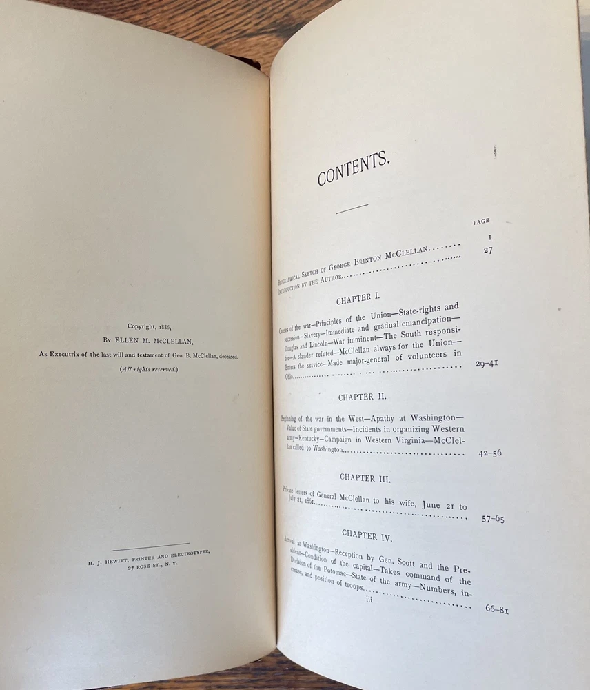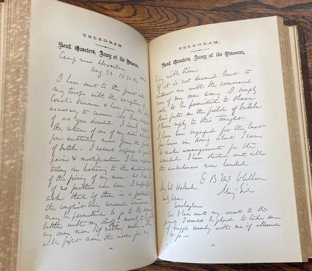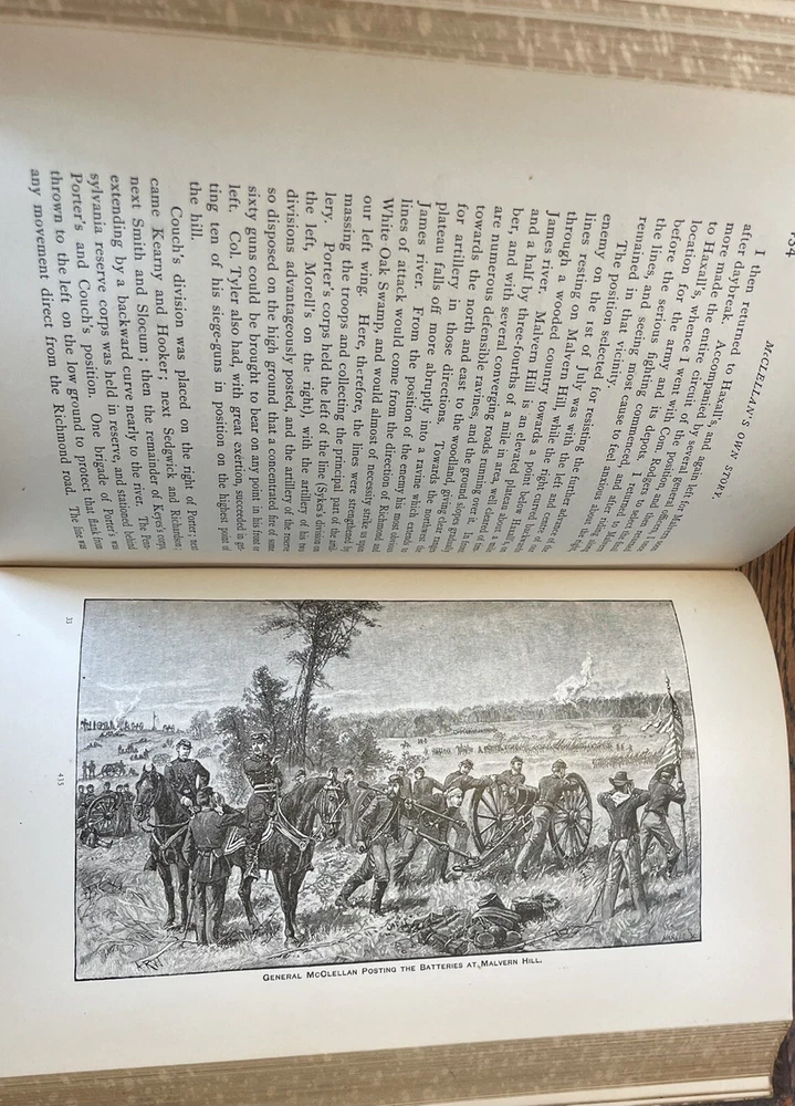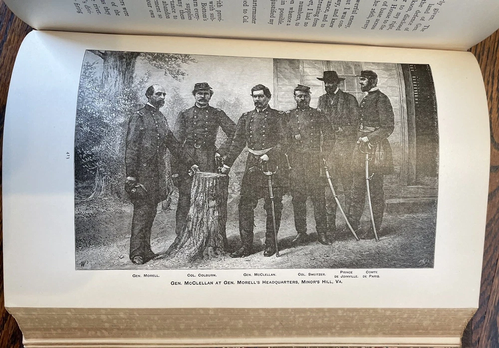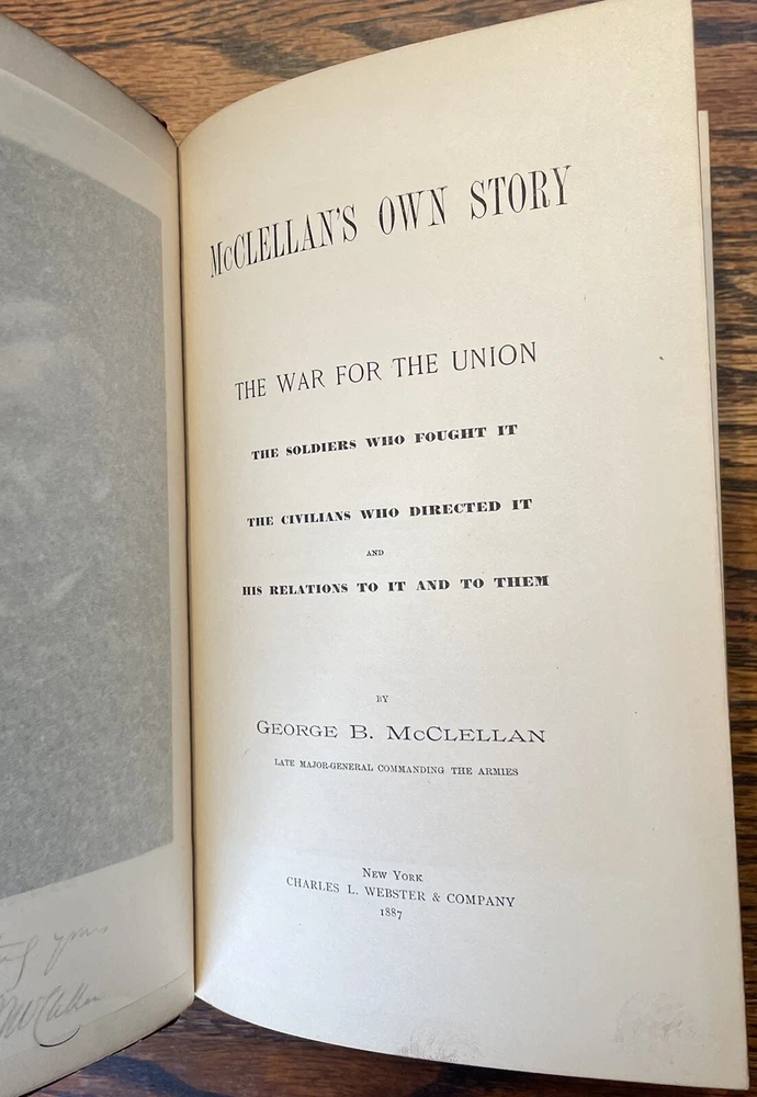 1887 McClellan's Own Story - Memoir Union General George McClellan - Civil War. 678 pages with tight binding and various illustrations. Nice leather first edition. No marks or writing on the inside. Binding is very tight as pages would barely stay open for pictures. Cover shows light wear with a crack on the right side of spine. The spine leather has separated from the front cover (hopefully can be repaired). Bumping on edges. Pages are bright with NO foxing. Please see all pictures for condition. Discusses General McClellan's experiences during the Civil War with great content on the campaigns of the Union Army in Virginia. Historians and Civil War enthusiasts will enjoy this candid autobiography that tells McClellanโs Civil War story from his point of view and includes numerous private letters and communications about battles, fellow generals, and President Abraham Lincoln. Remastered with the original period font and a new cover design fit for display in the finest reading rooms. Born in Philadelphia and destined to become the governor of New Jersey, George B. McClellan is known as one of the most significant Union generals early in the American Civil War. He played an important role in raising the Army of the Potomac and served as general in chief of the Union army for a brief period. He was removed from command in 1862 and went on to a successful career in politics and writing. Approx 9 1/4" h x 6 1/2"w (Published by Charles L. Webster was a brand new company begun by Mark Twain) Feel free to ask any questions or request more pictures. Thanks for looking and see my other listings for more military books on the Civil War WWI and WW2 ๐ ๐บ๐ธ๐บ๐ธ๐บ๐ธ