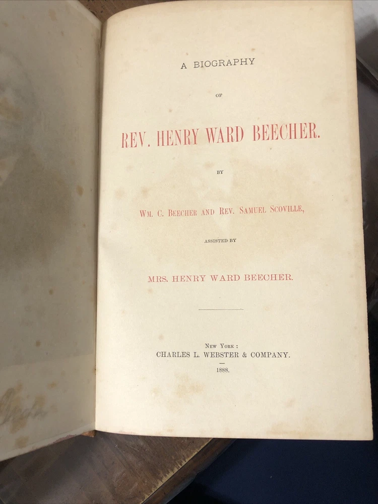 1888 “A Biography of Henry Ward Beecher” Illustrated, Leather Bond In good condition. See pictures for condition of spine, binding, and pages. Note: not all illustrations are shown in pictures.