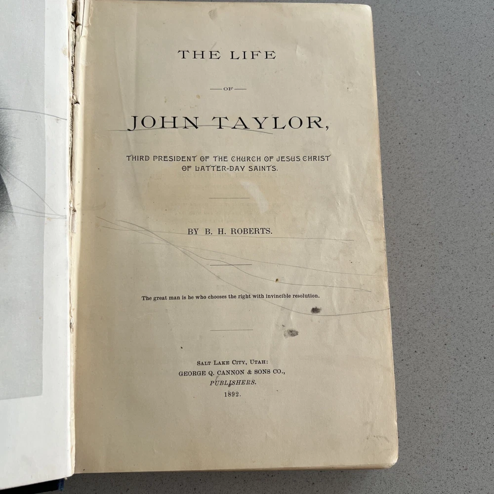 Delve into the storied past with the 1892 first edition of "Life of John Taylor," authored by the renowned Brigham Henry Roberts. This captivating biography offers an in-depth look at the life of the third president of The Church of Jesus Christ of Latter-day Saints, providing insightful historical context and a rich narrative that explores the pivotal events and teachings of Taylor's tenure. Published by George Q. Cannon & Sons in Salt Lake City, Utah, this original piece is a treasure for both bibliophiles and students of Mormon history. Bound in supple leather and printed in English, it stands as a testament to the historical significance of North American religious thought and the enduring legacy of the LDS Church.