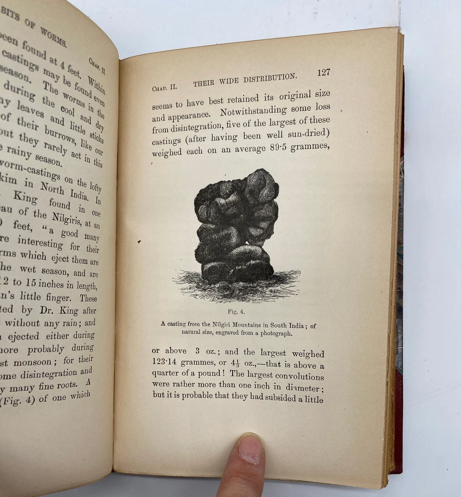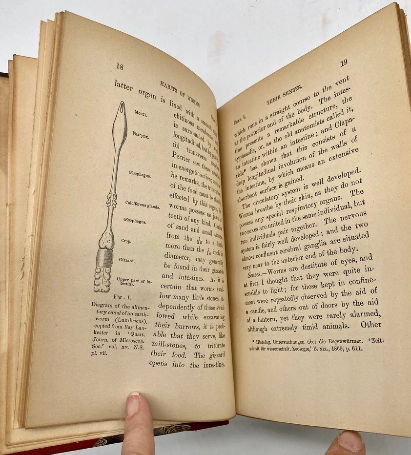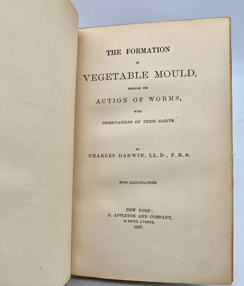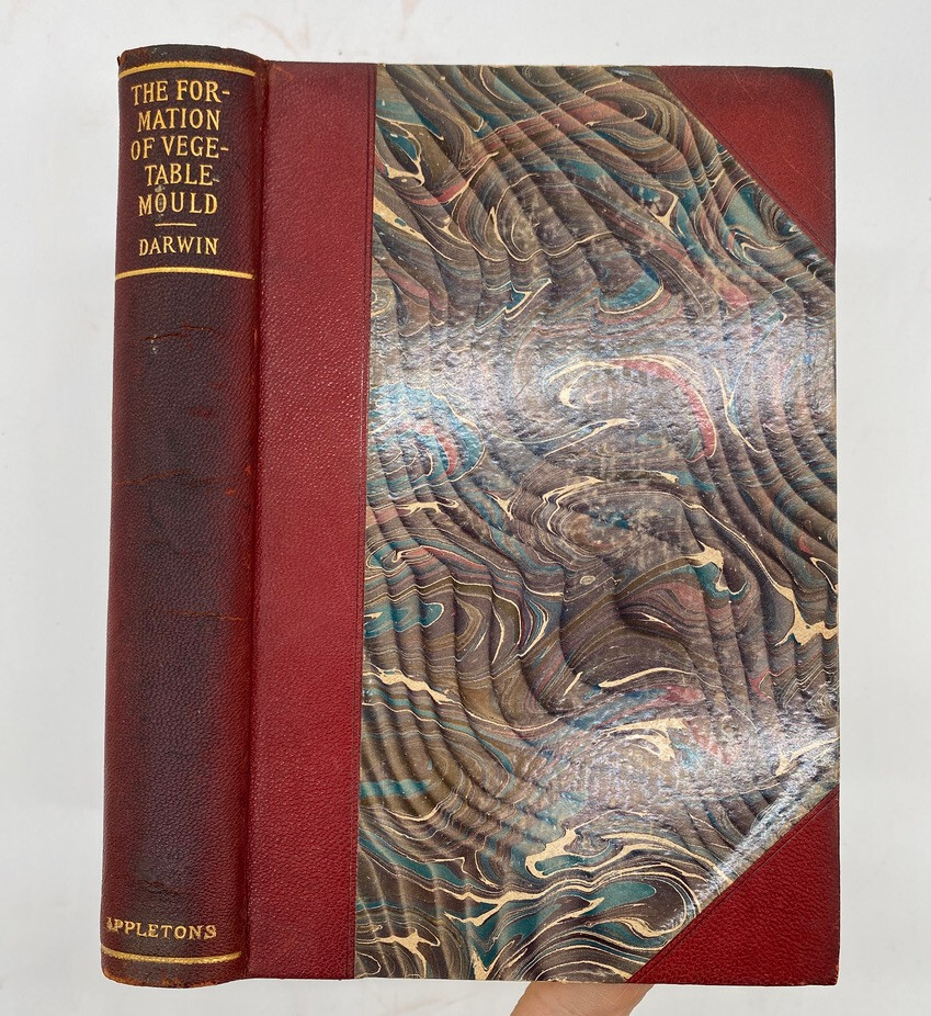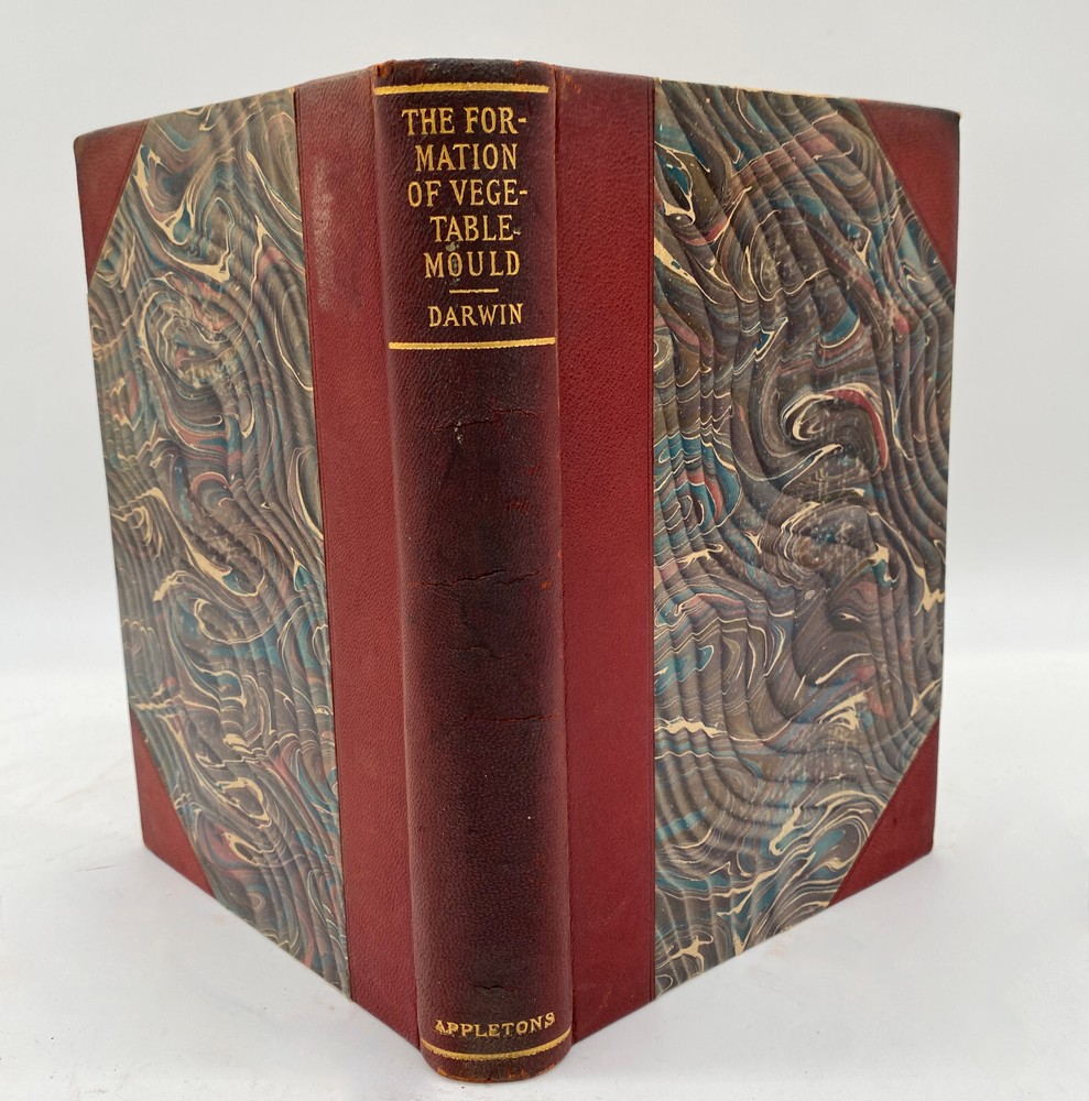 The Formation of Vegetable Mould through the Action of Worms by Charles Darwin. Three quarter leather with marbled boards and top edge gilt. Very good condition. The leather spine is dry with a few surface cracks. Binding and hinges are strong. I am listing many other Darwin titles that are bound uniformly with this one, so please take a look at my other listings. Thank you! (B3D)