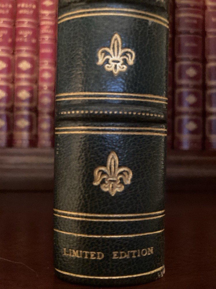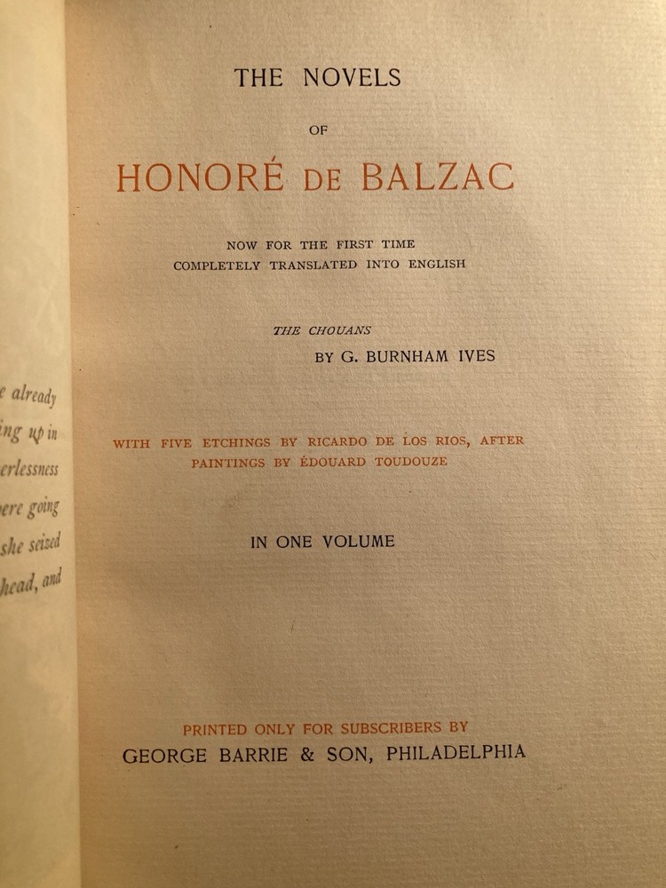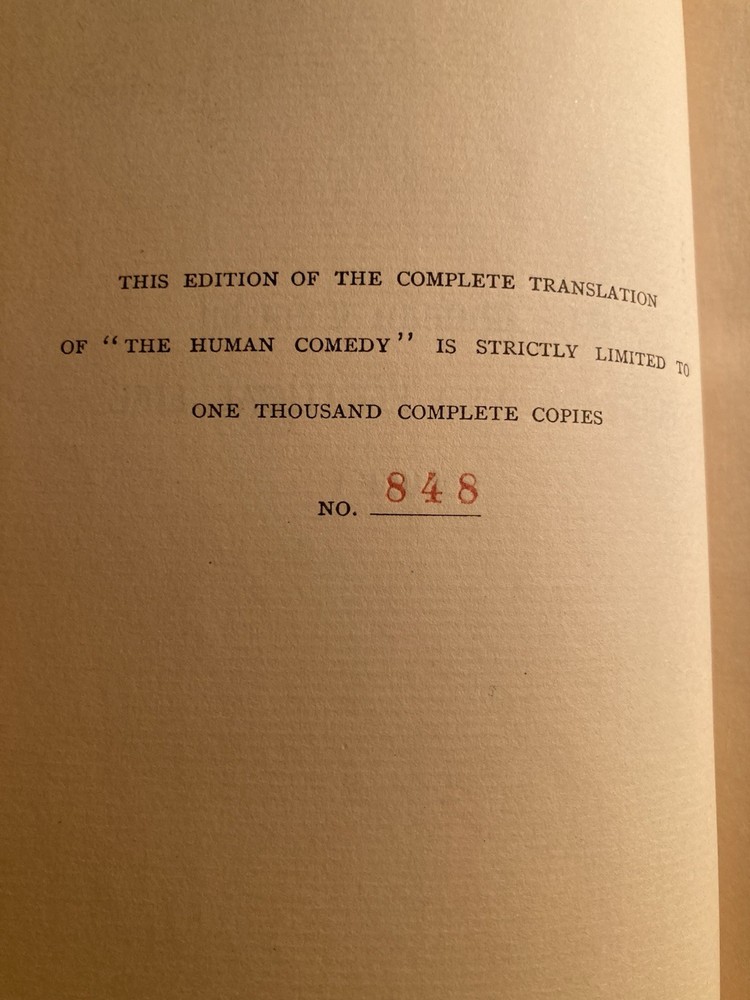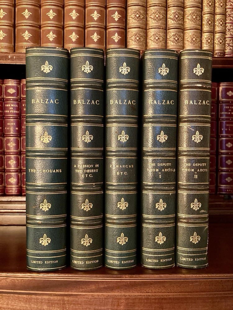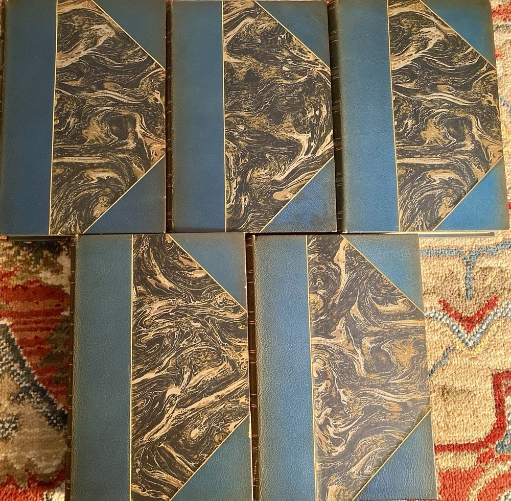 1898 publication of Honoré de Balzac’s “The Human Comedy- Military and Political Life”, 5 volumes. LIMITED EDITION, no. 848 of only 1,000 copies! “Now for the first time completely translated into English” Beautiful fine-binding, green-blue 3/4 leather binding with gilt lettering and gilt top edge. Binding of all books is tight and intact with no missing pages. Slight shelf wear. In overall Very Good (VG) condition. An excellent addition to any fine-binding library! Feel free to message if you have additional questions Books will be packaged with care and shipped promptly . Thank you!!